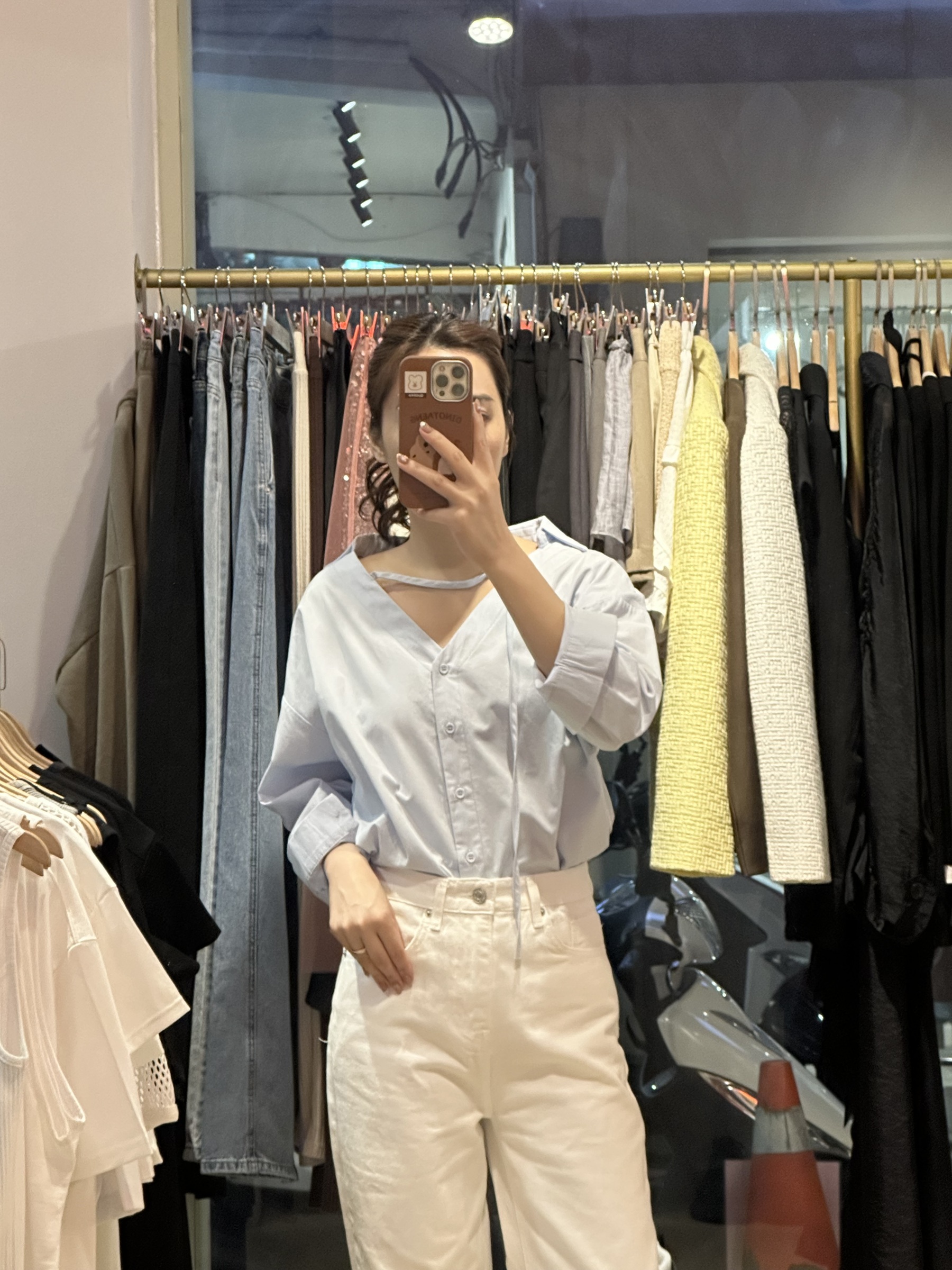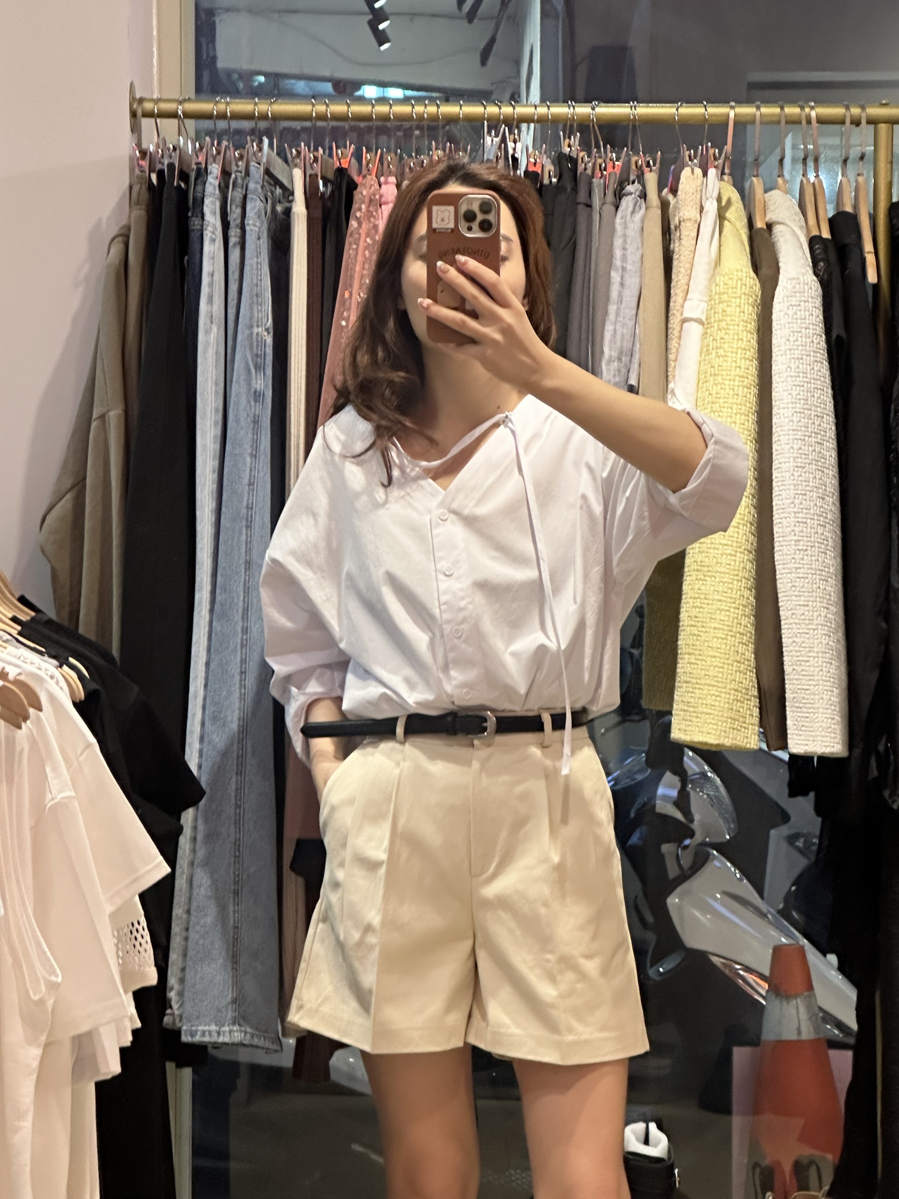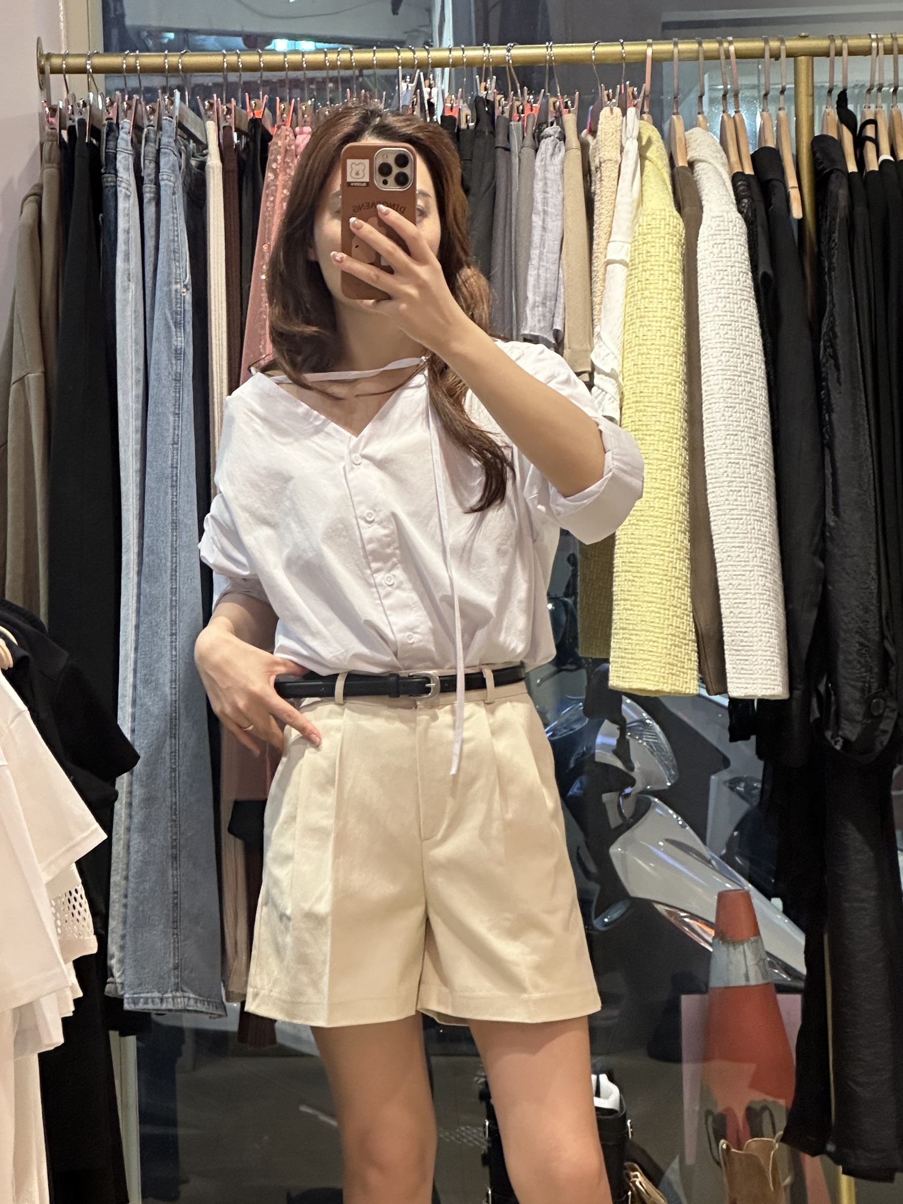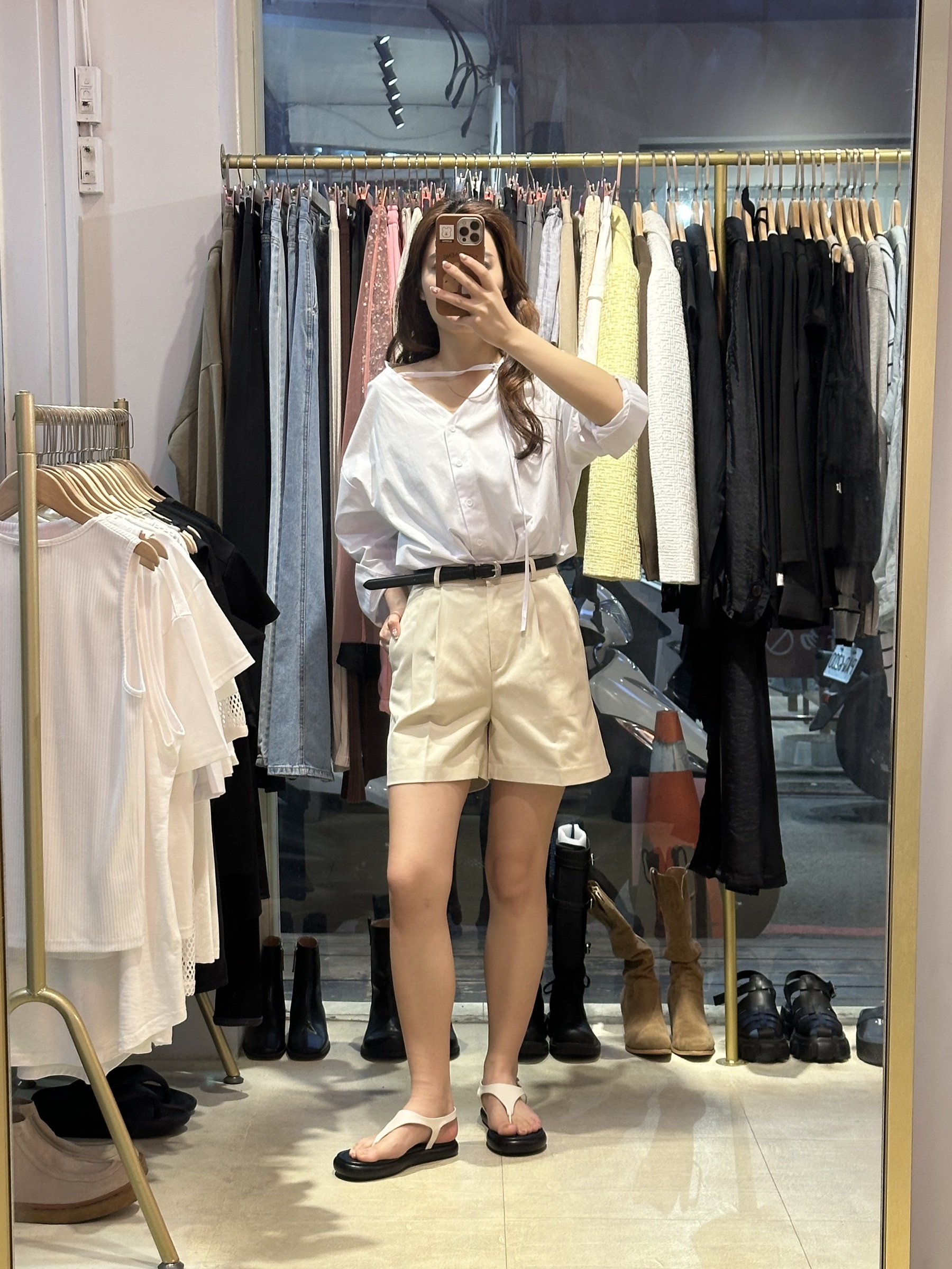 胸前的V不會太深,將襯衫往後一點穿,背面會呈現個漂亮的弧度