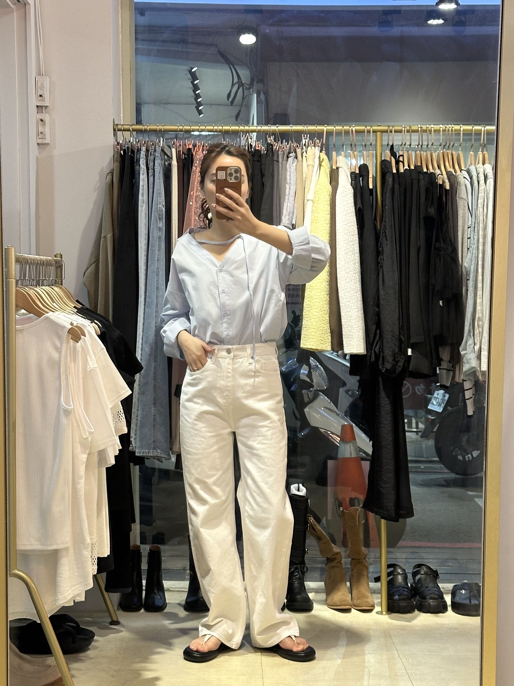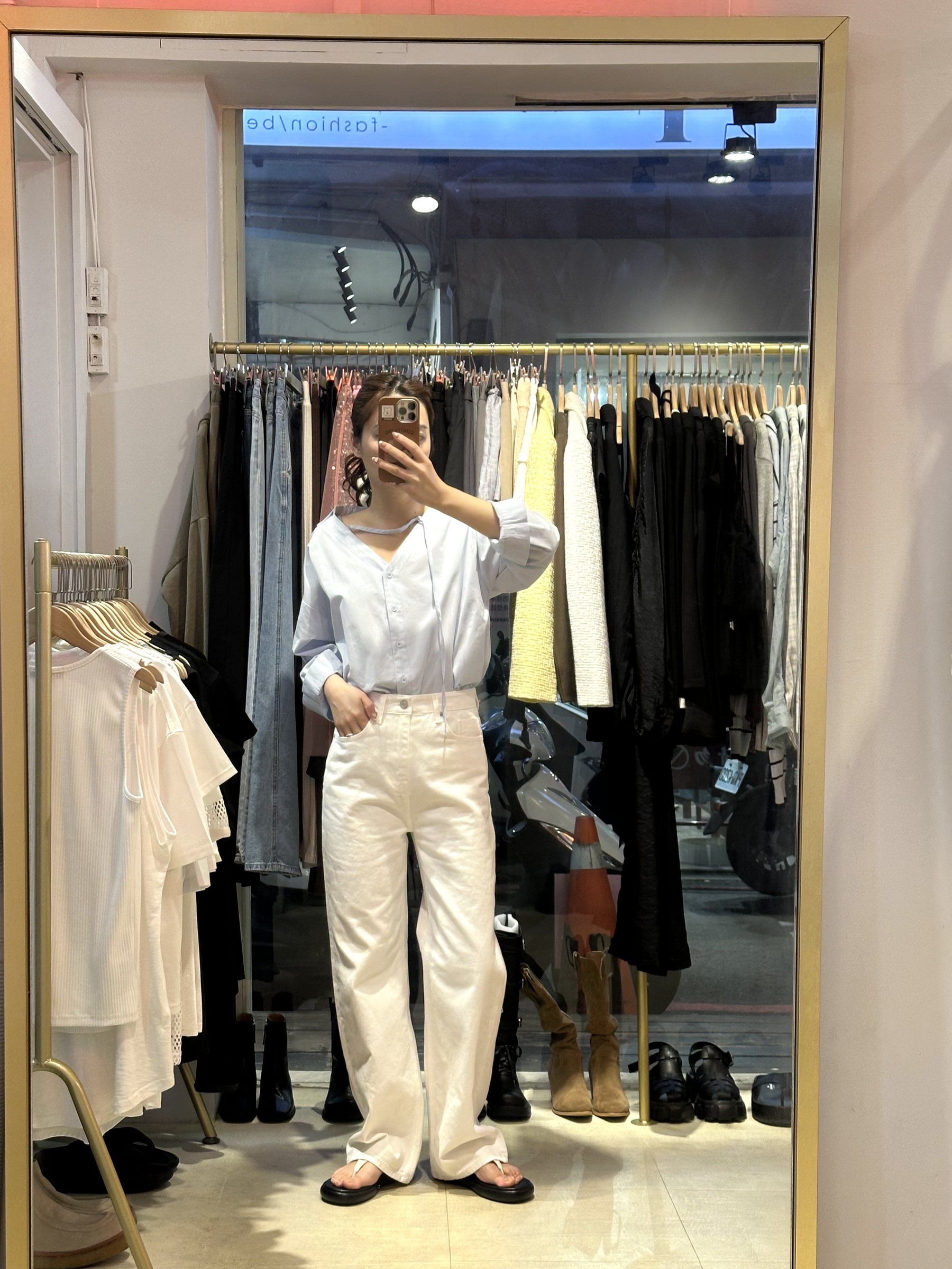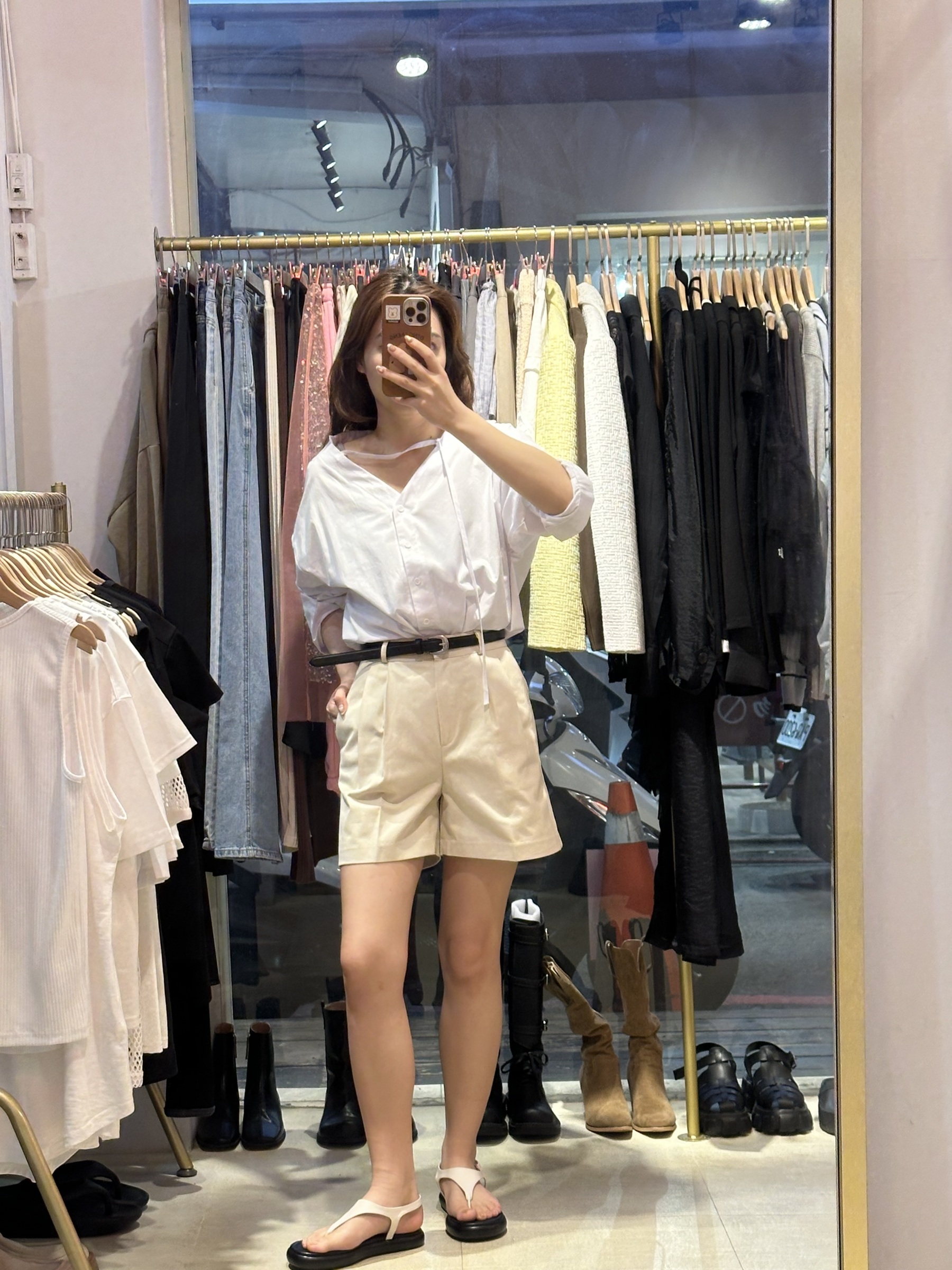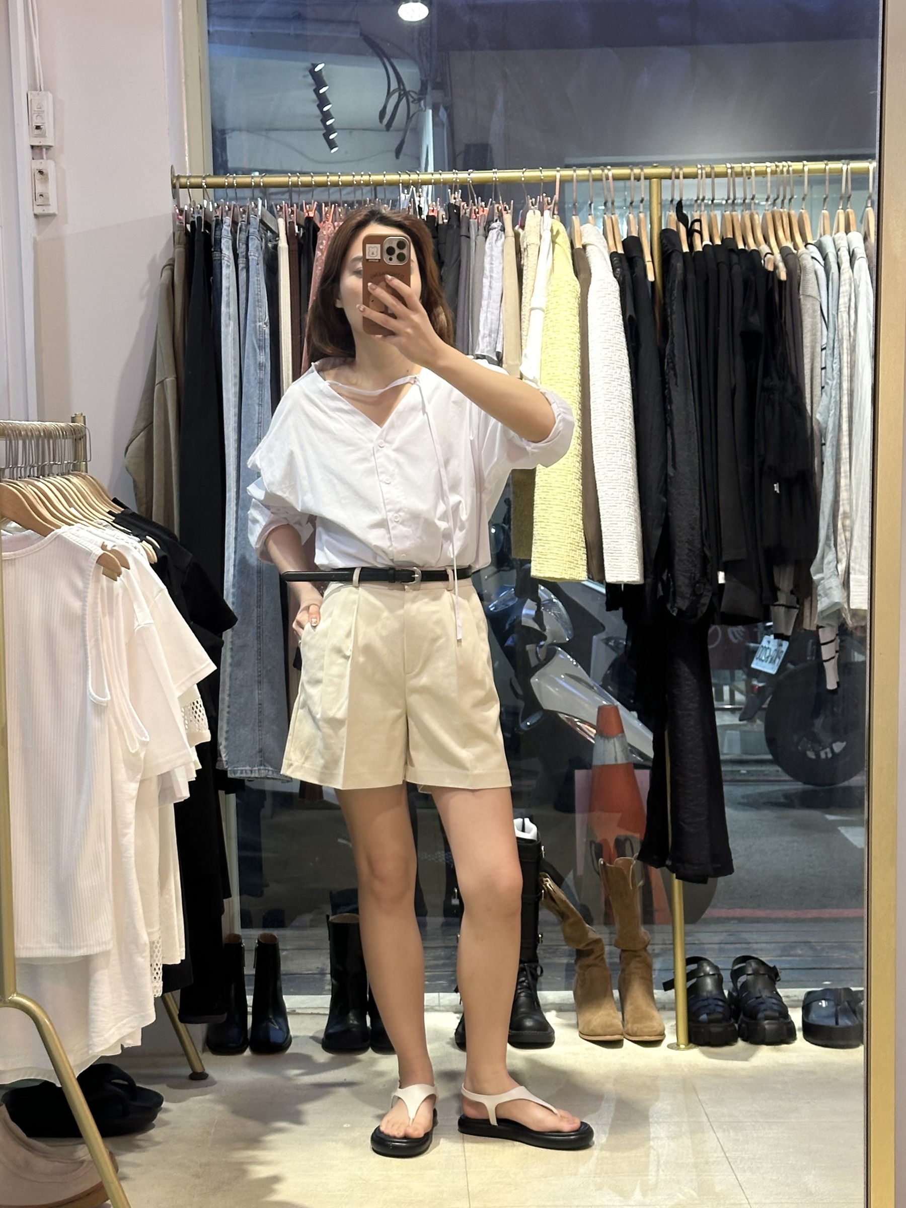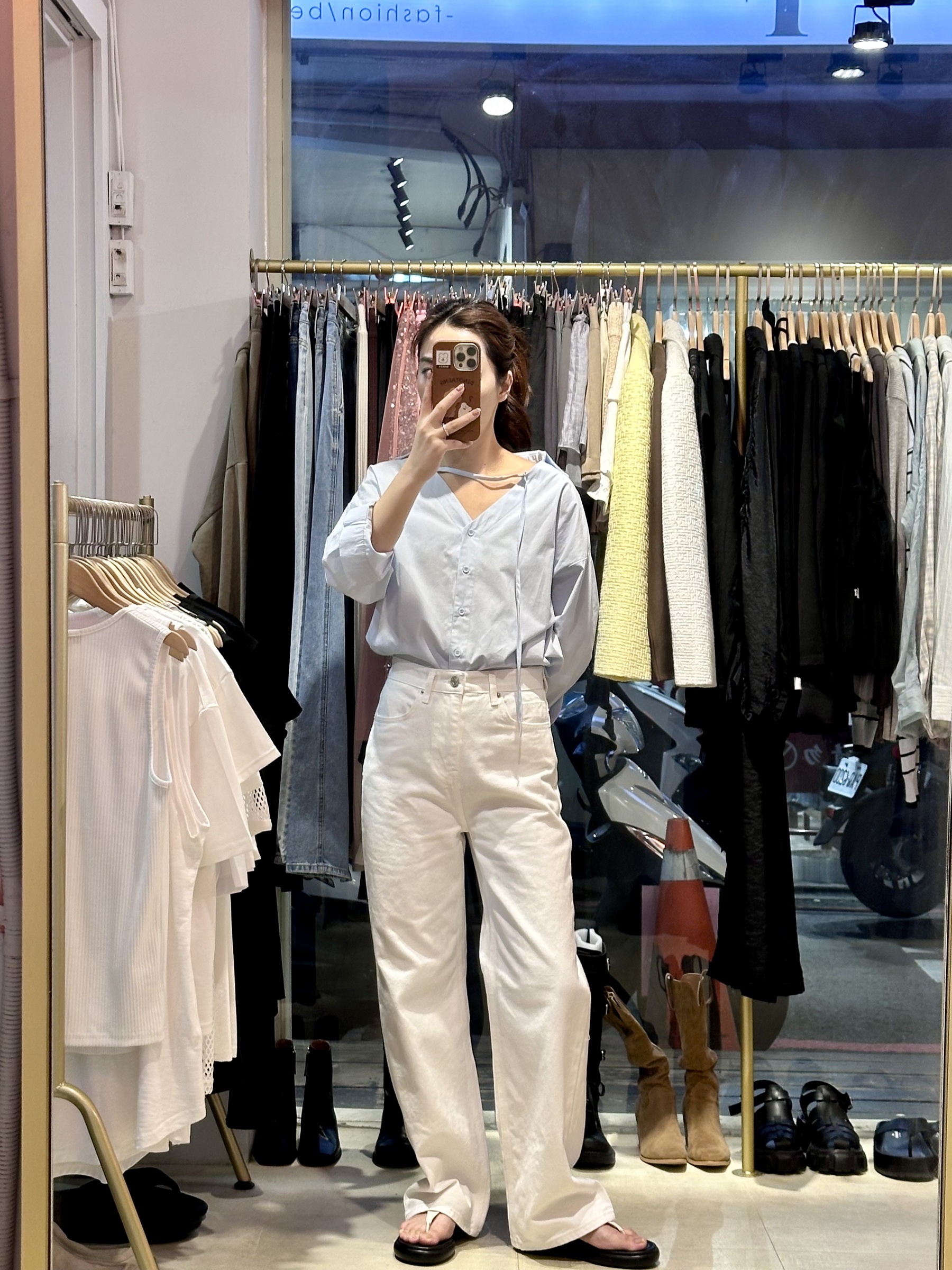 胸前的V不會太深,將襯衫往後一點穿,背面會呈現個漂亮的弧度