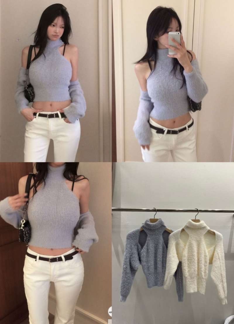 高領馬海毛小罩衫兩件套 – 田兄BroTin