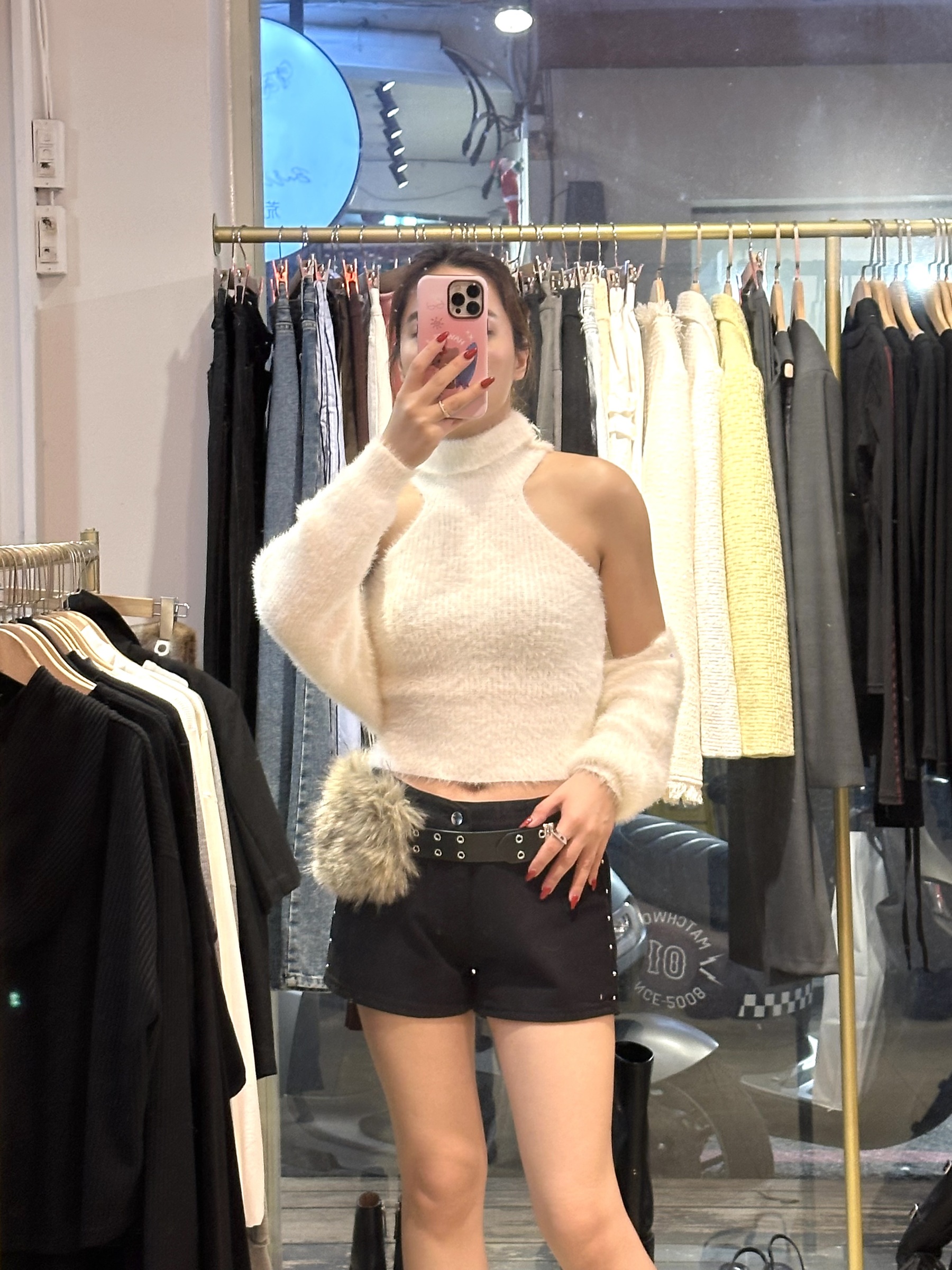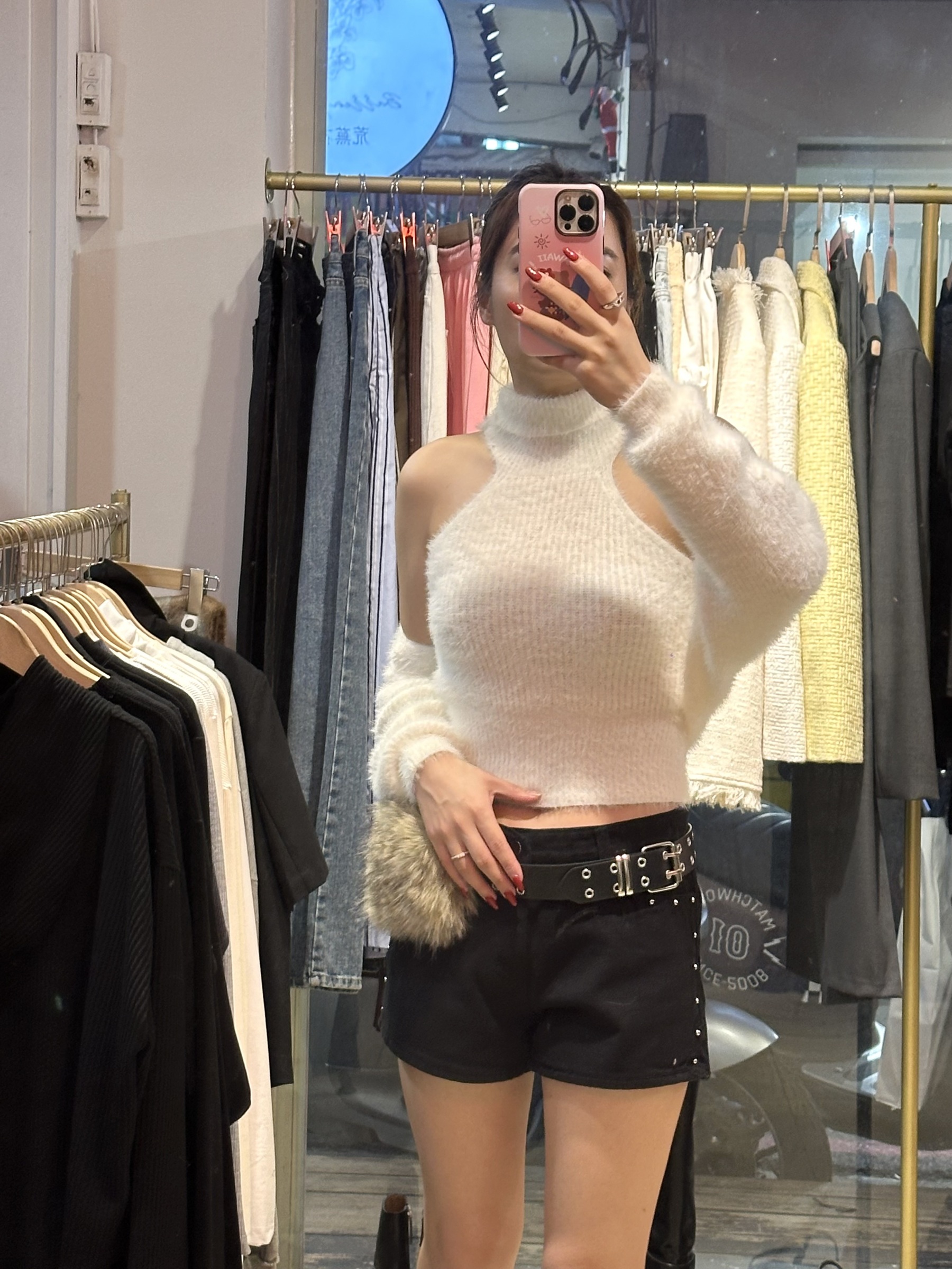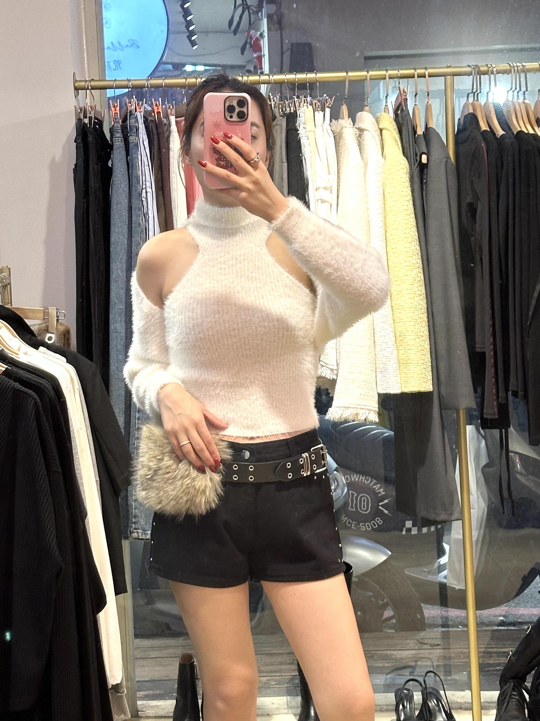 高領馬海毛小罩衫兩件套