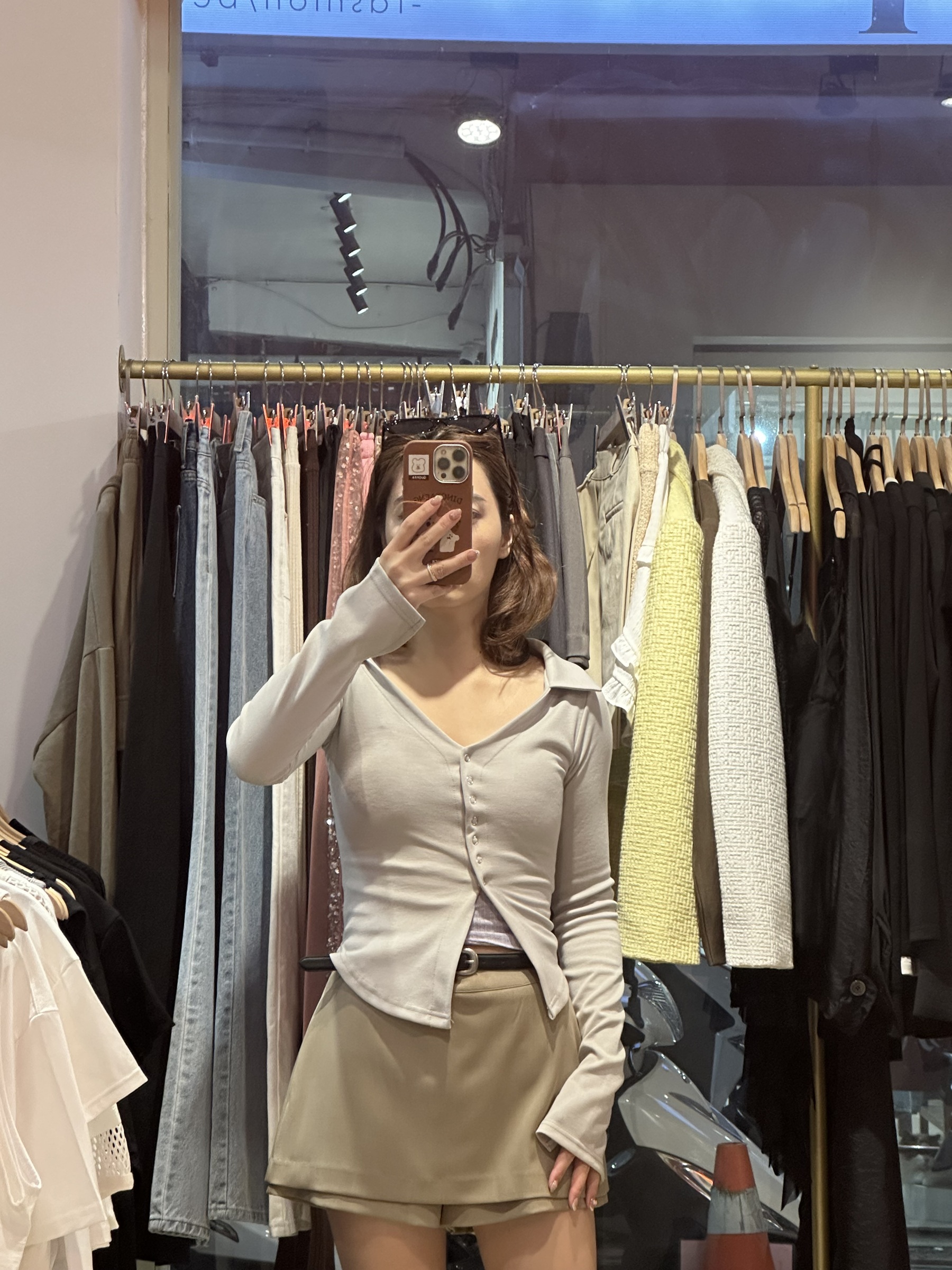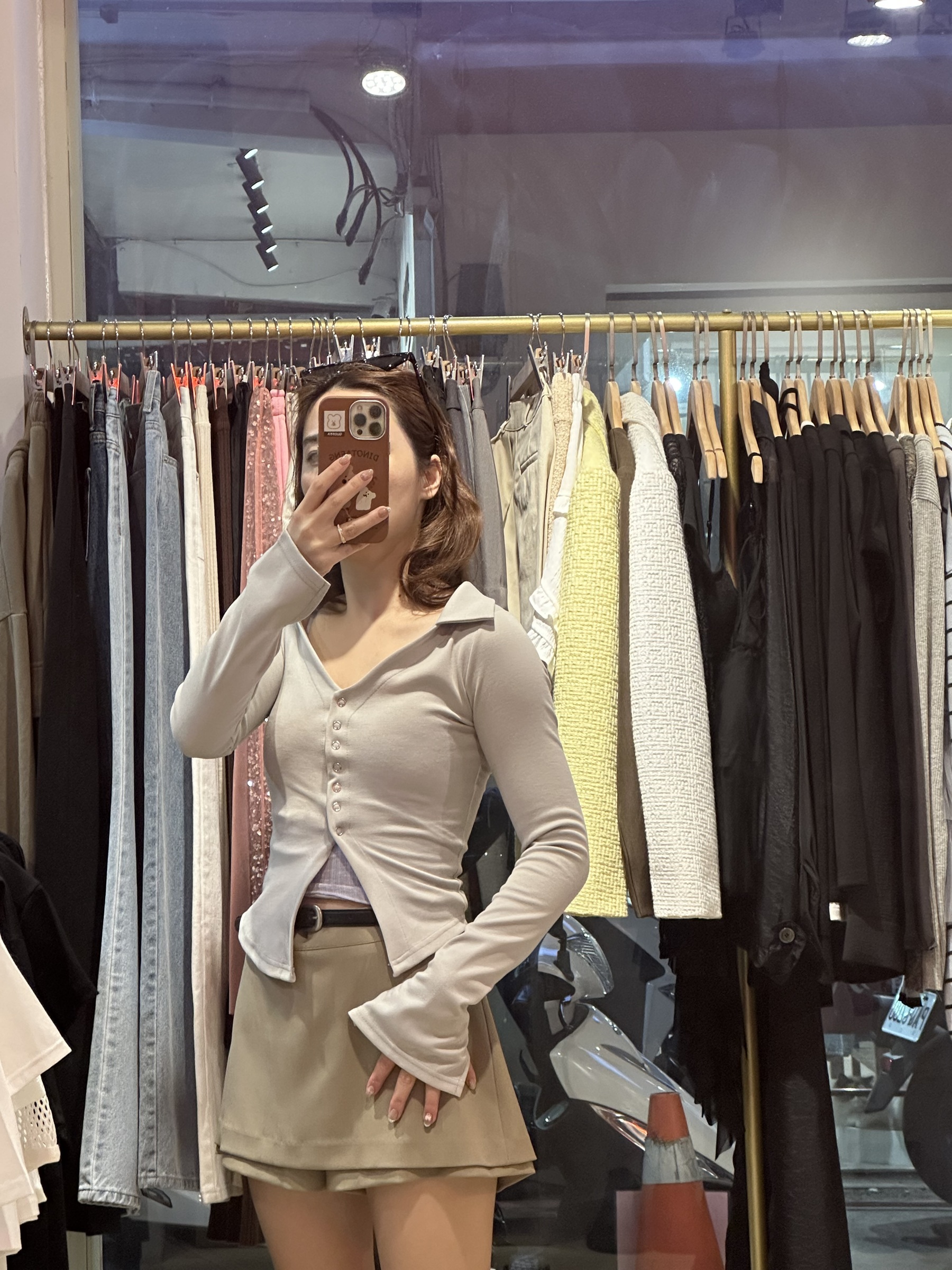 腰線的設計也很漂亮,手袖還有開岔,呈現喇叭袖感
