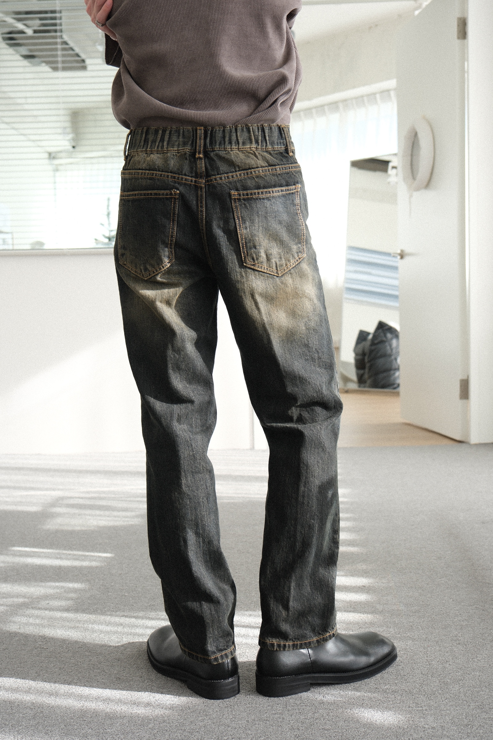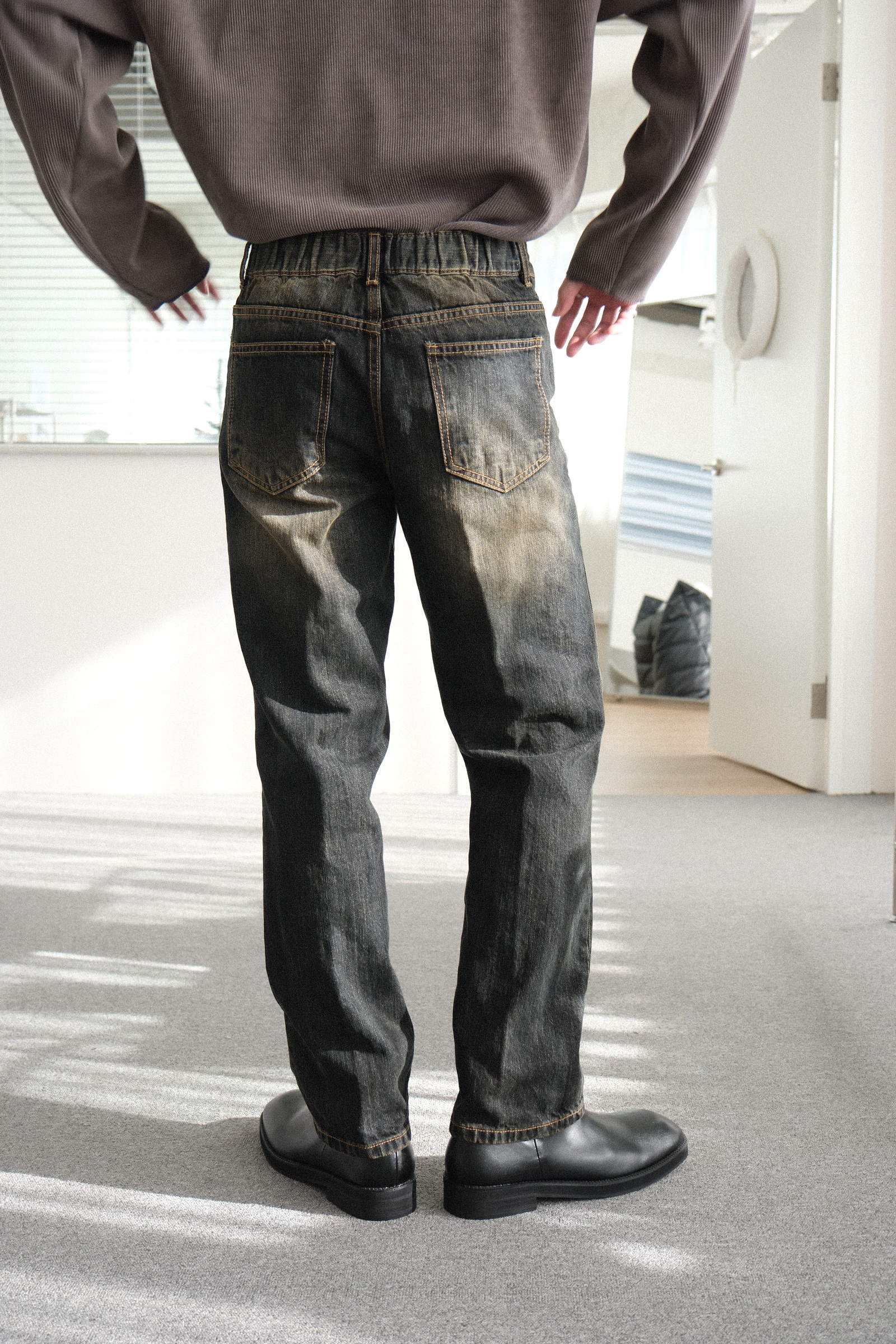 正常牛仔褲材質布料,背後有鬆緊帶設計