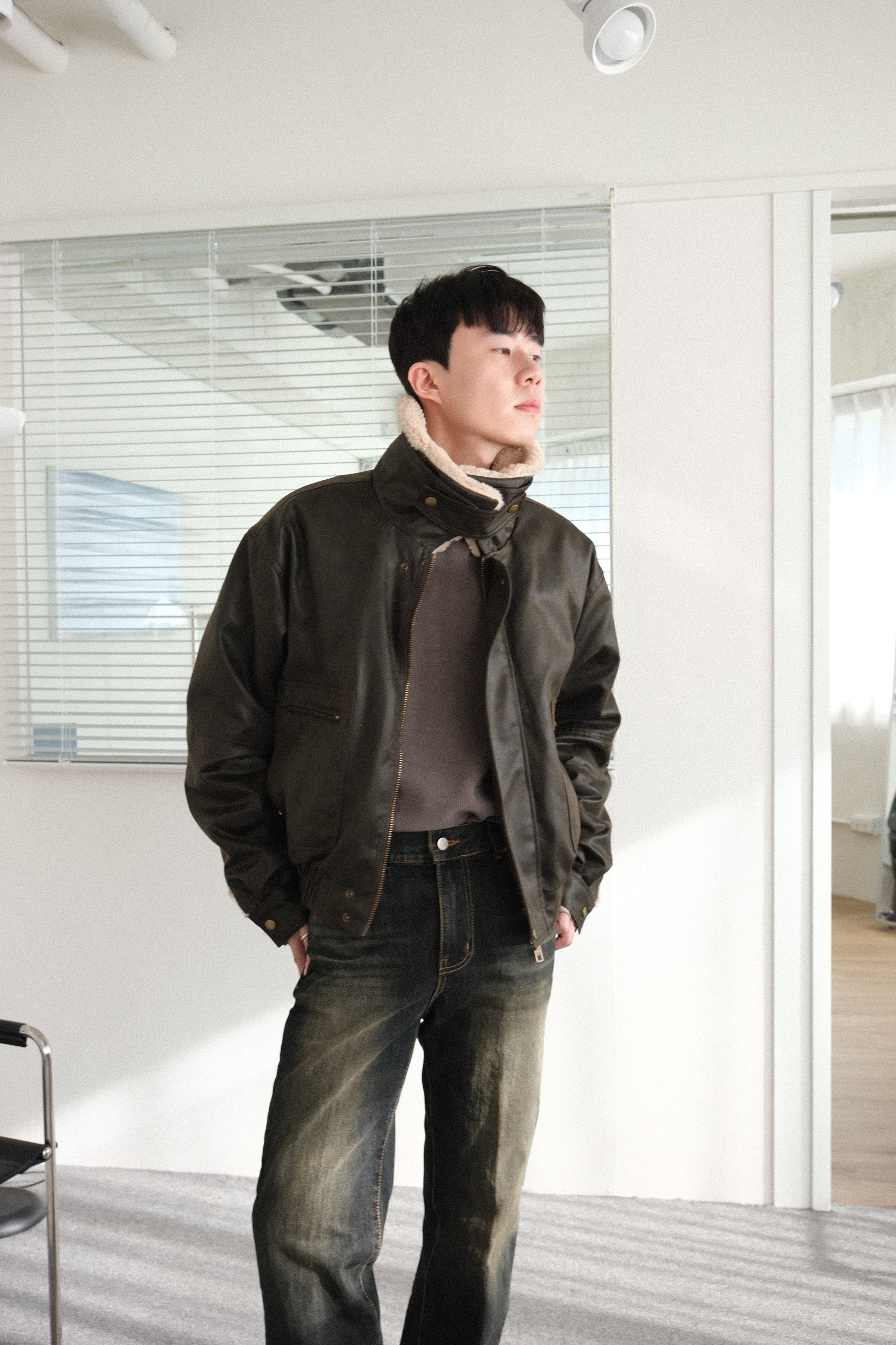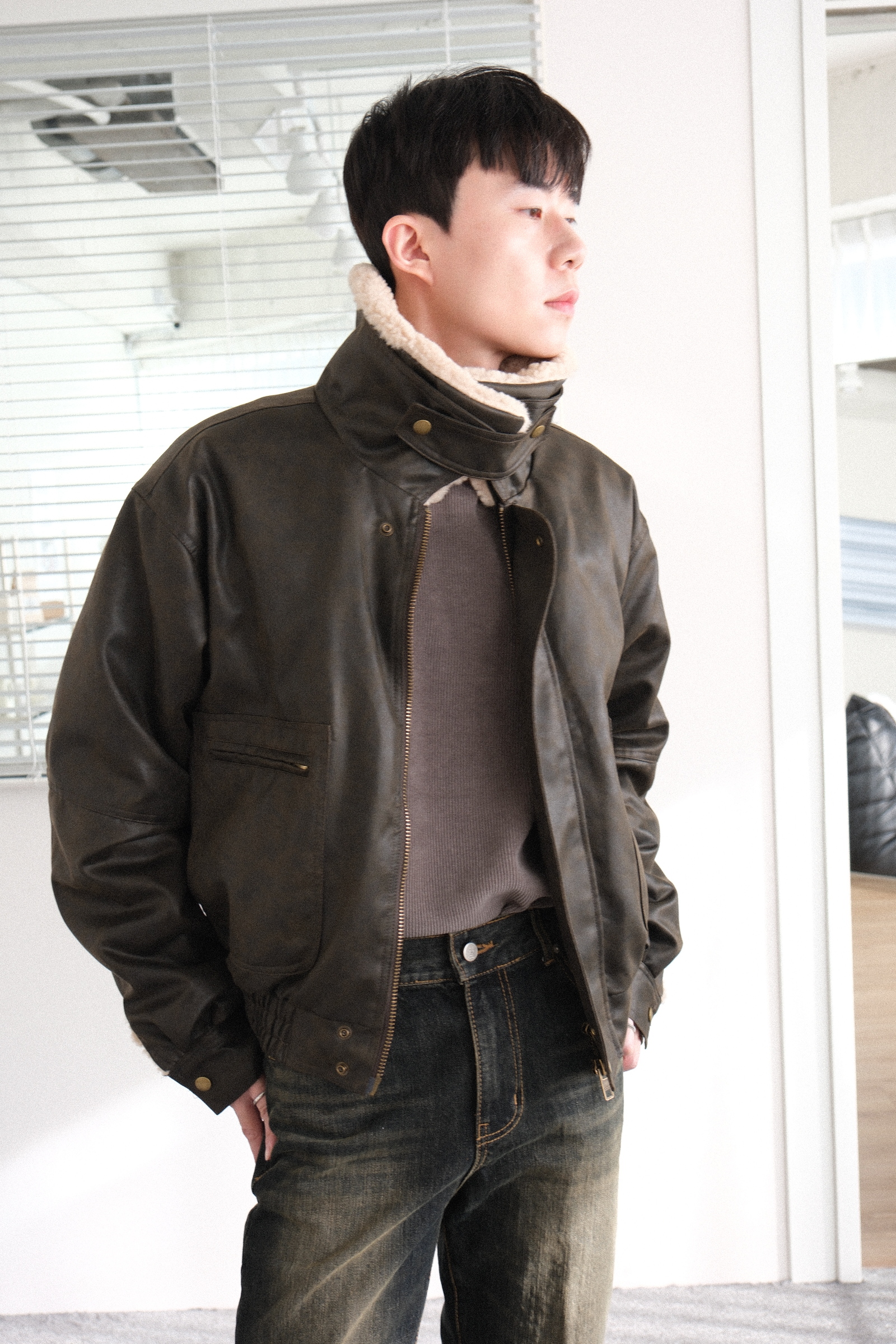 表面皮革防風,內裡羊羔毛