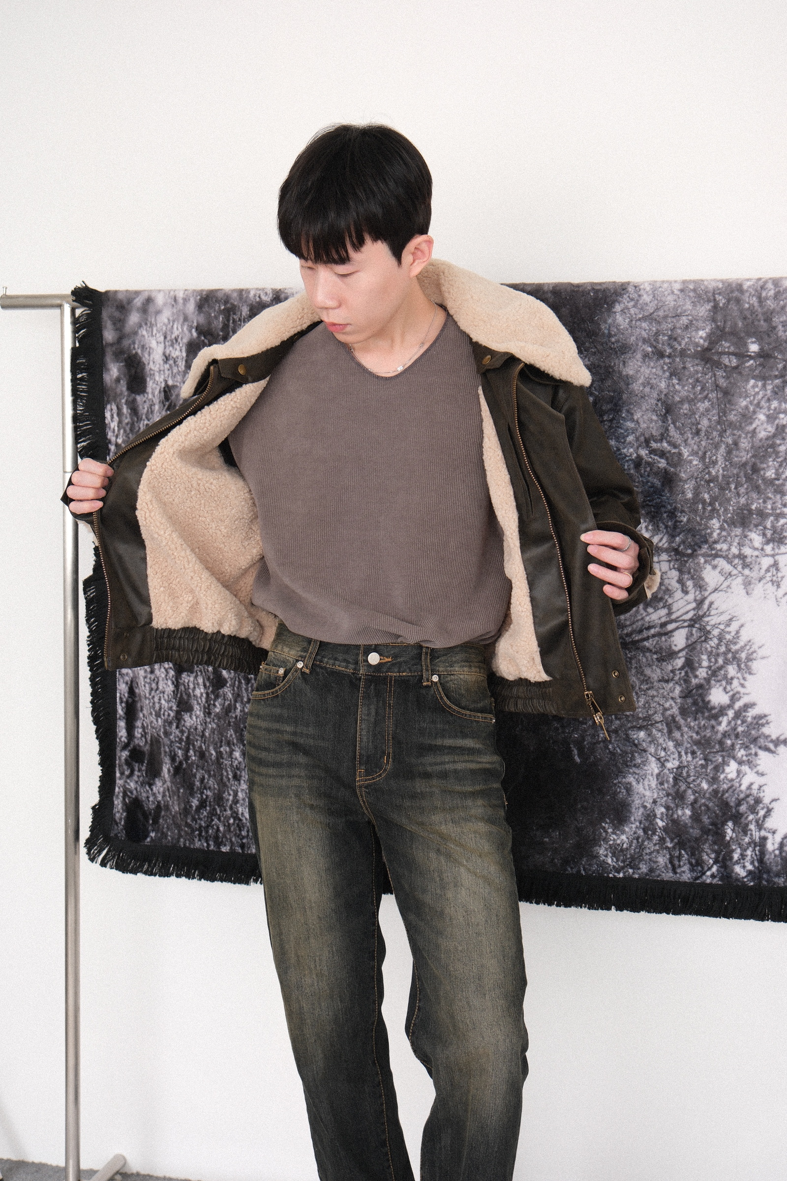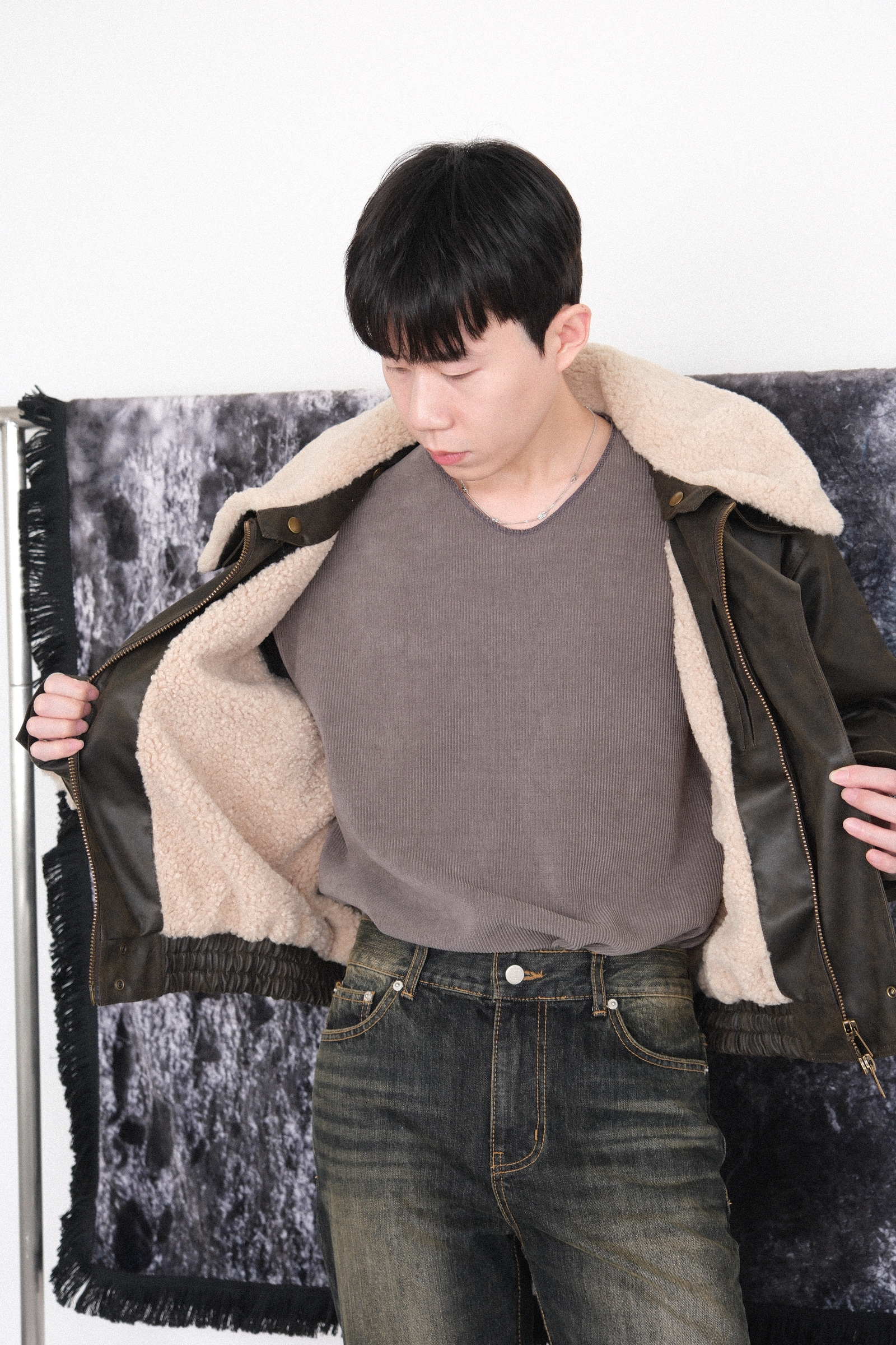 不管是外面的皮表面,還是內裏的羊羔毛,版型 以及五金