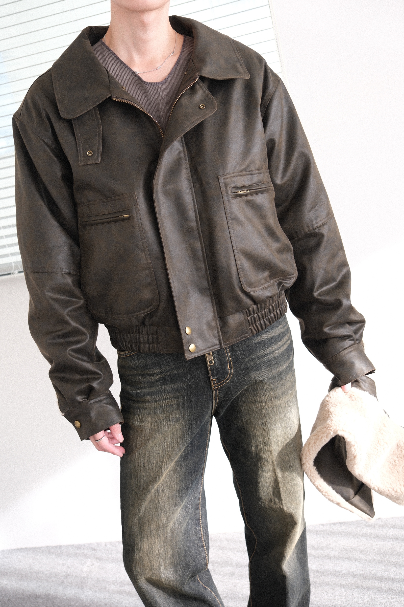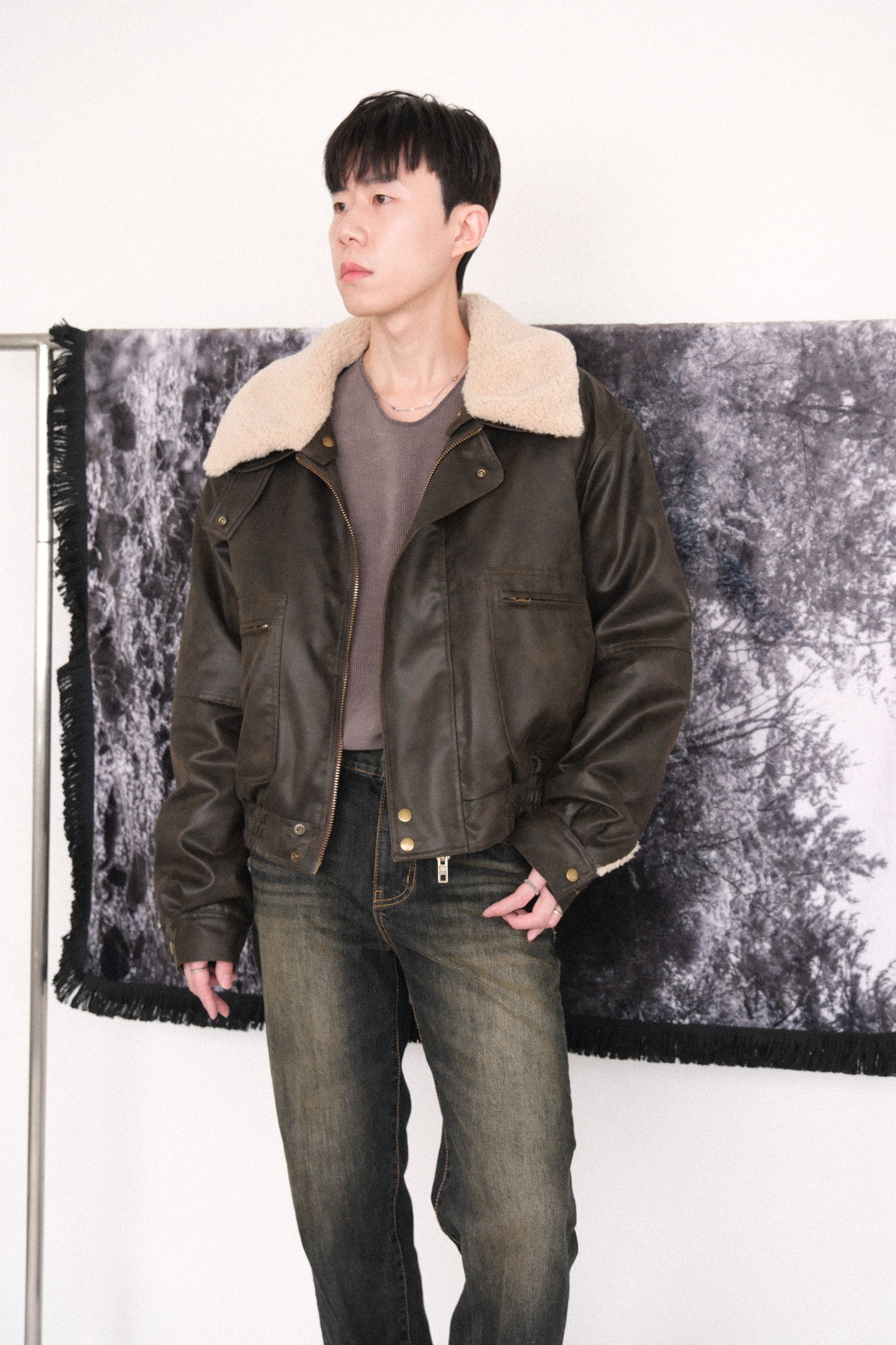 超帥皮面鋪毛外套 領可拆 – 田兄BroTin