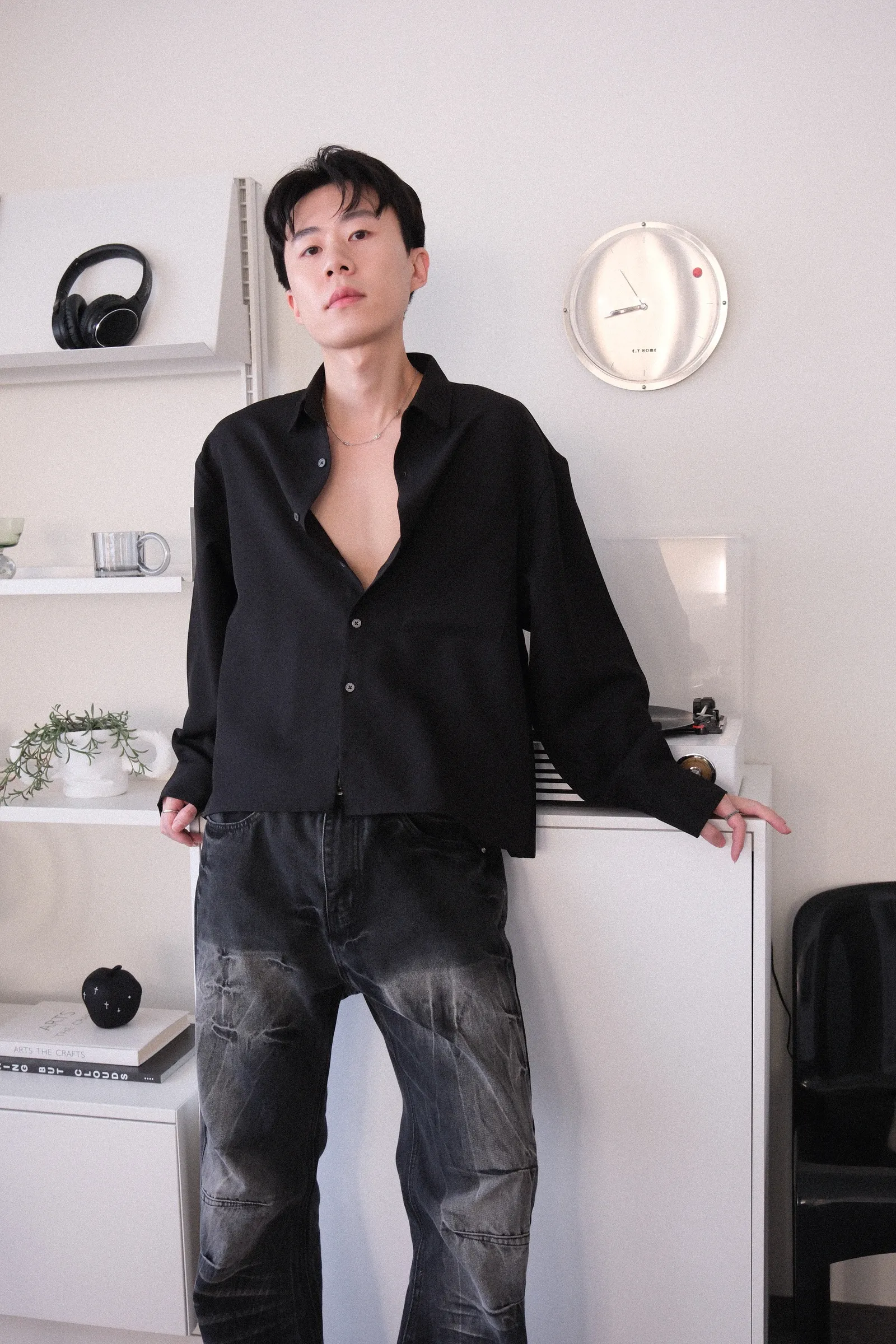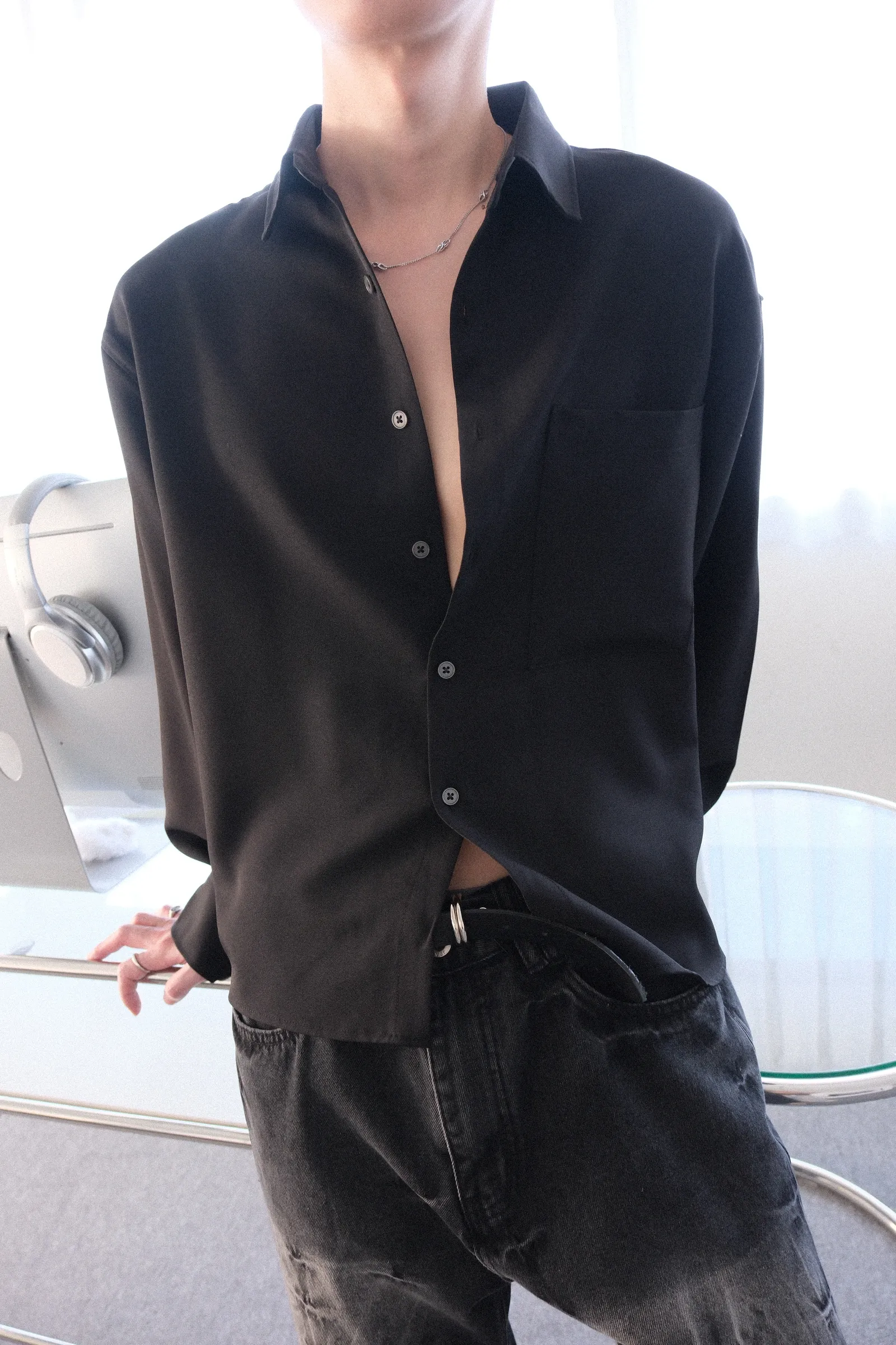 短版襯衫版型,布料有點類似雪紡的質感
