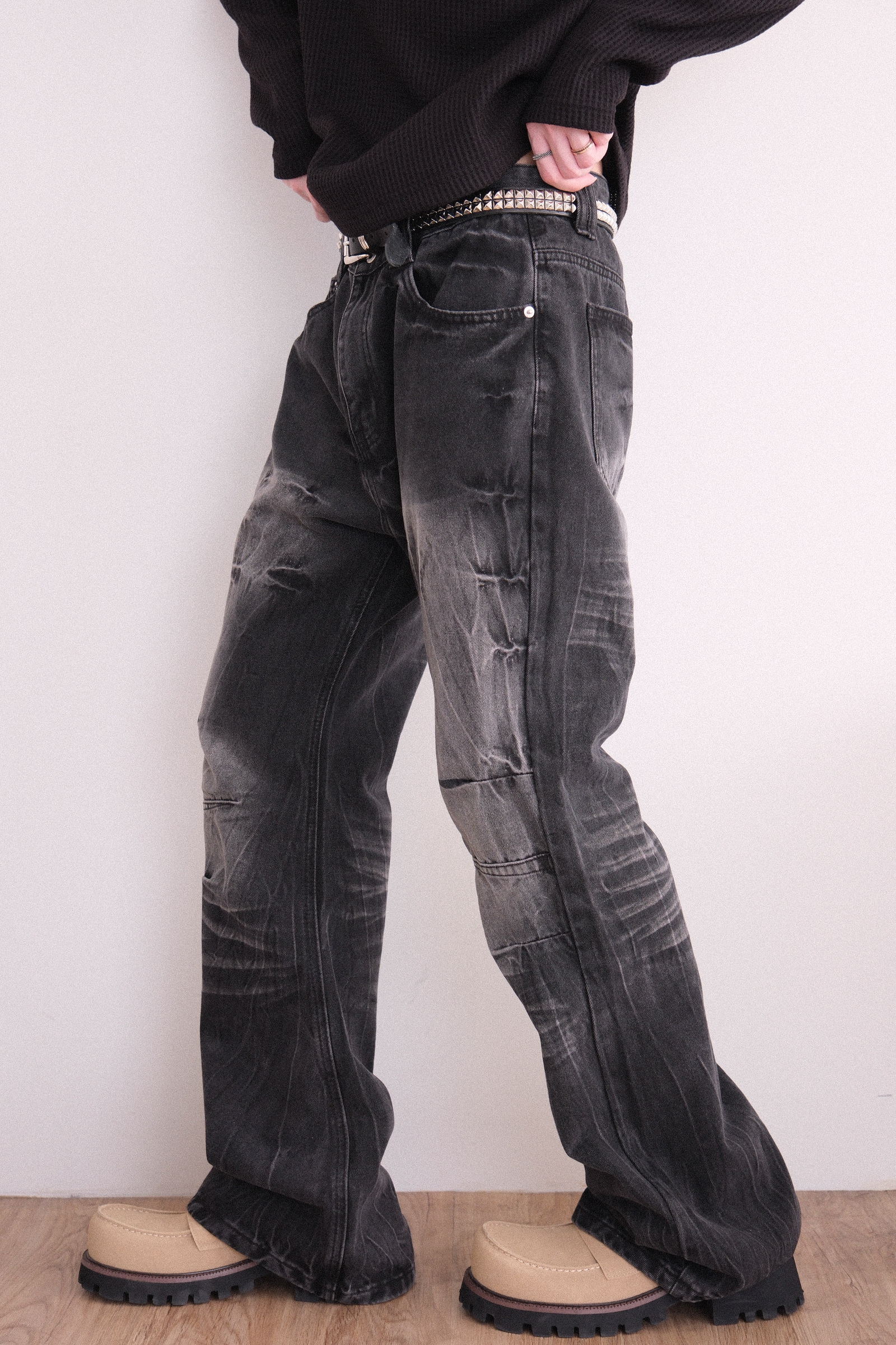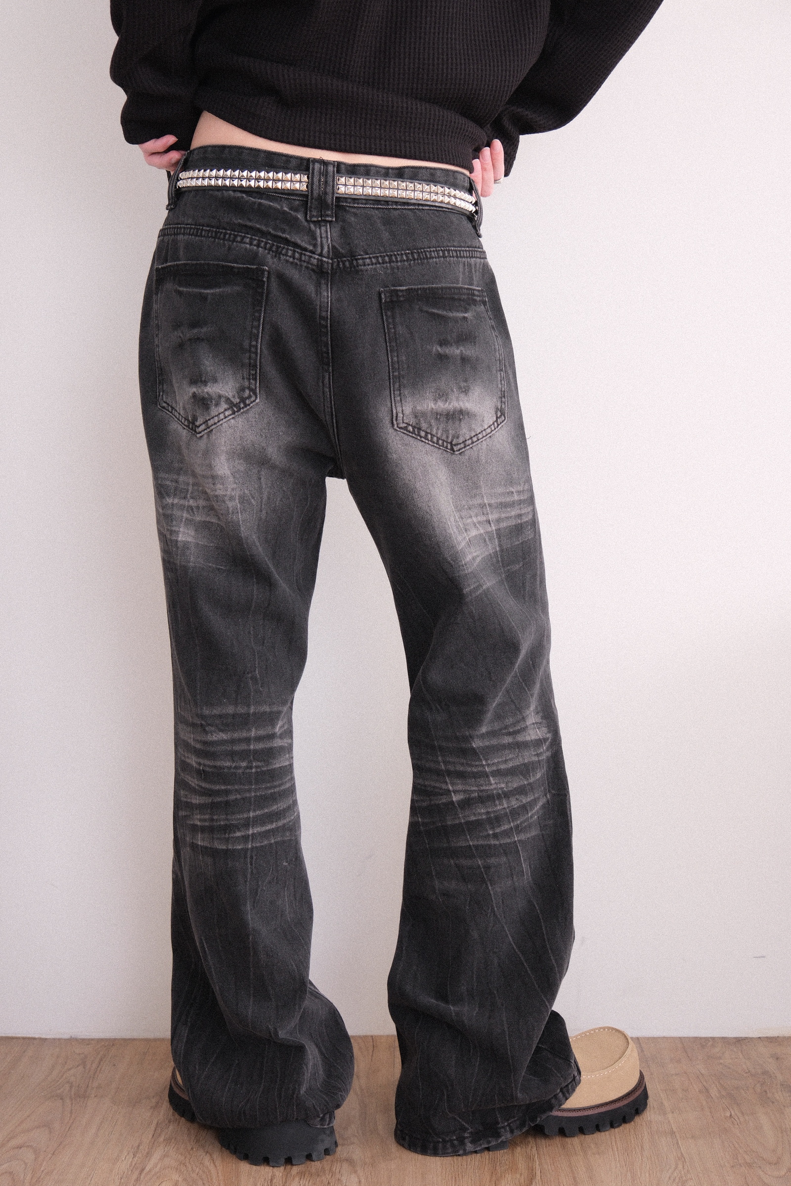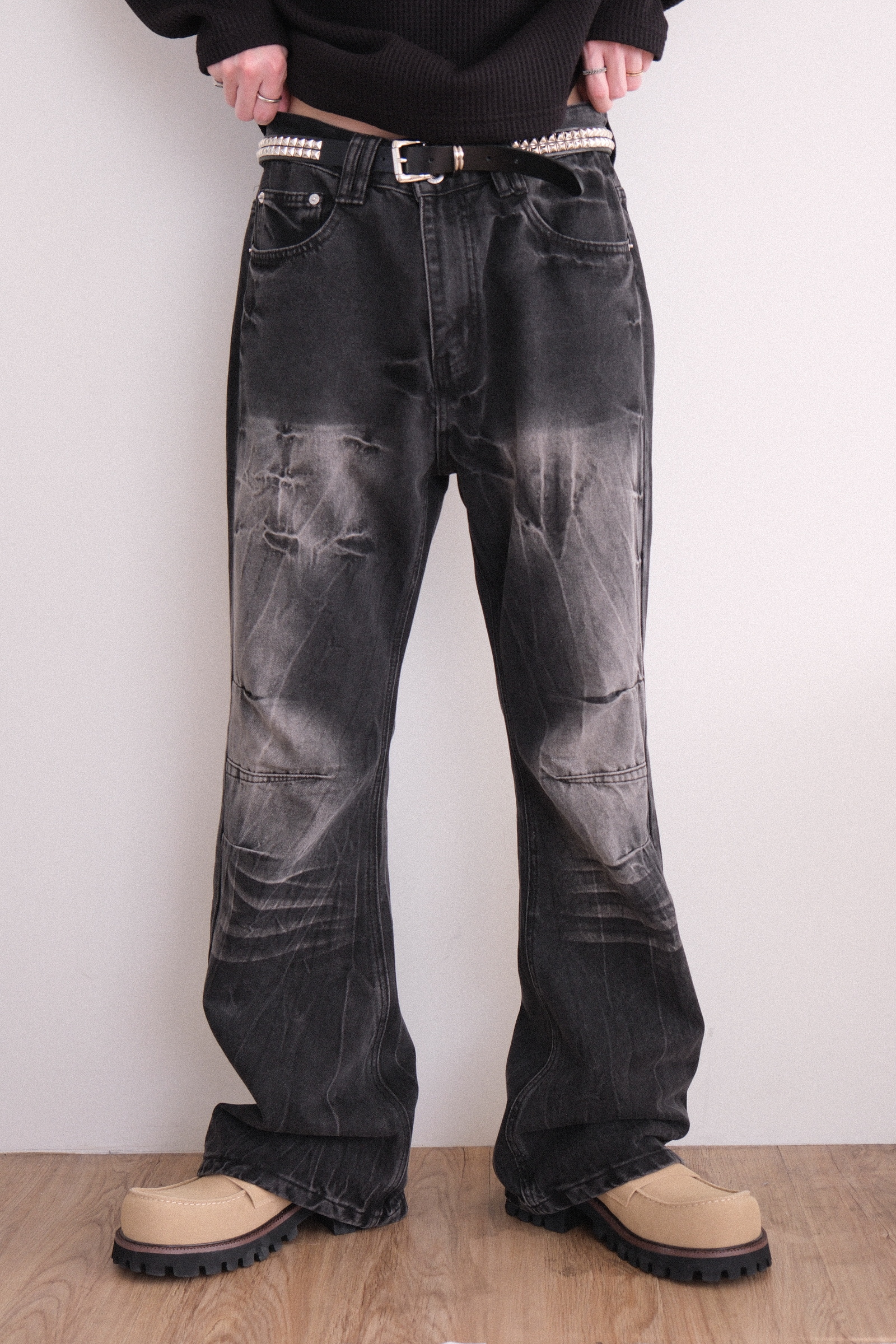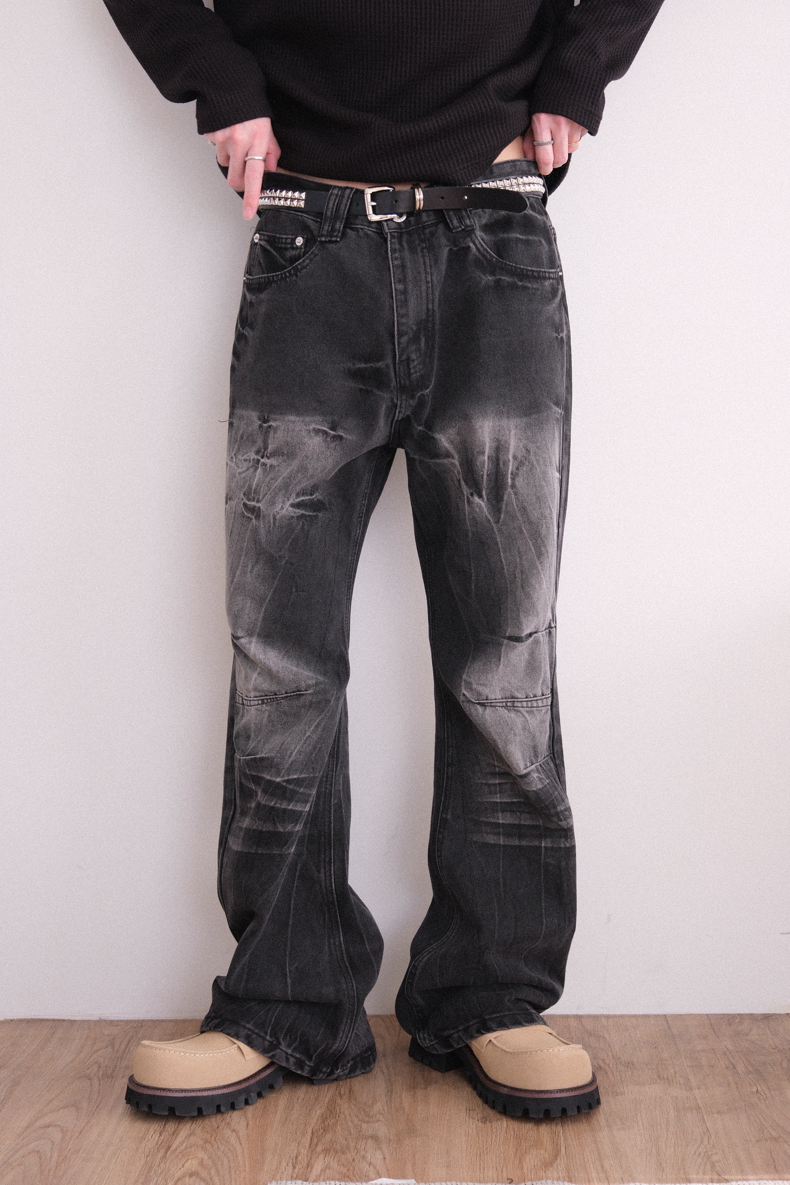 裂紋酷酷寬喇叭牛仔褲 – 田兄BroTin