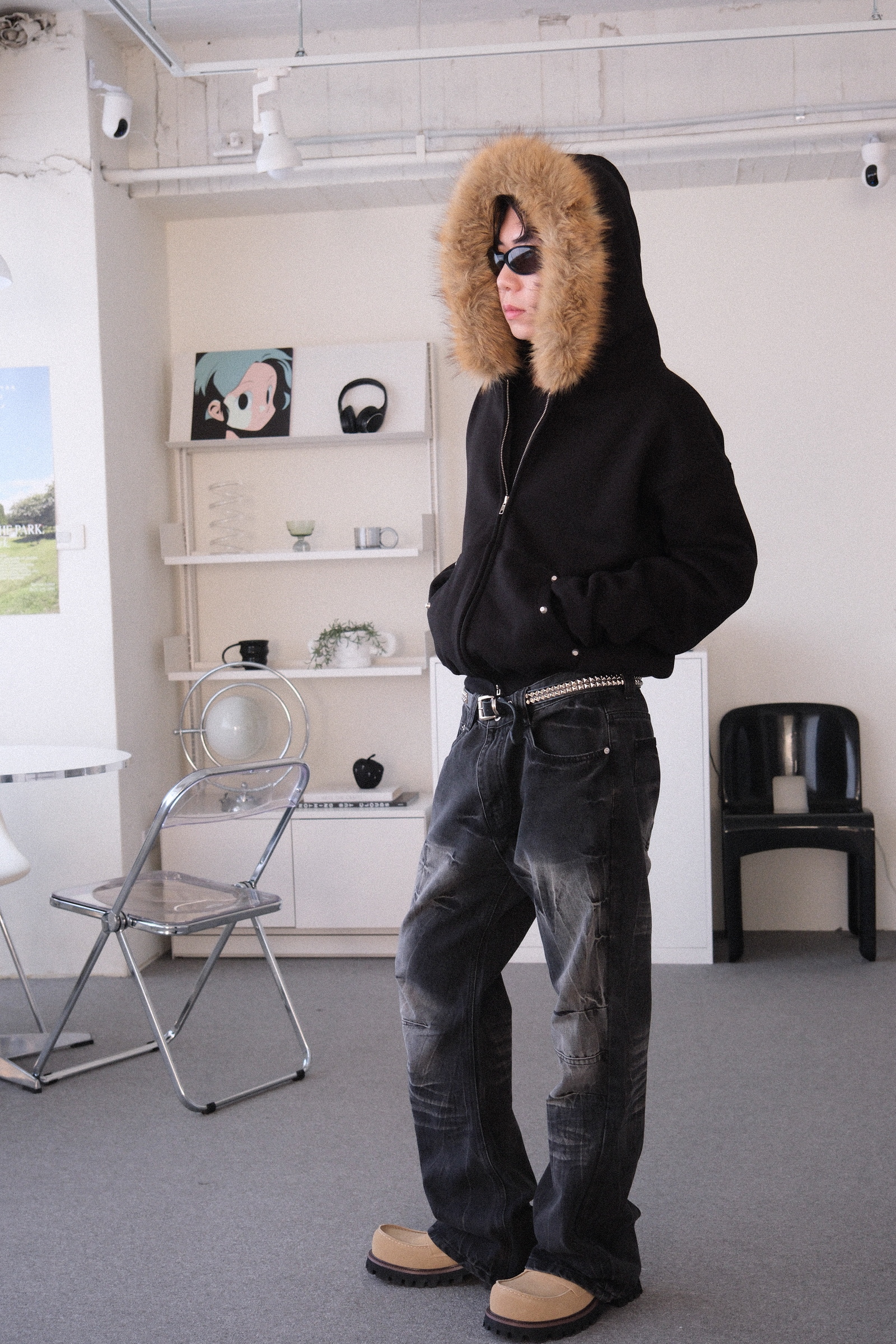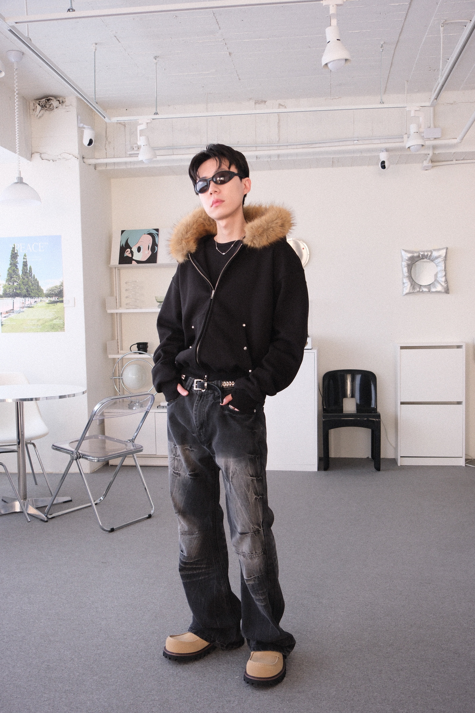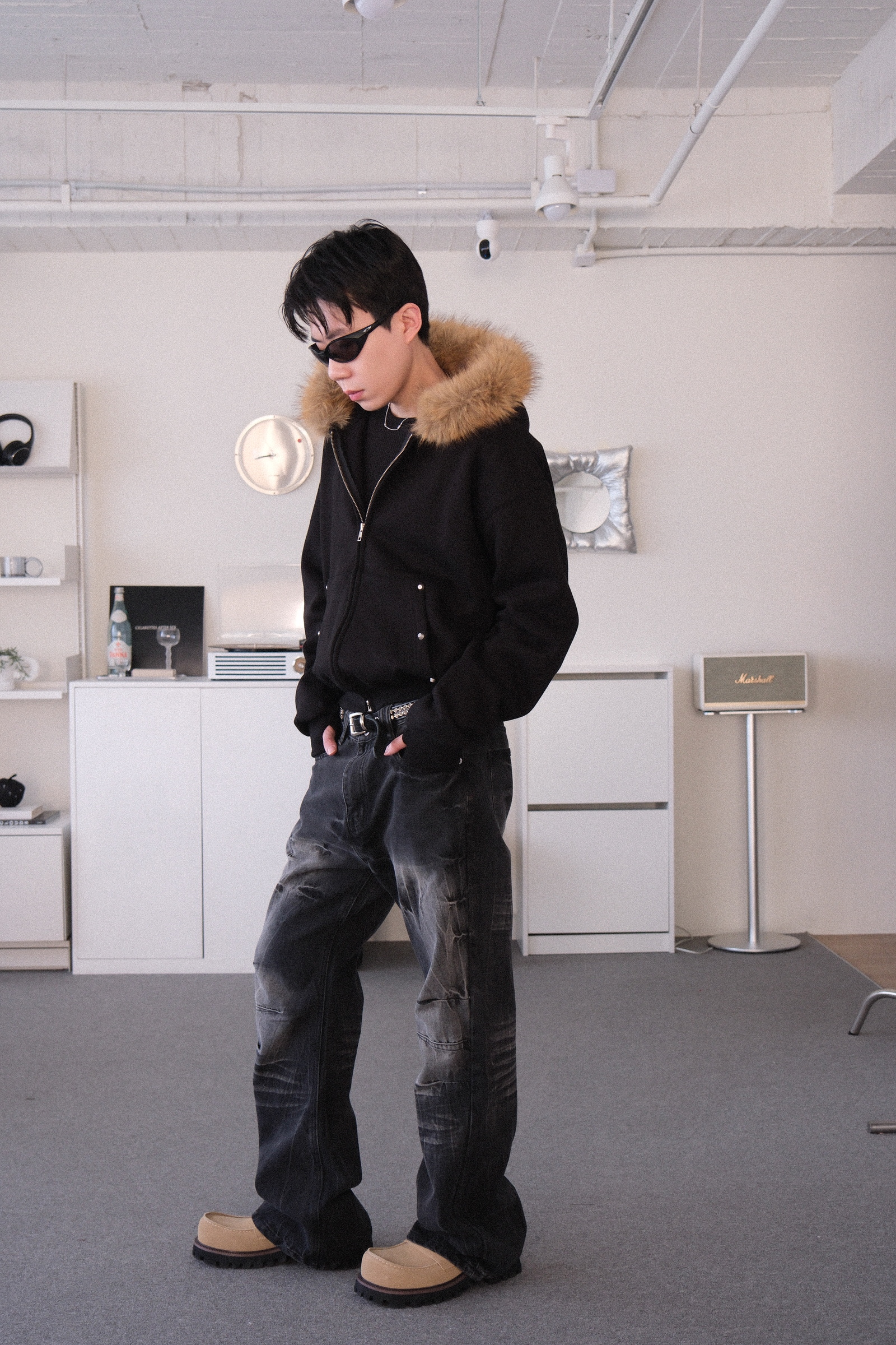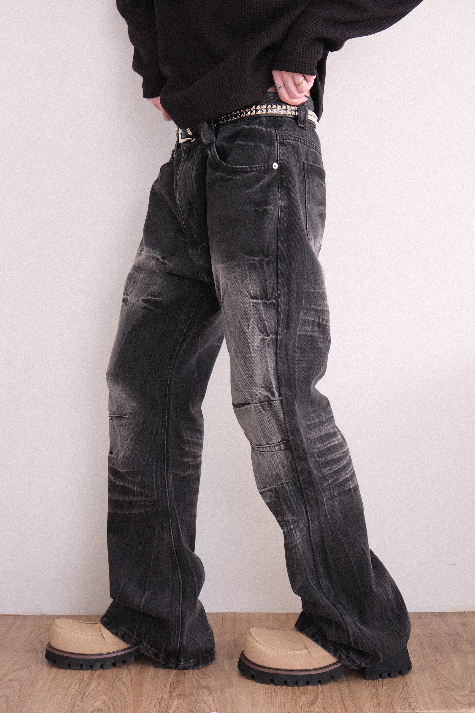 裂紋酷酷寬喇叭牛仔褲 – 田兄BroTin