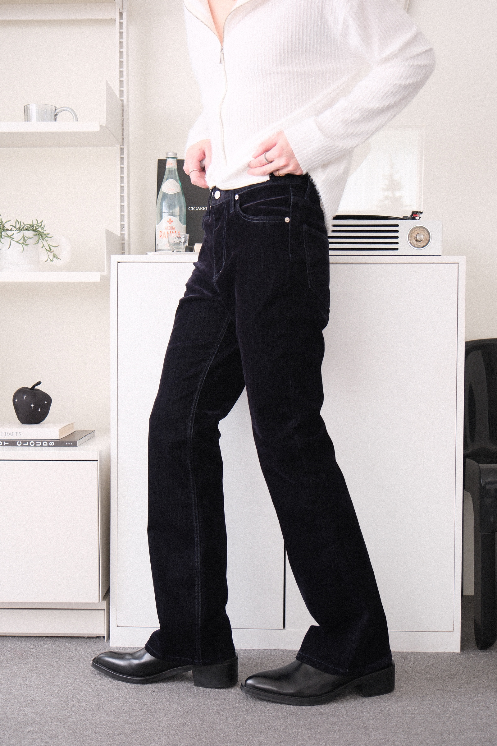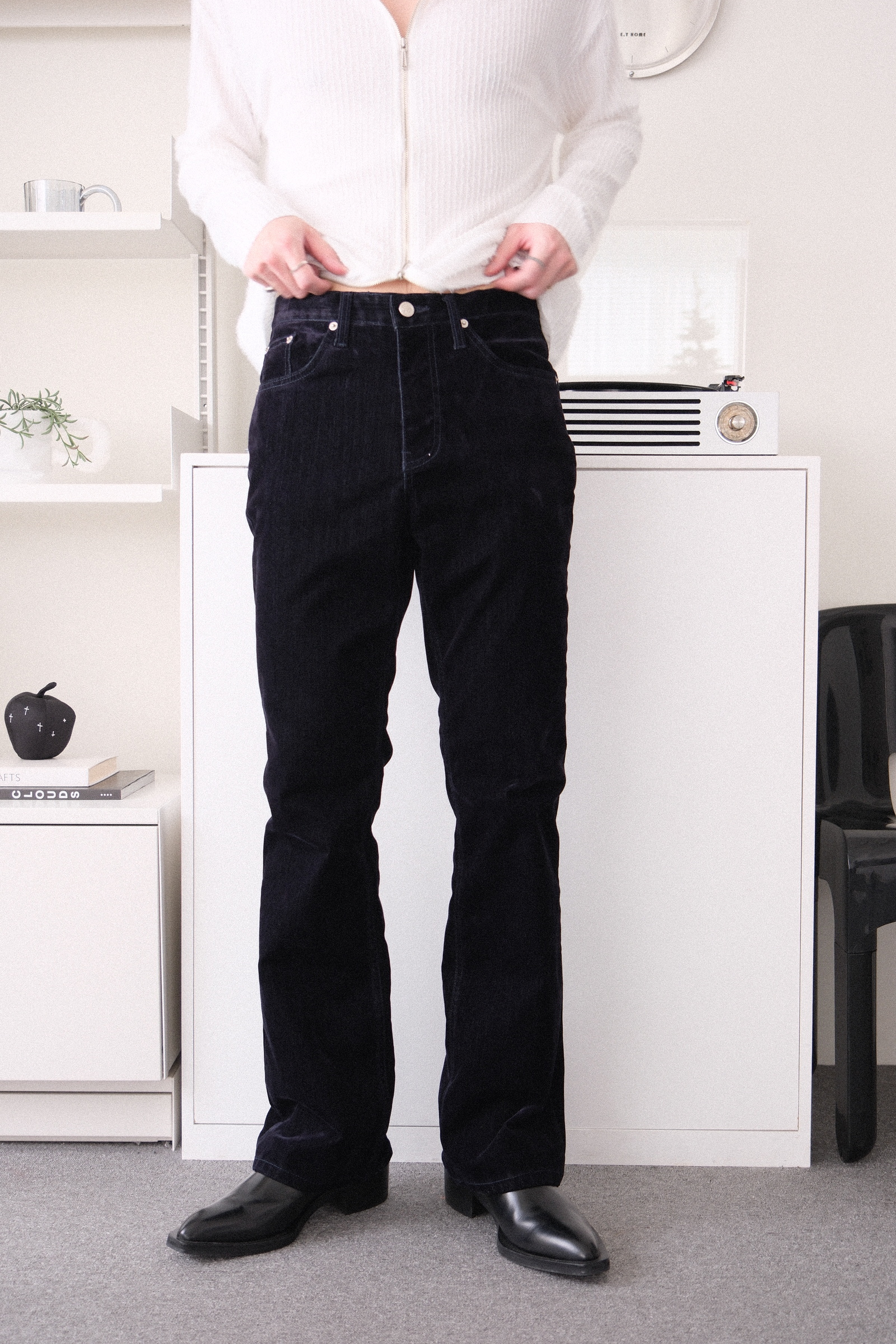 腰圍剛好,大腿剛好不緊繃,長度穿平底鞋時剛好不踩到地