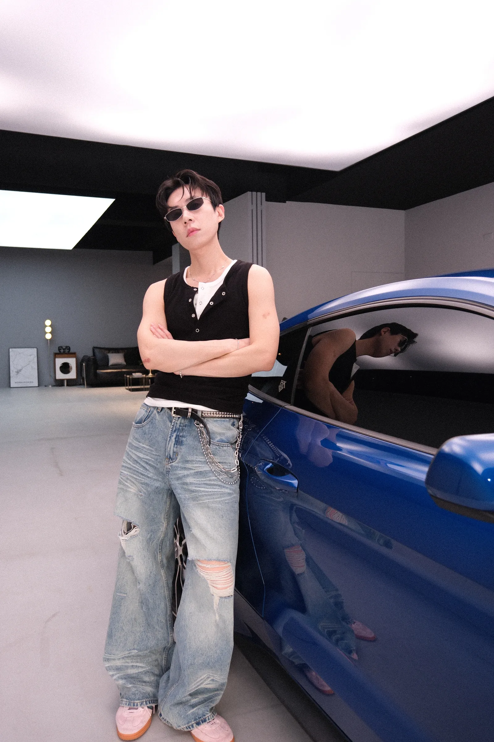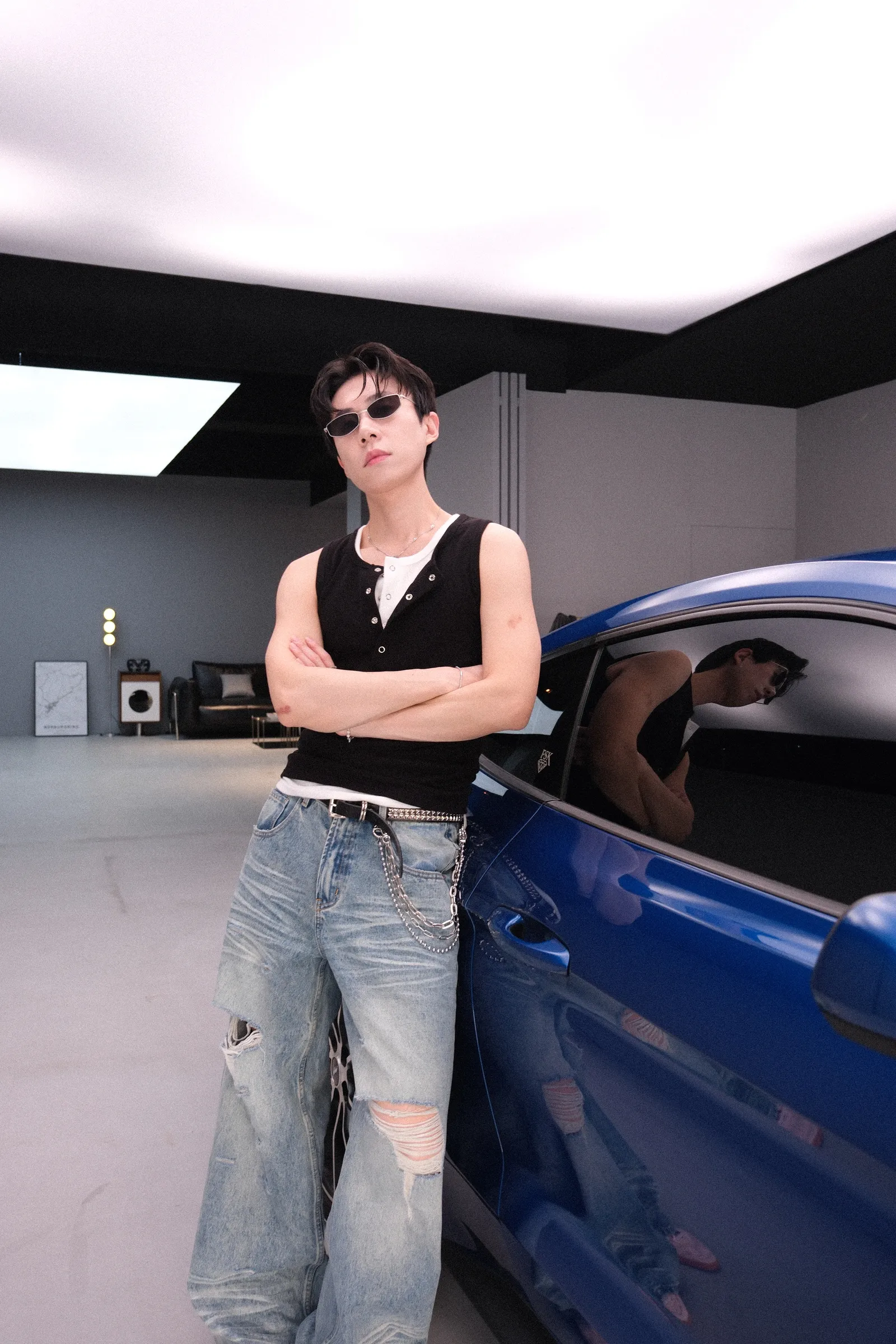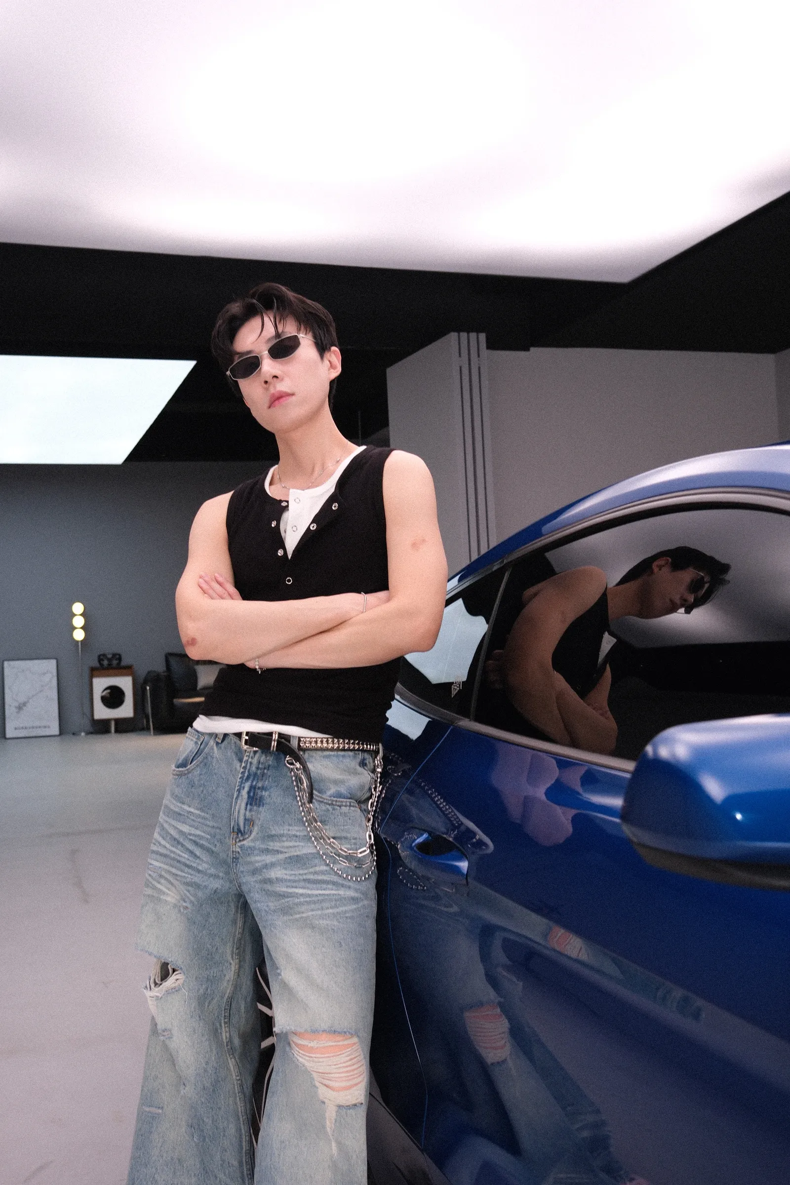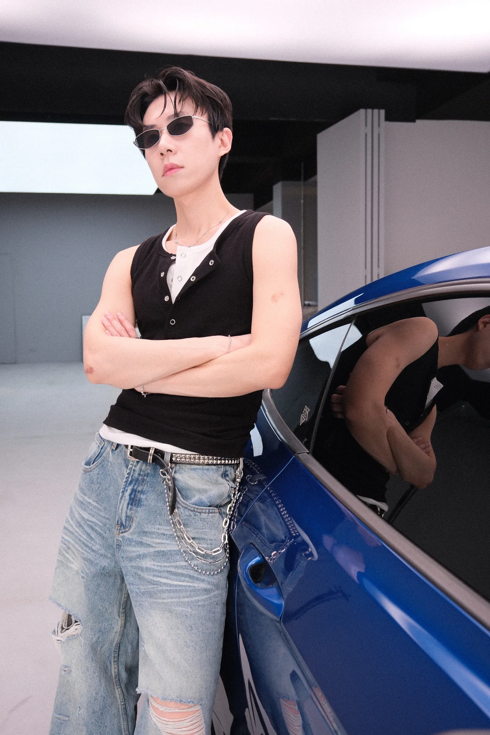 因為黑跟白是必備,不妨試試看有時候兩件疊穿