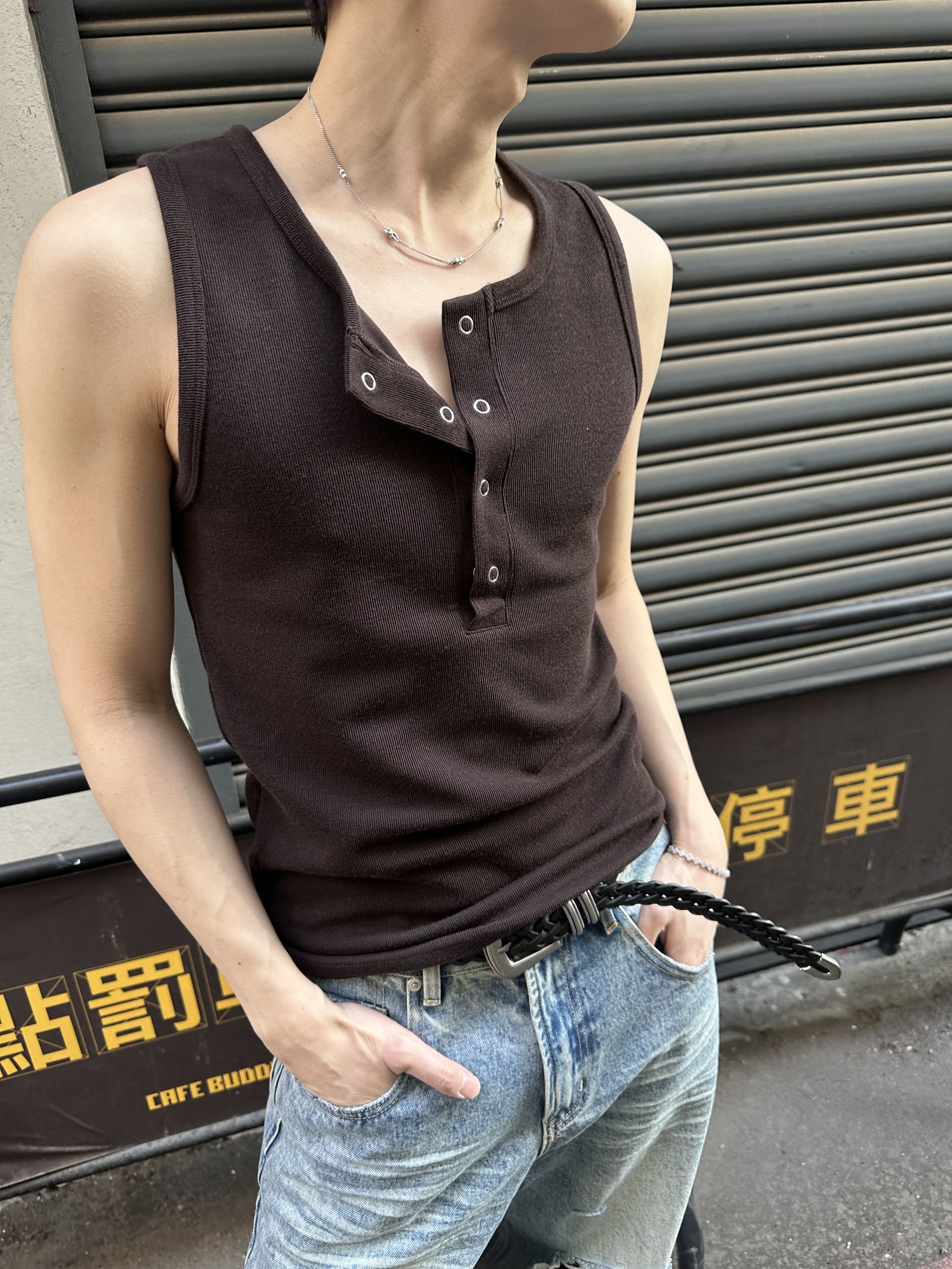 亨利領按壓釦背心 – 田兄BroTin