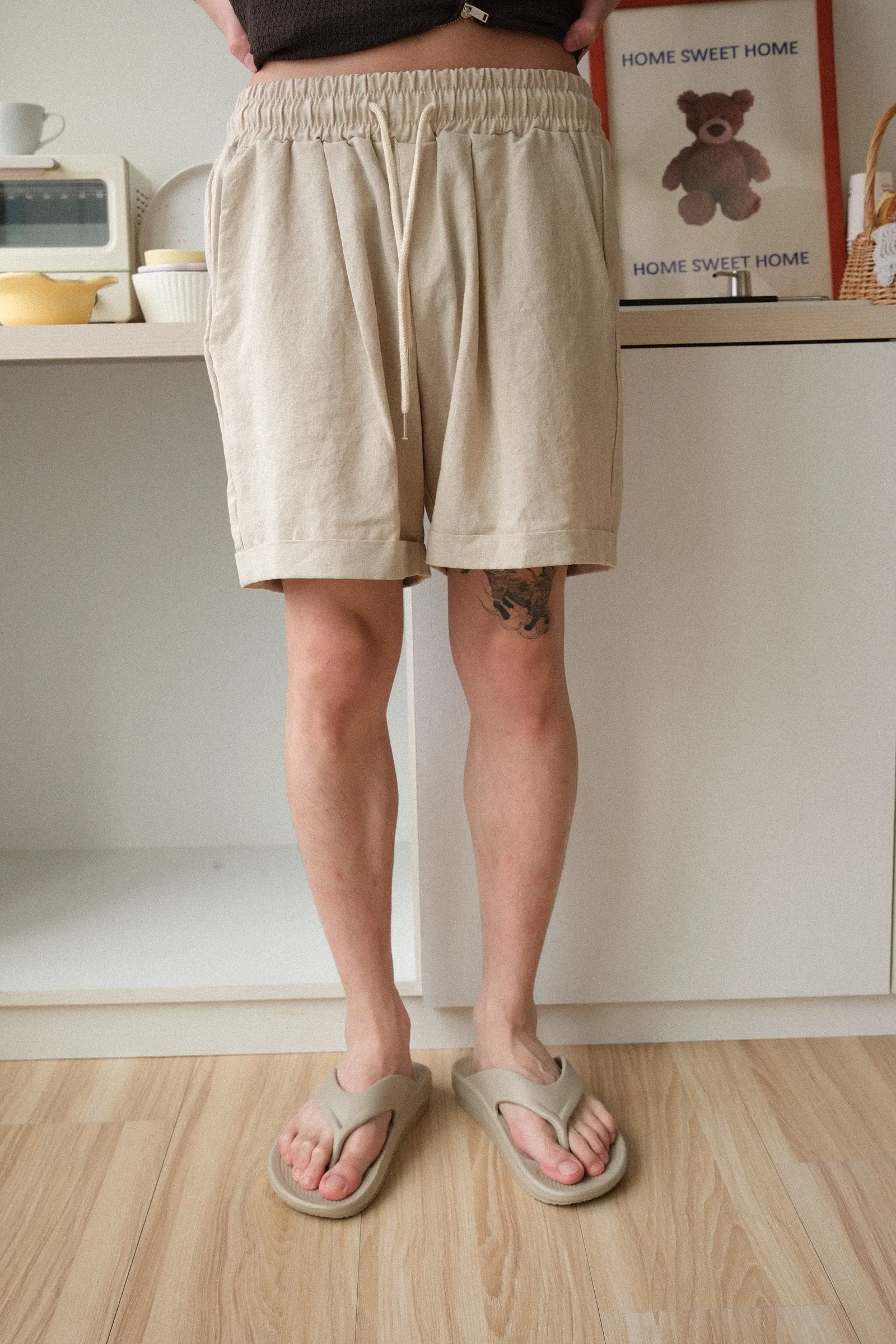 膝上版型,鬆緊帶褲頭