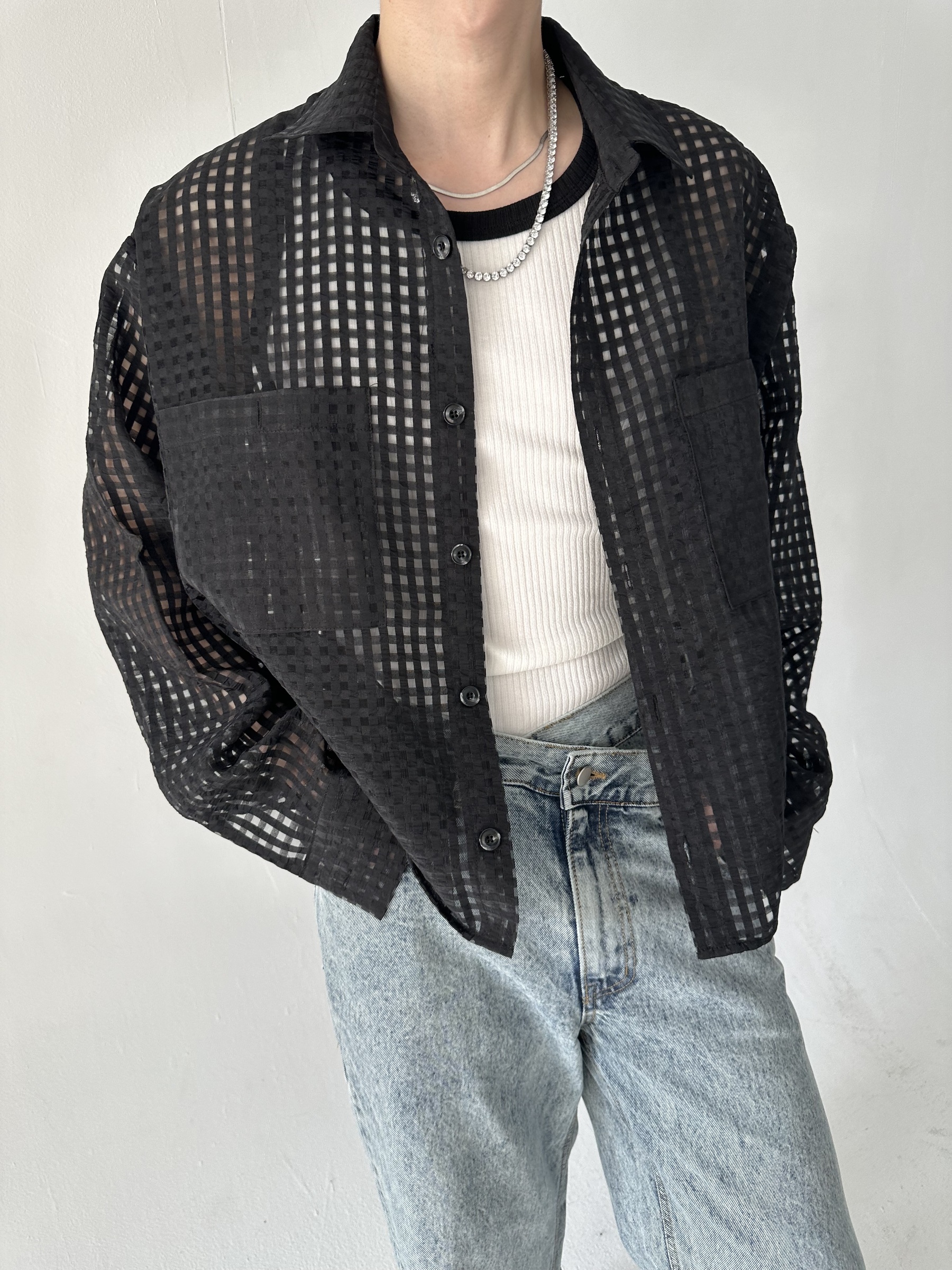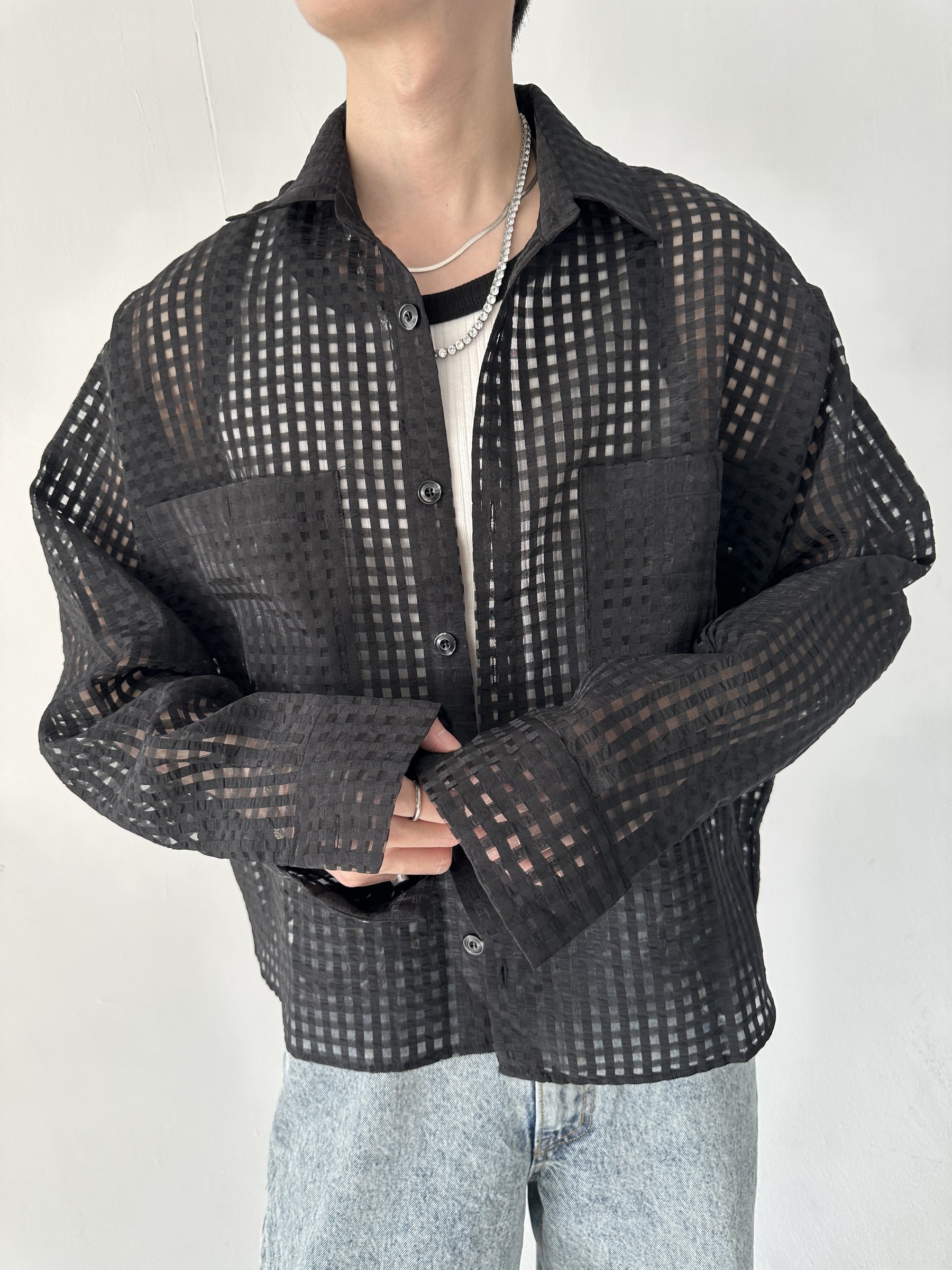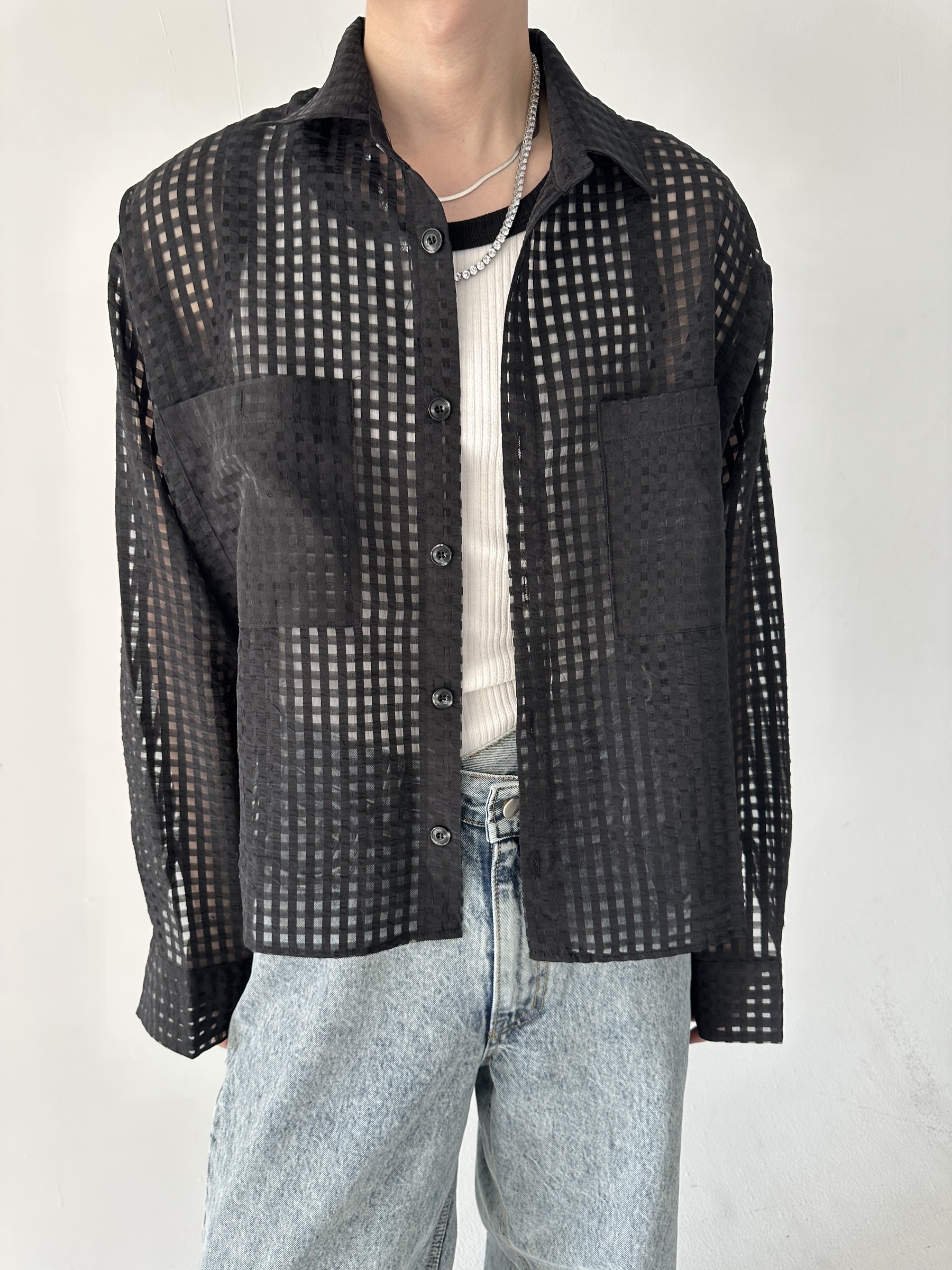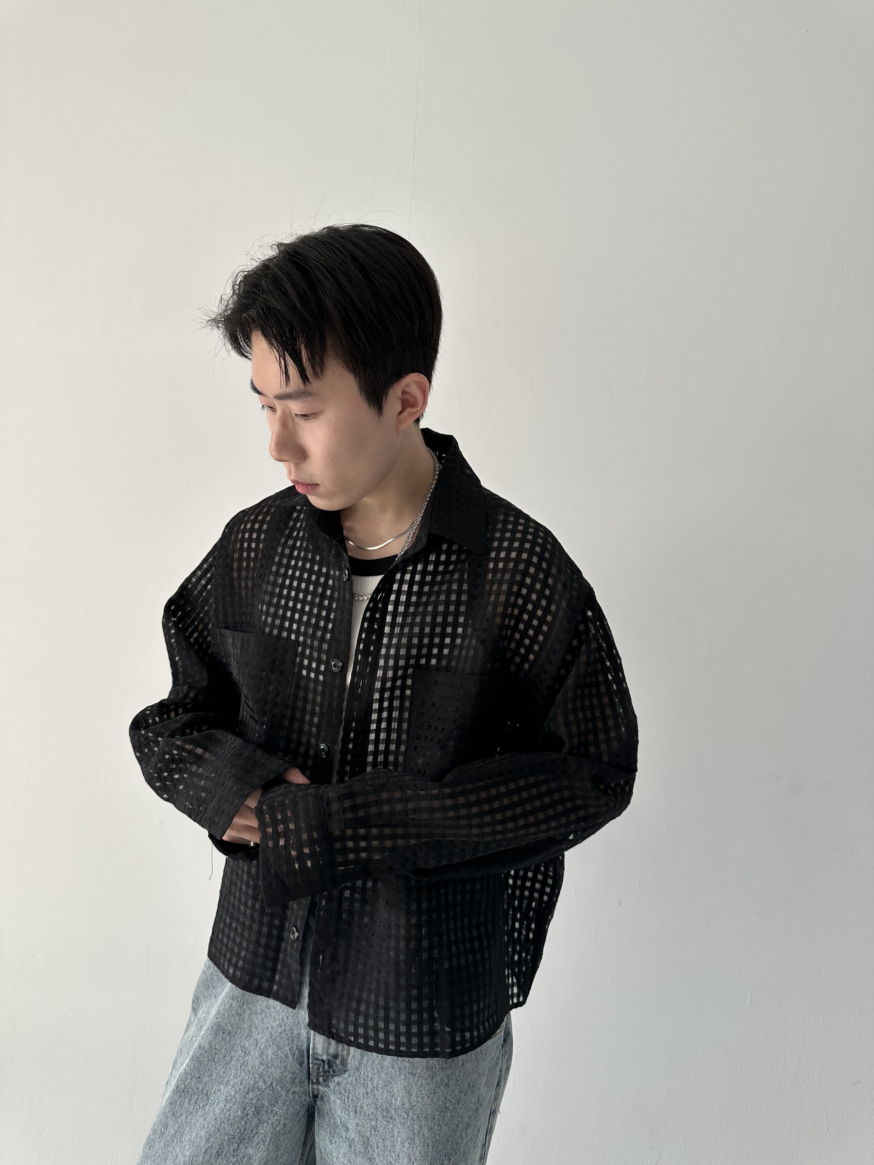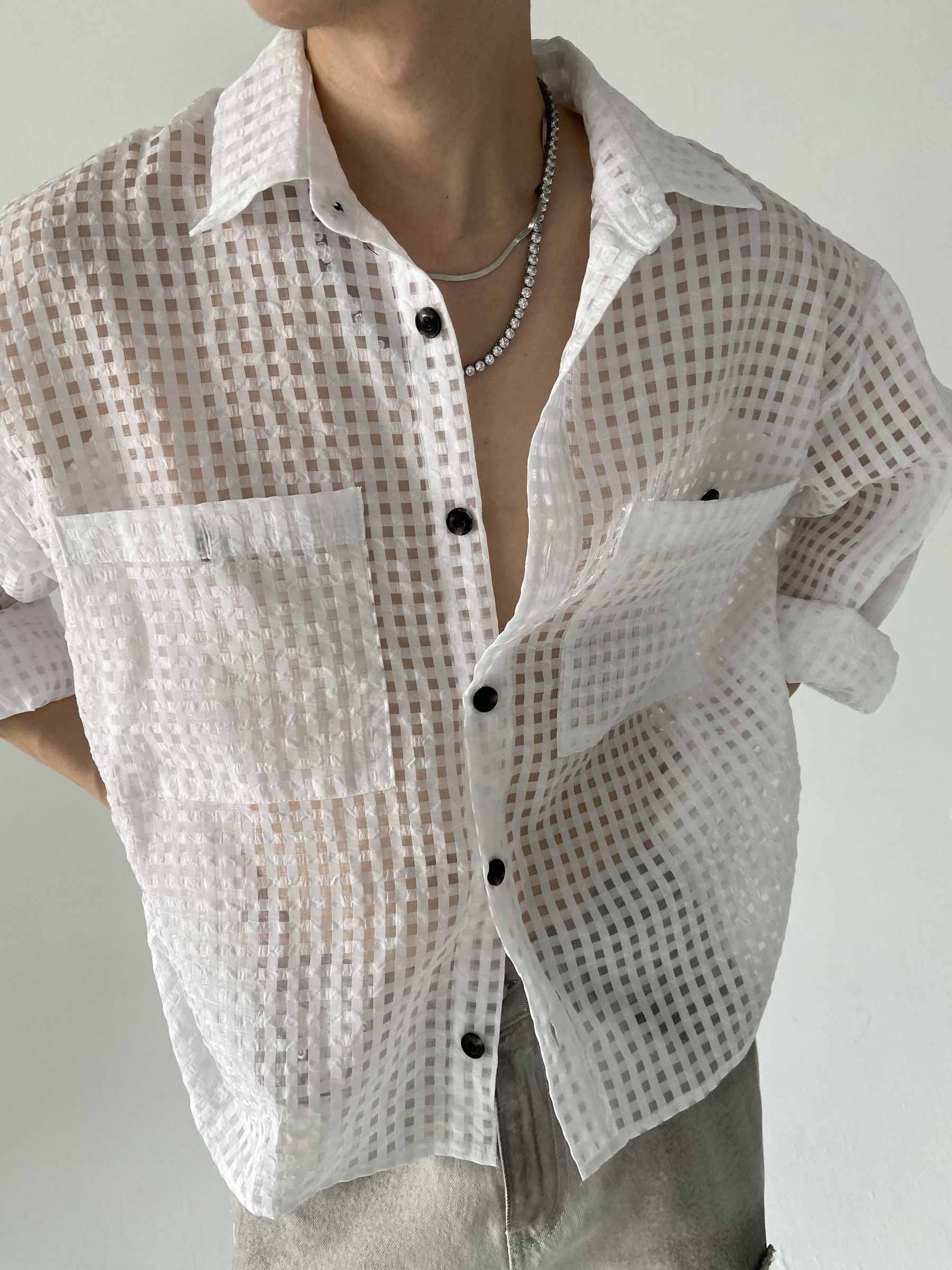 方格透視短版襯衫 – 田兄BroTin