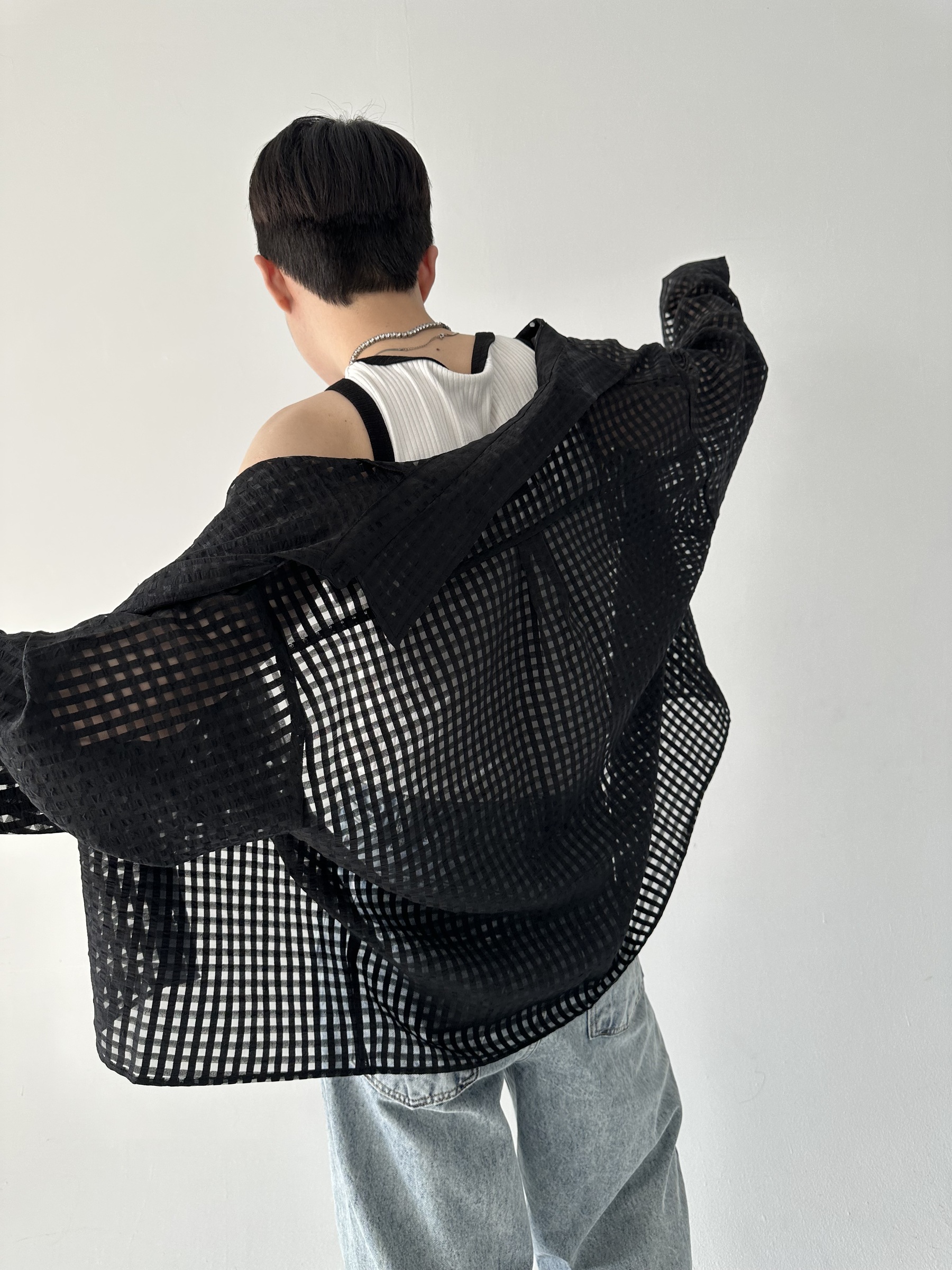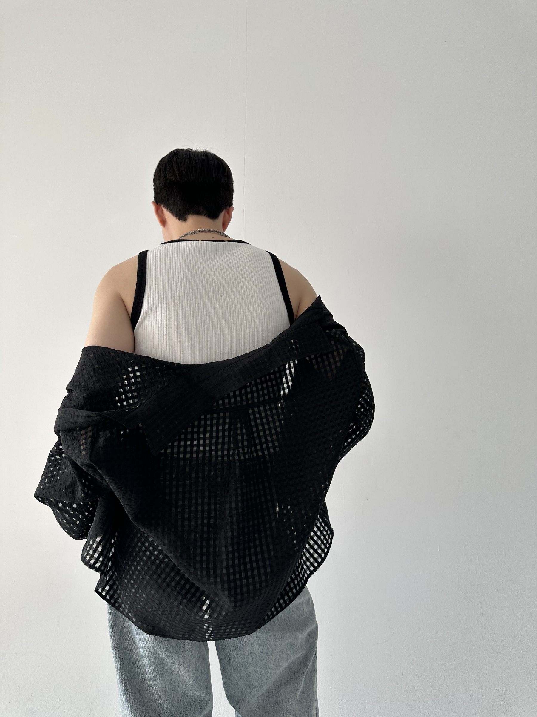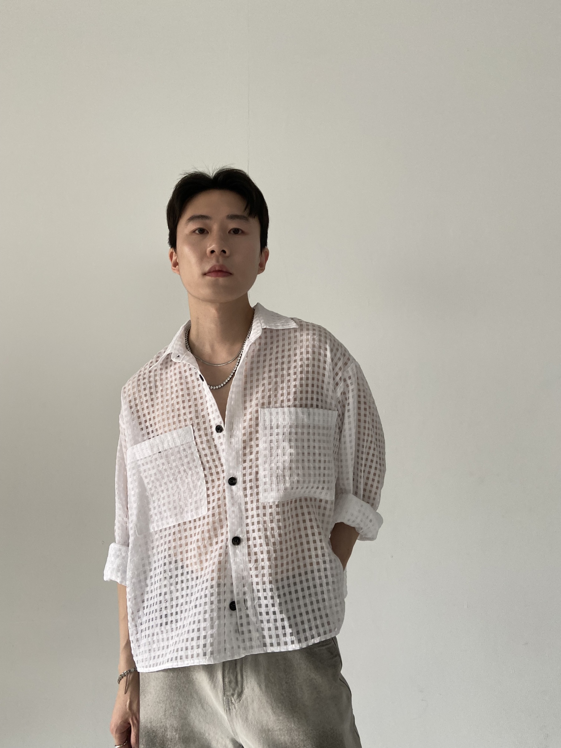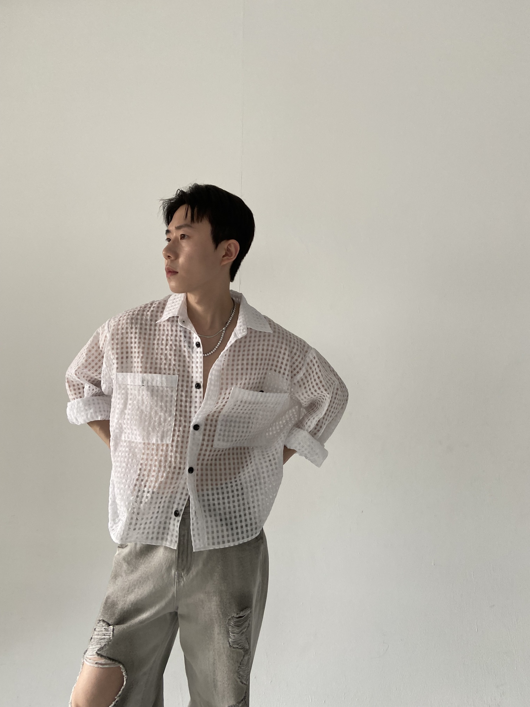 方格透視短版襯衫 – 田兄BroTin