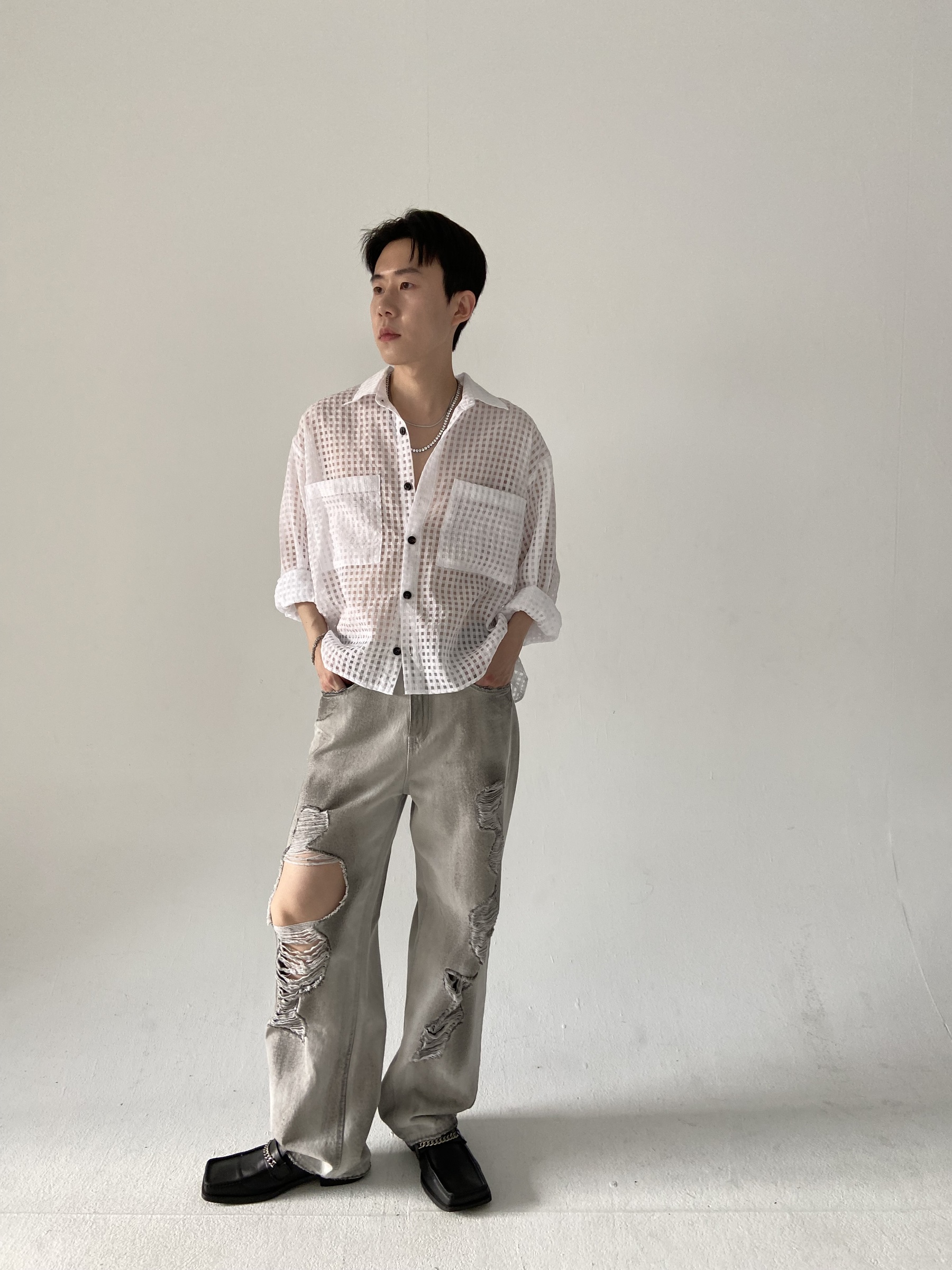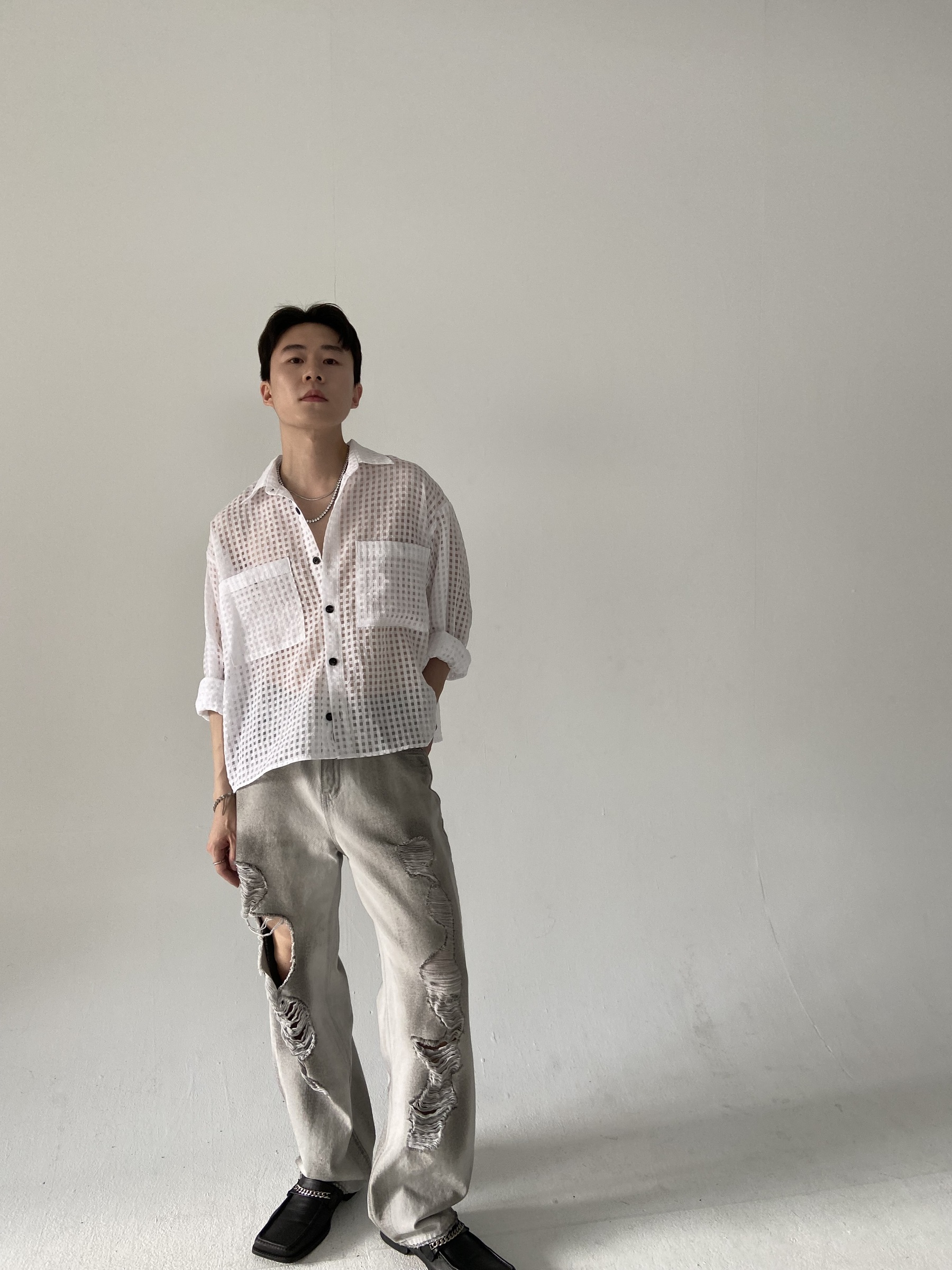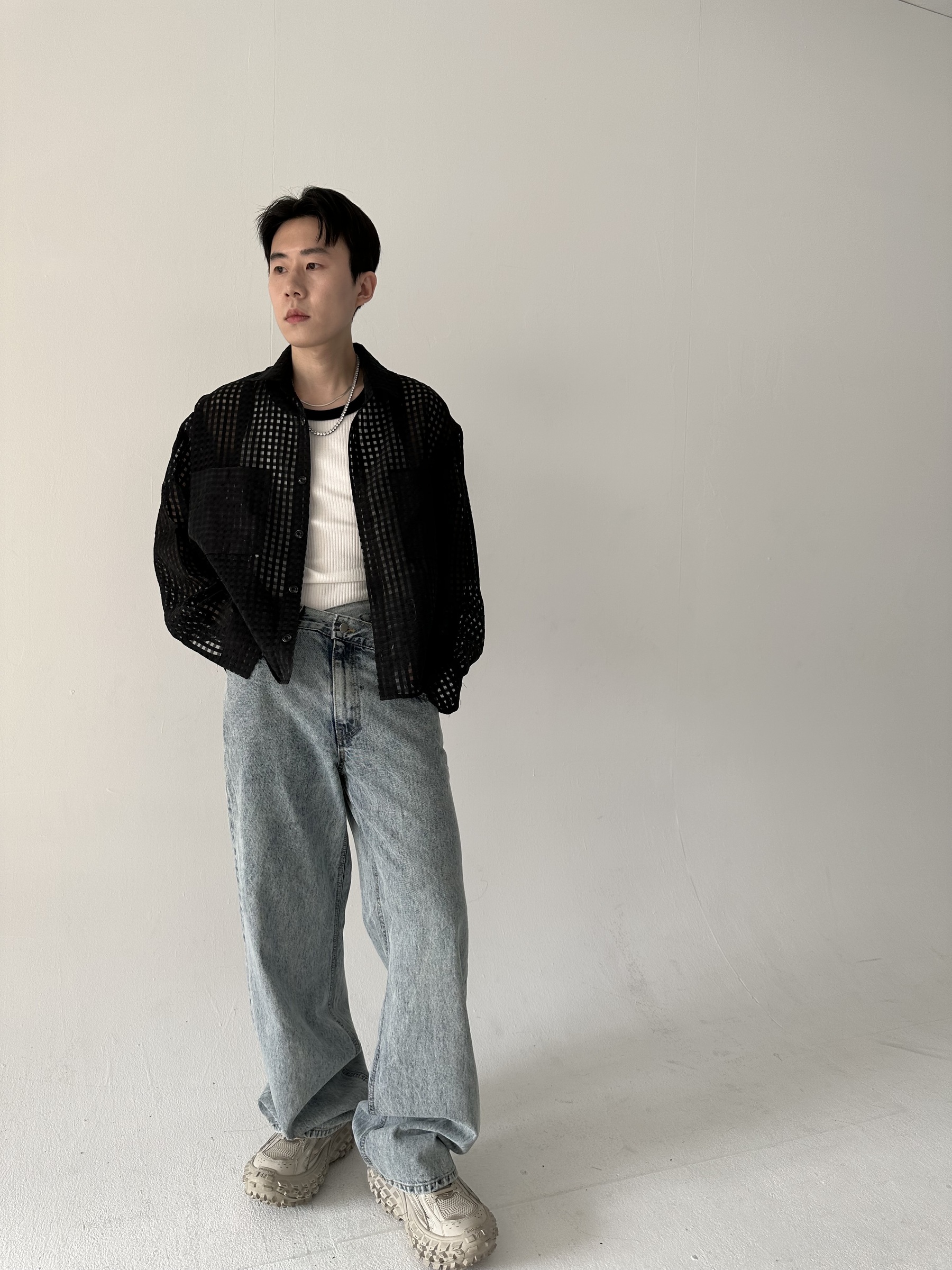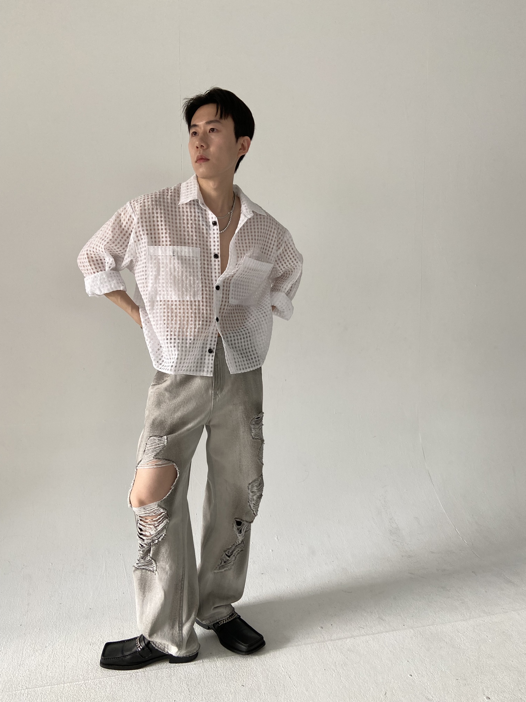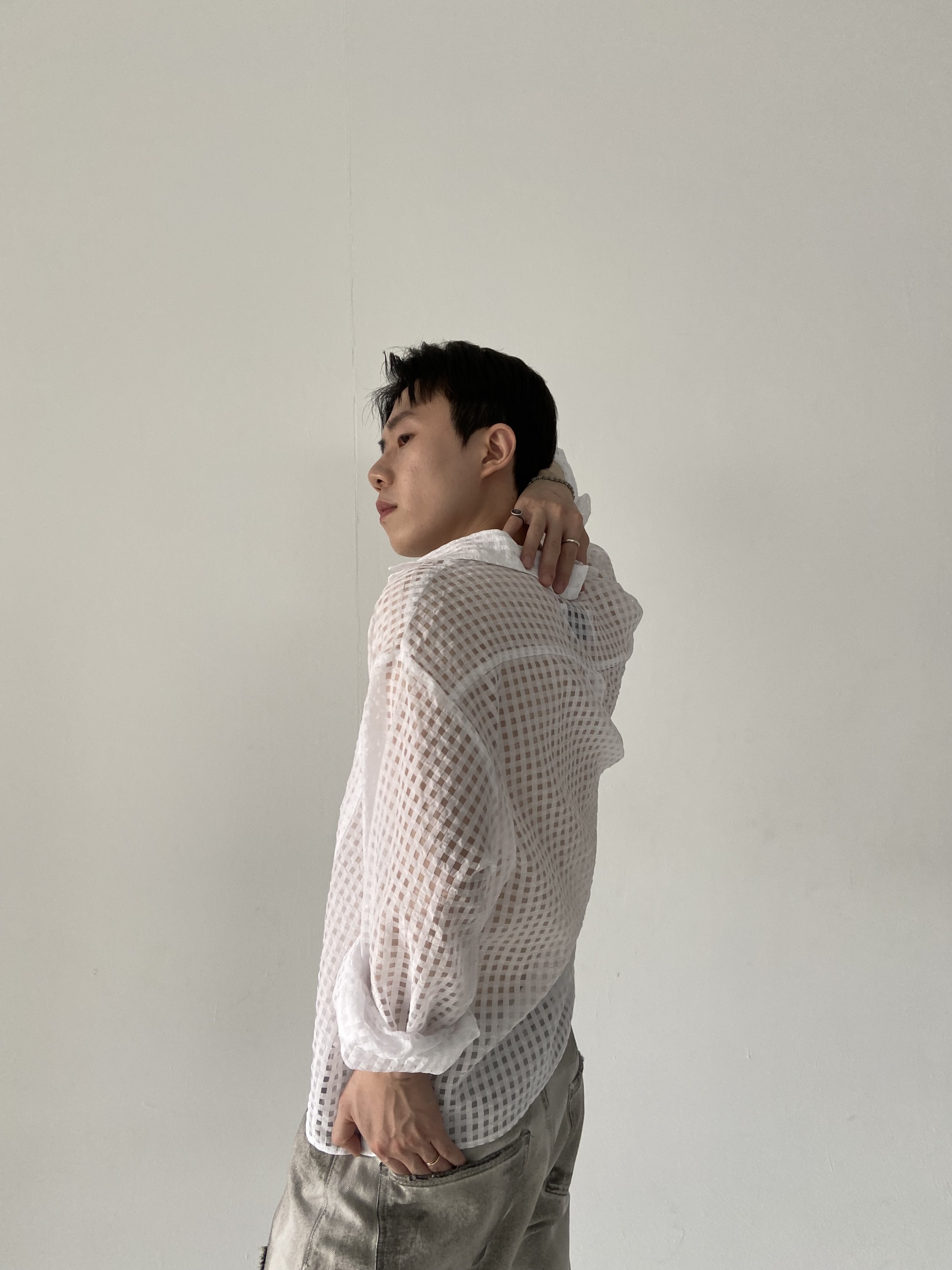 方格透視短版襯衫 – 田兄BroTin