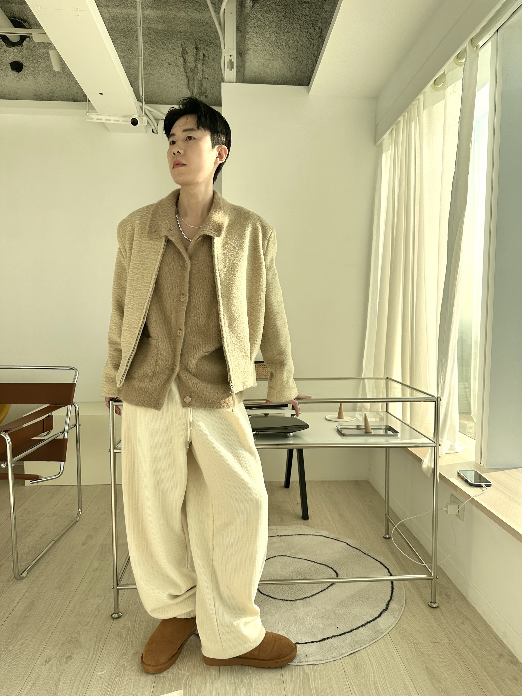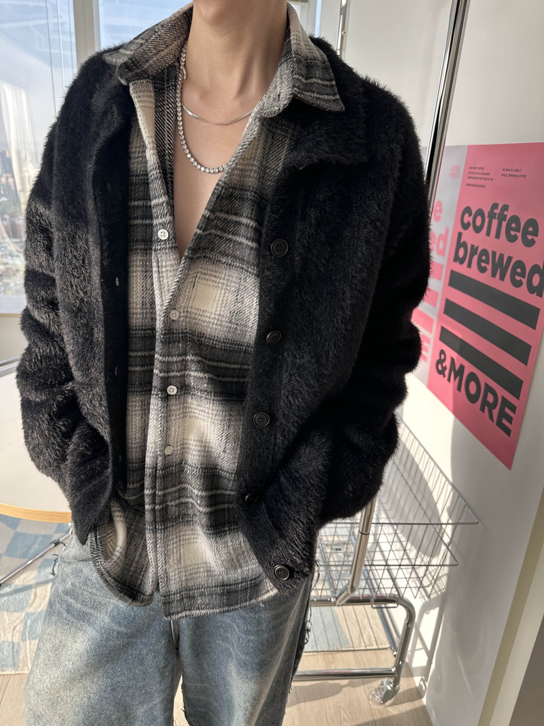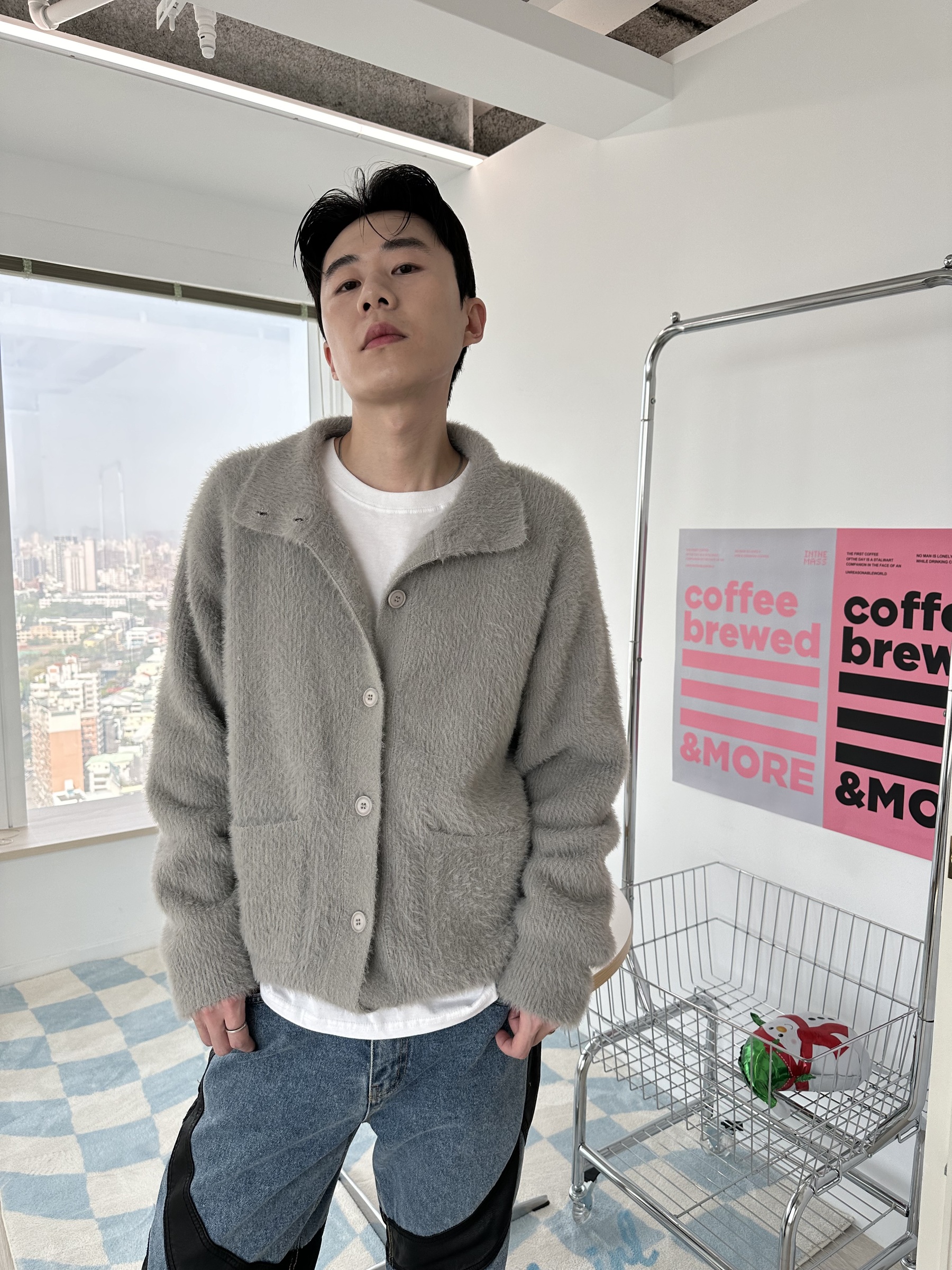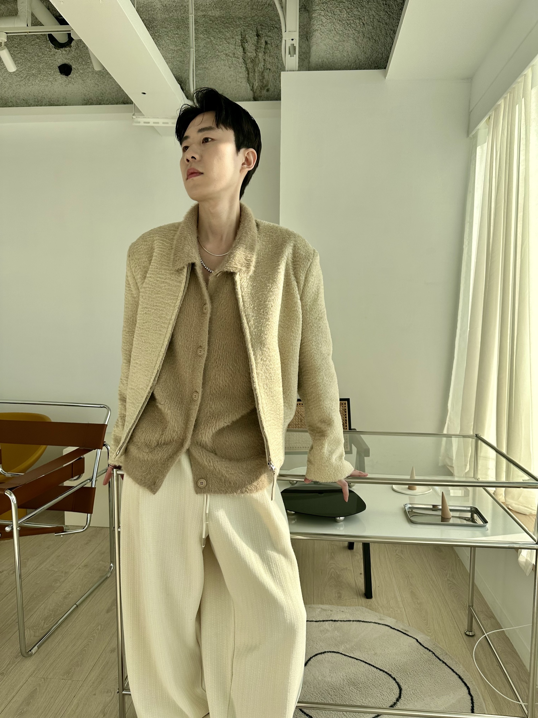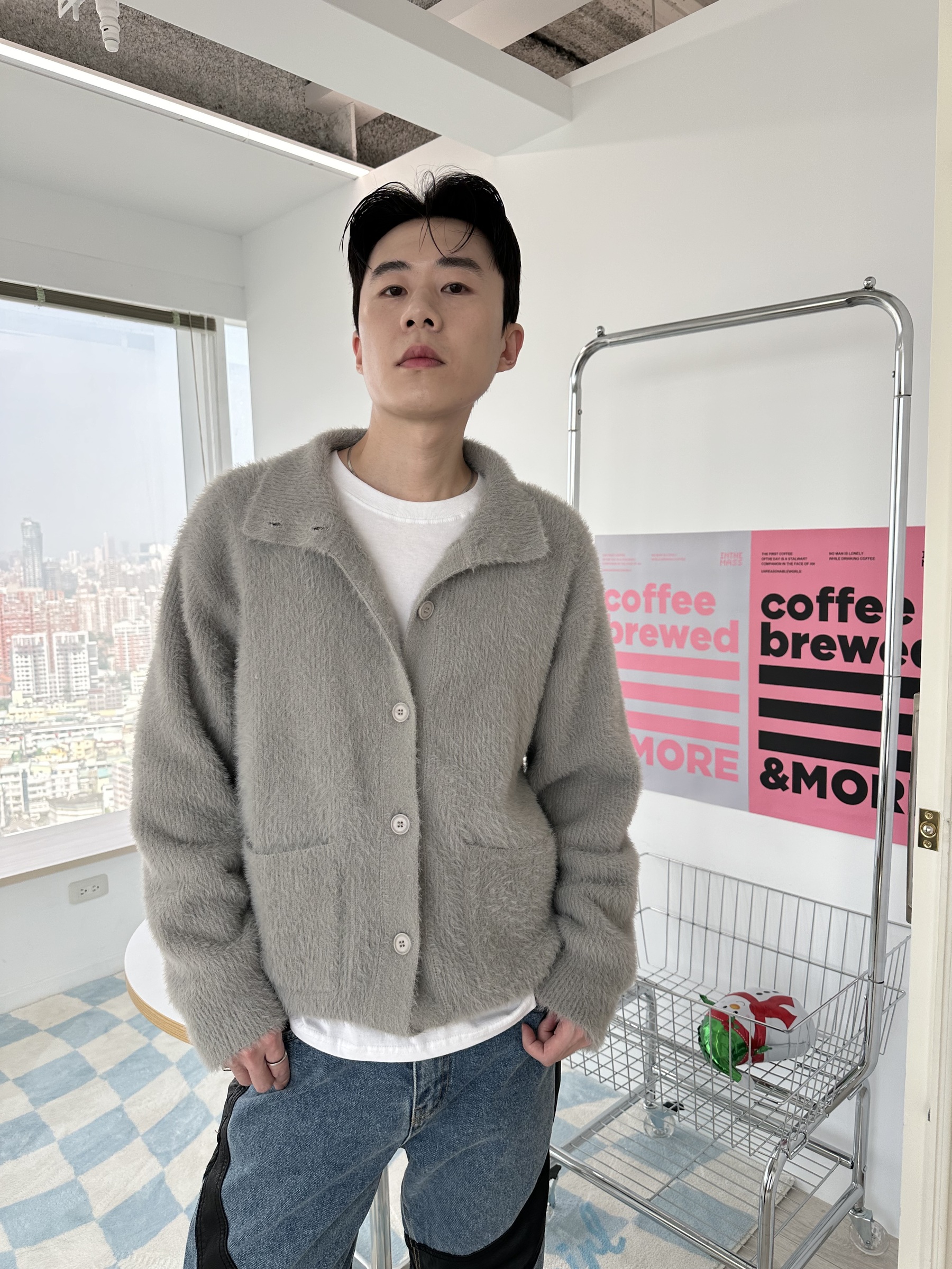 馬海毛布料,不會太厚,台灣日常當個小外套搭配非常好用