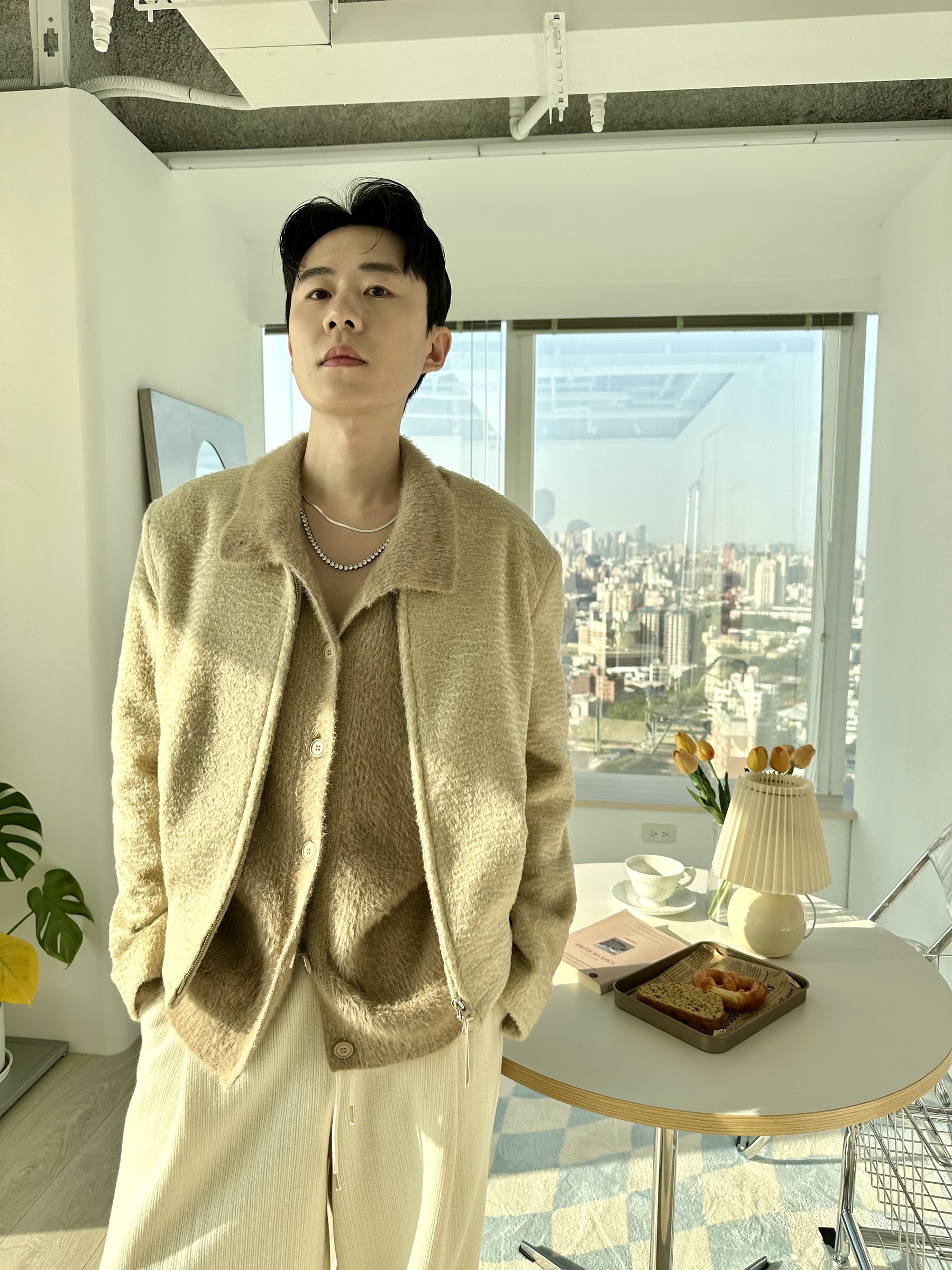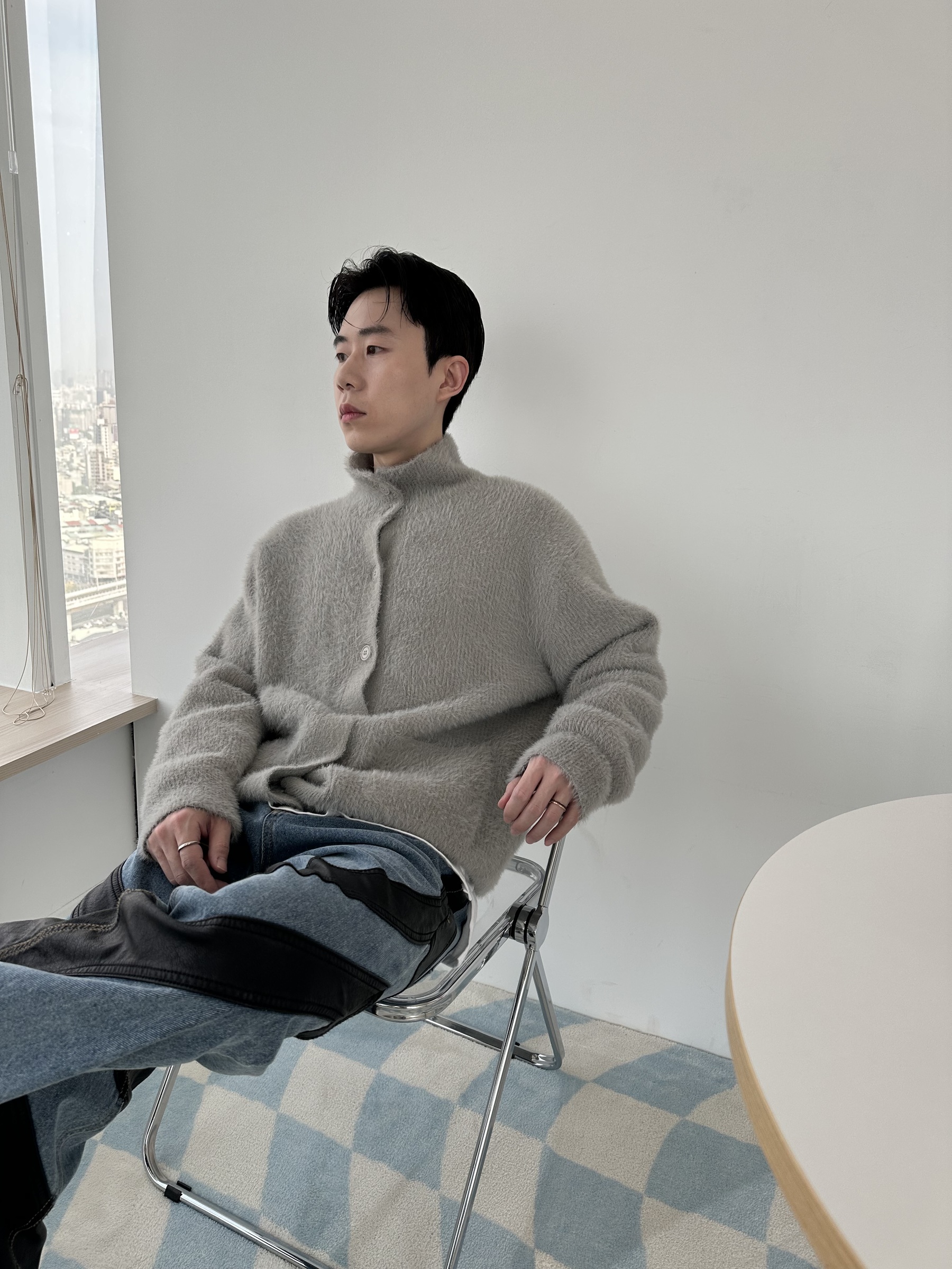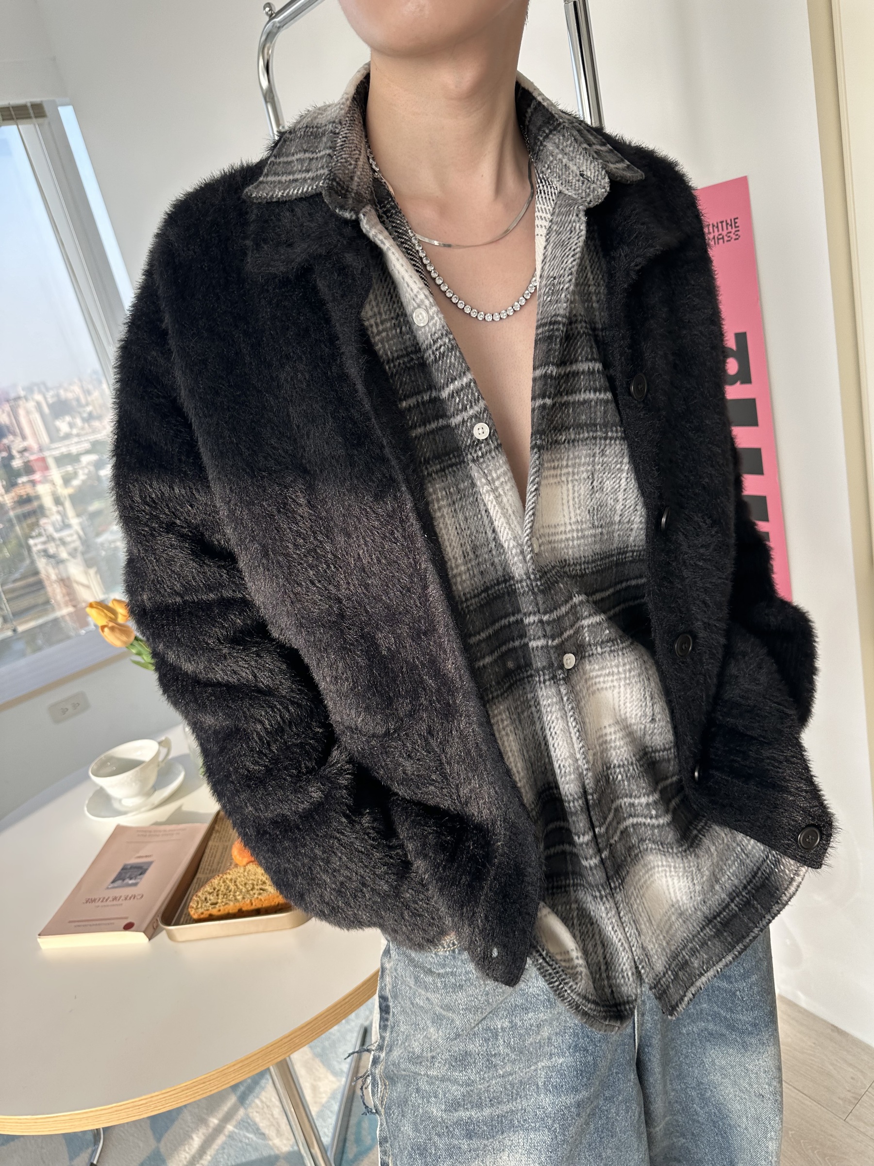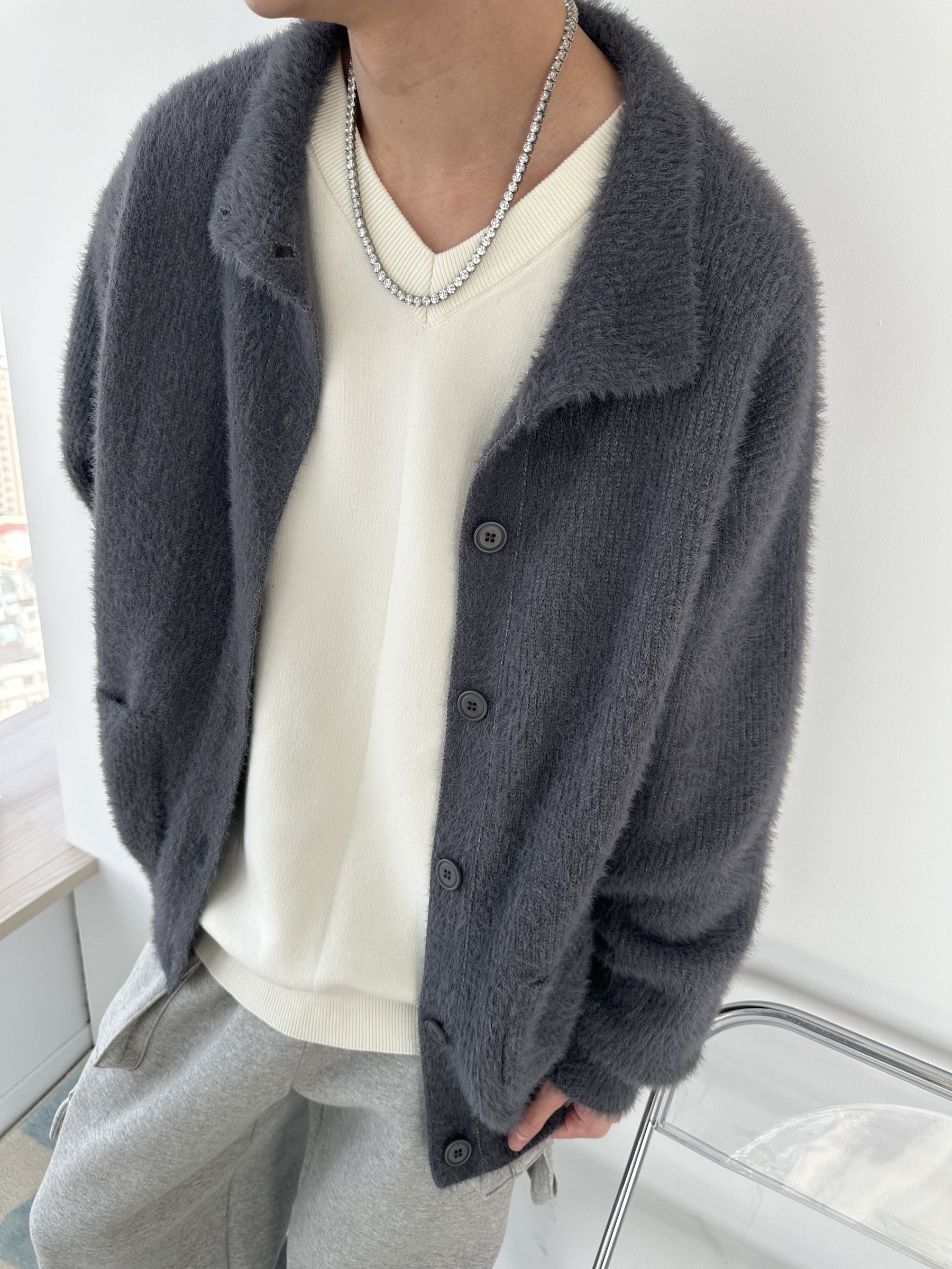 馬海毛布料,不會太厚,台灣日常當個小外套搭配非常好用
