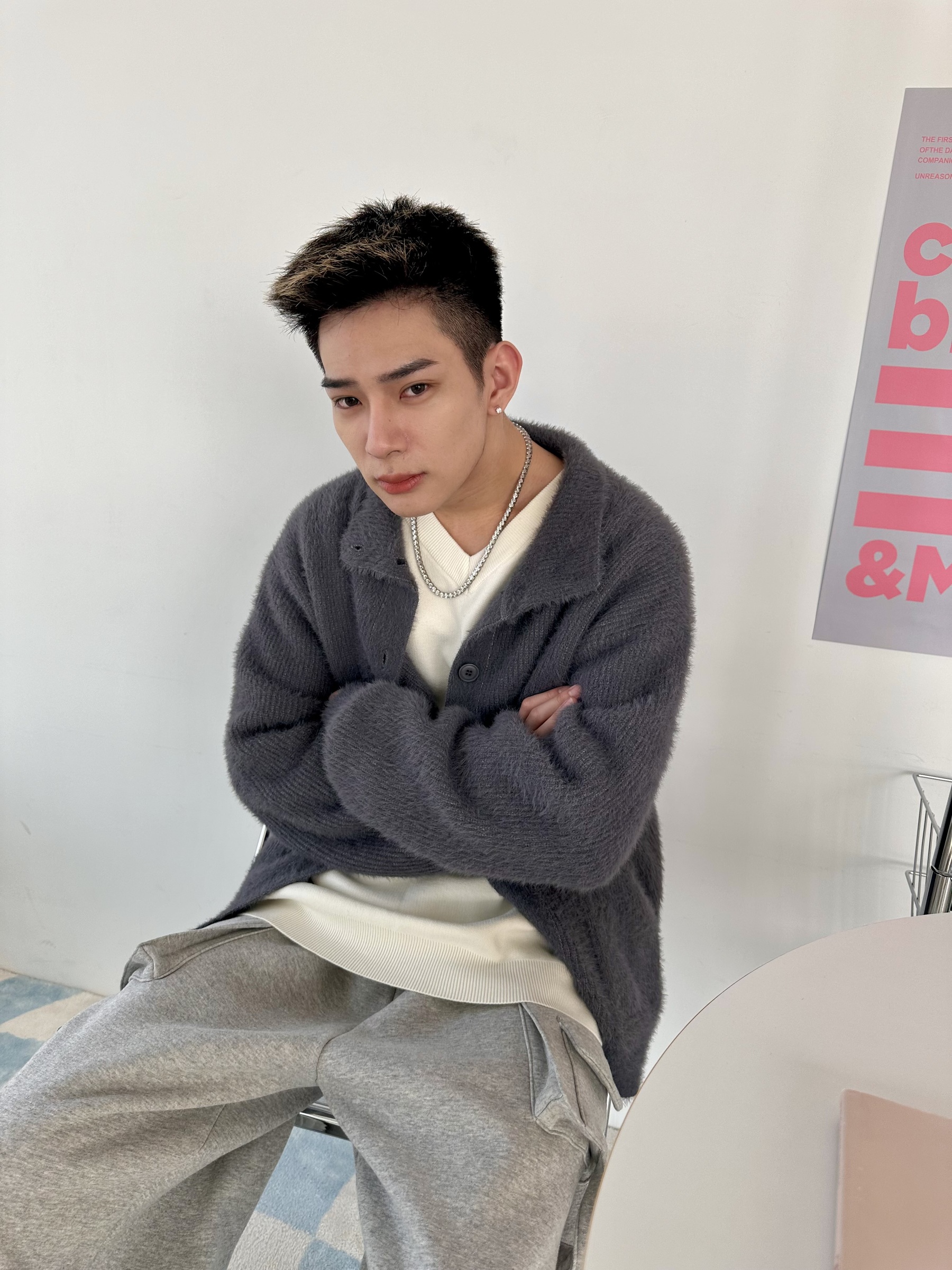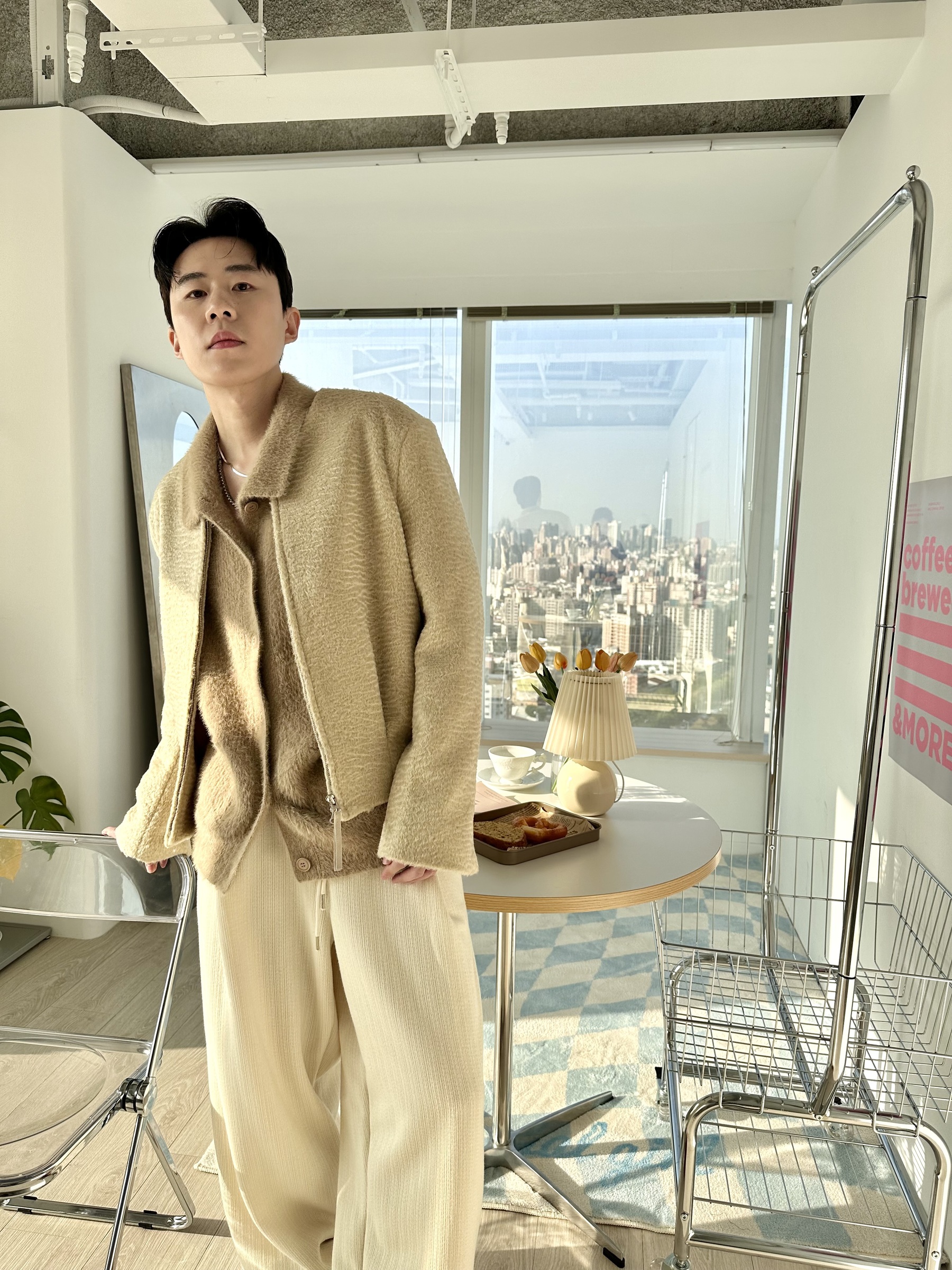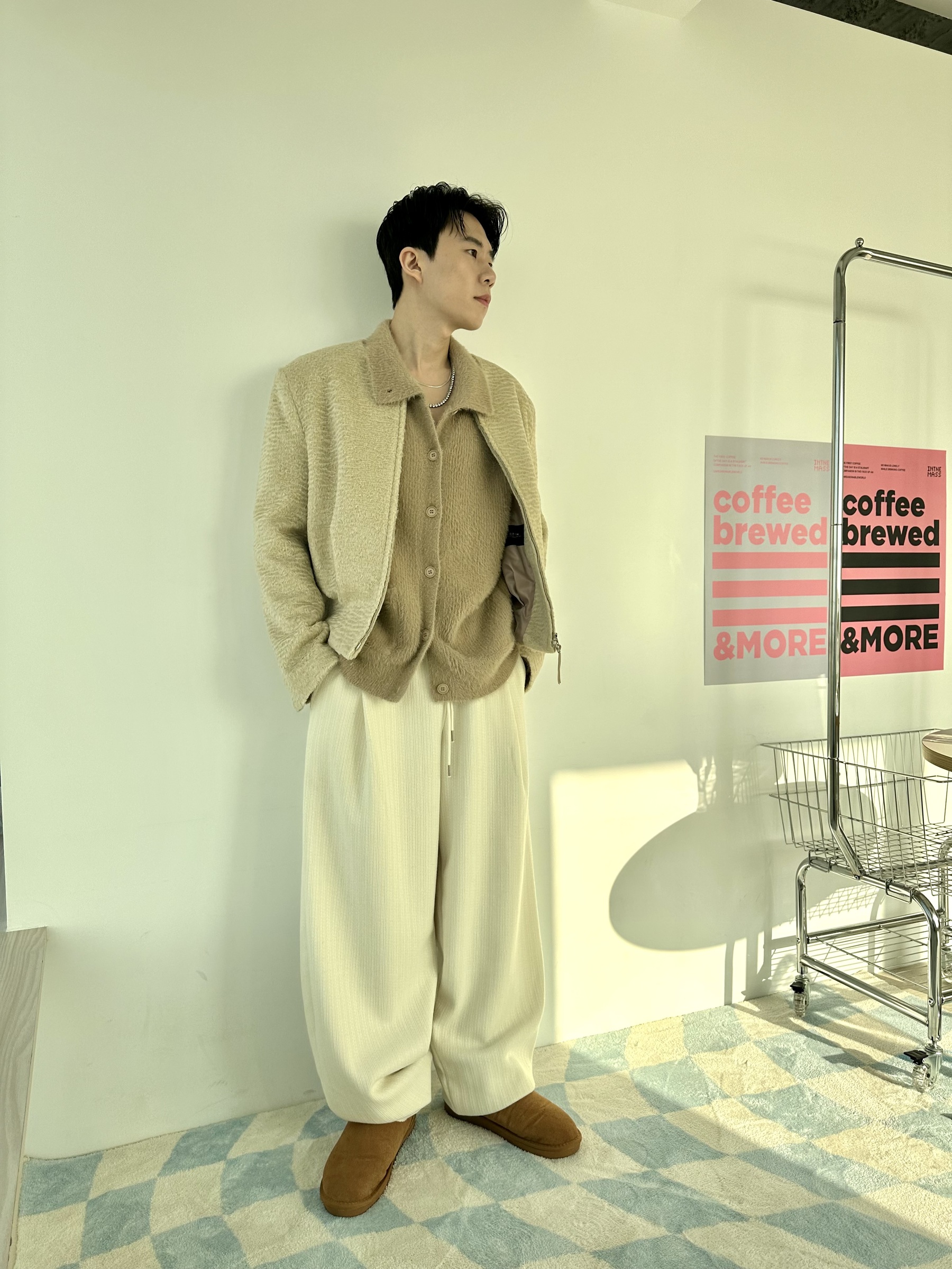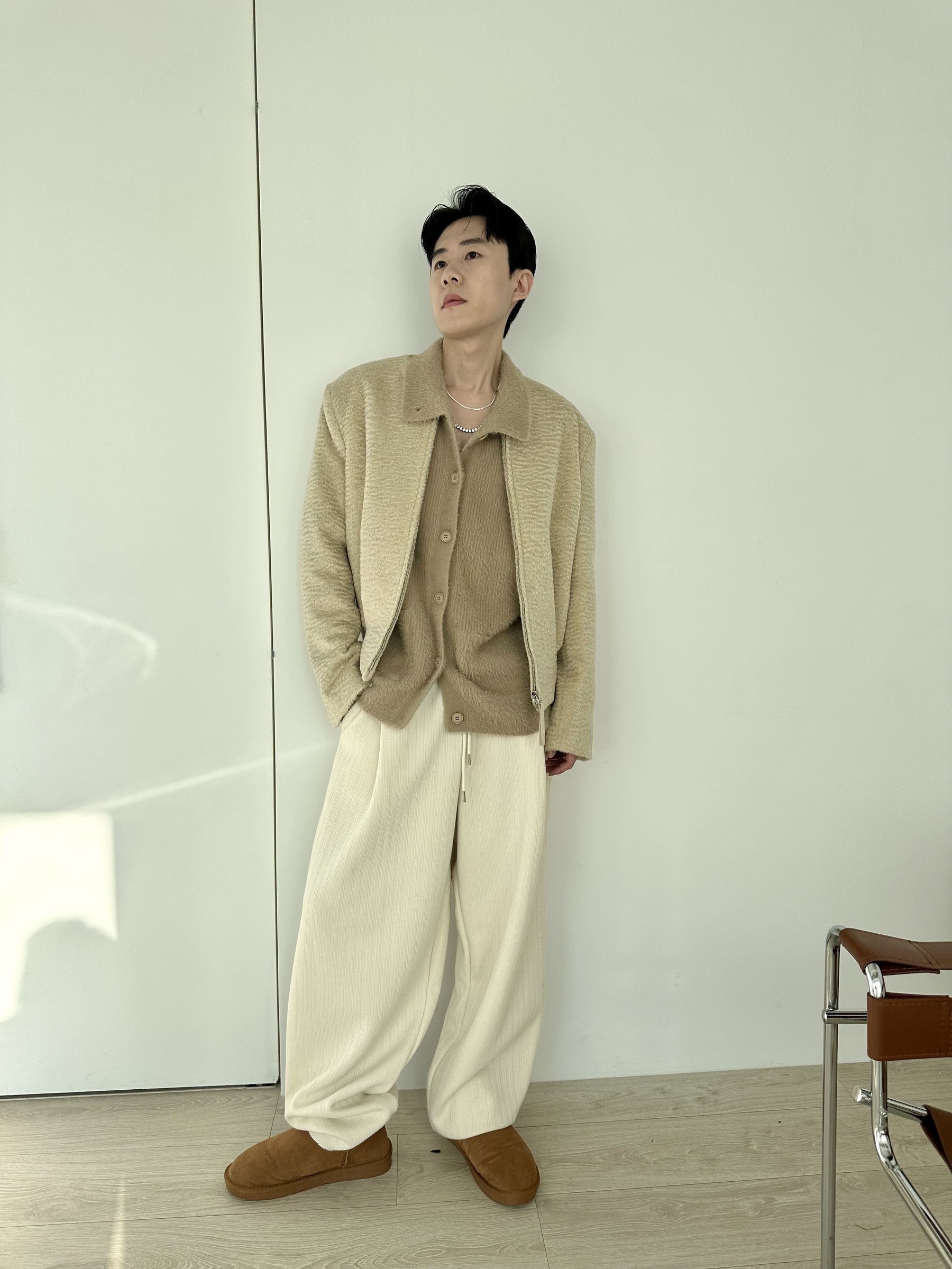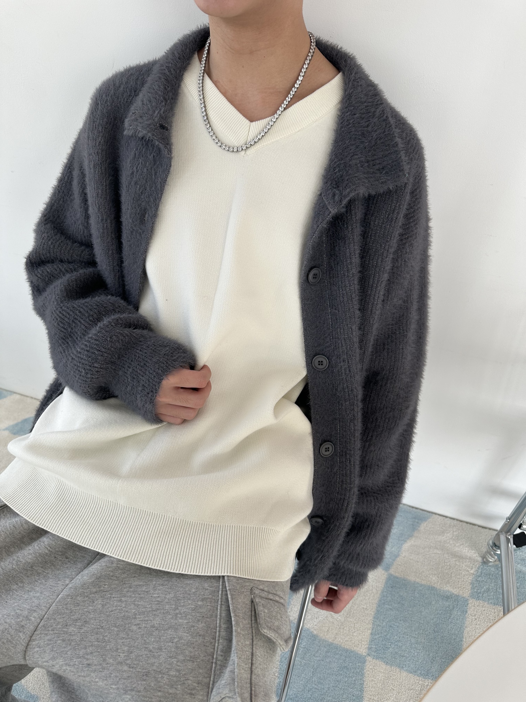 馬海毛布料,不會太厚,台灣日常當個小外套搭配非常好用