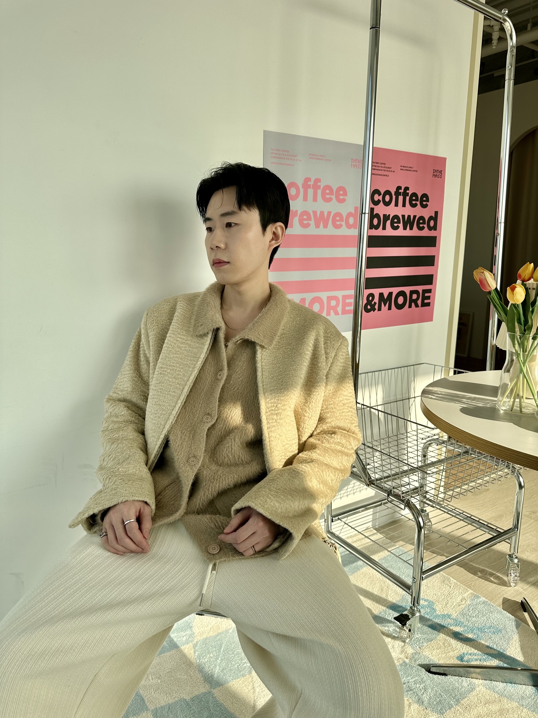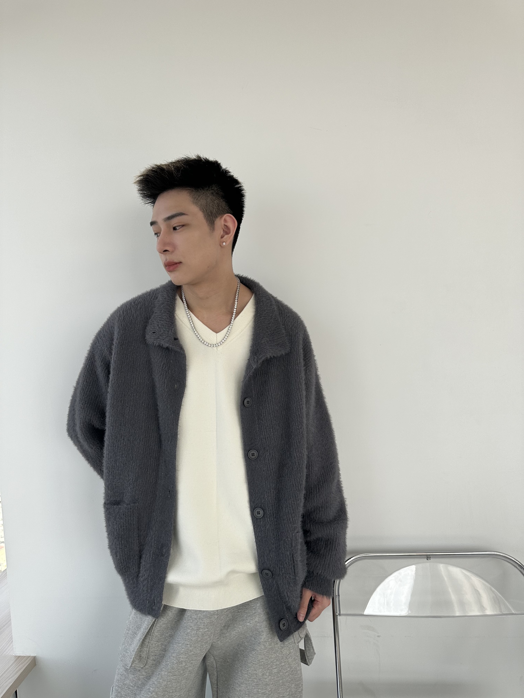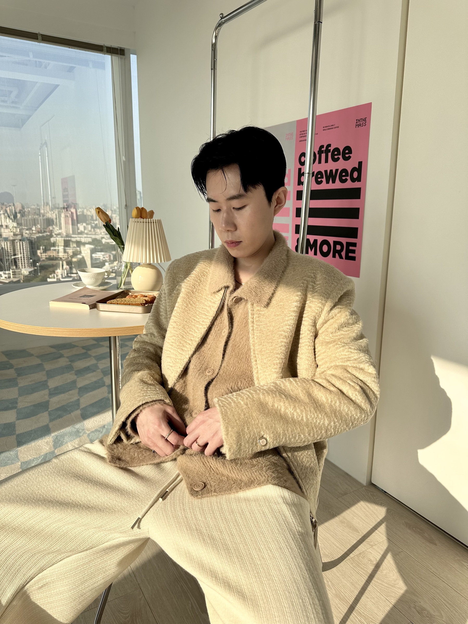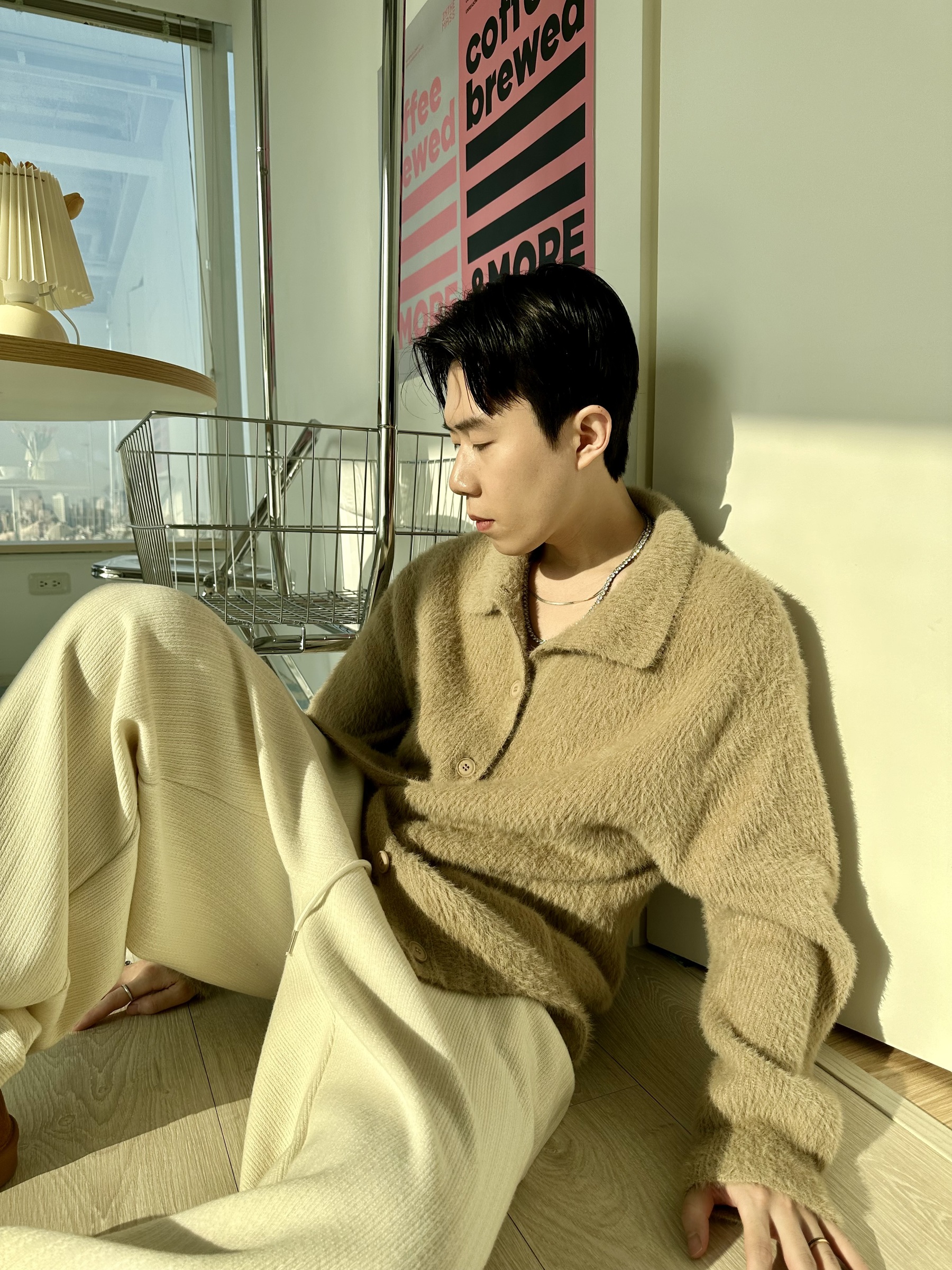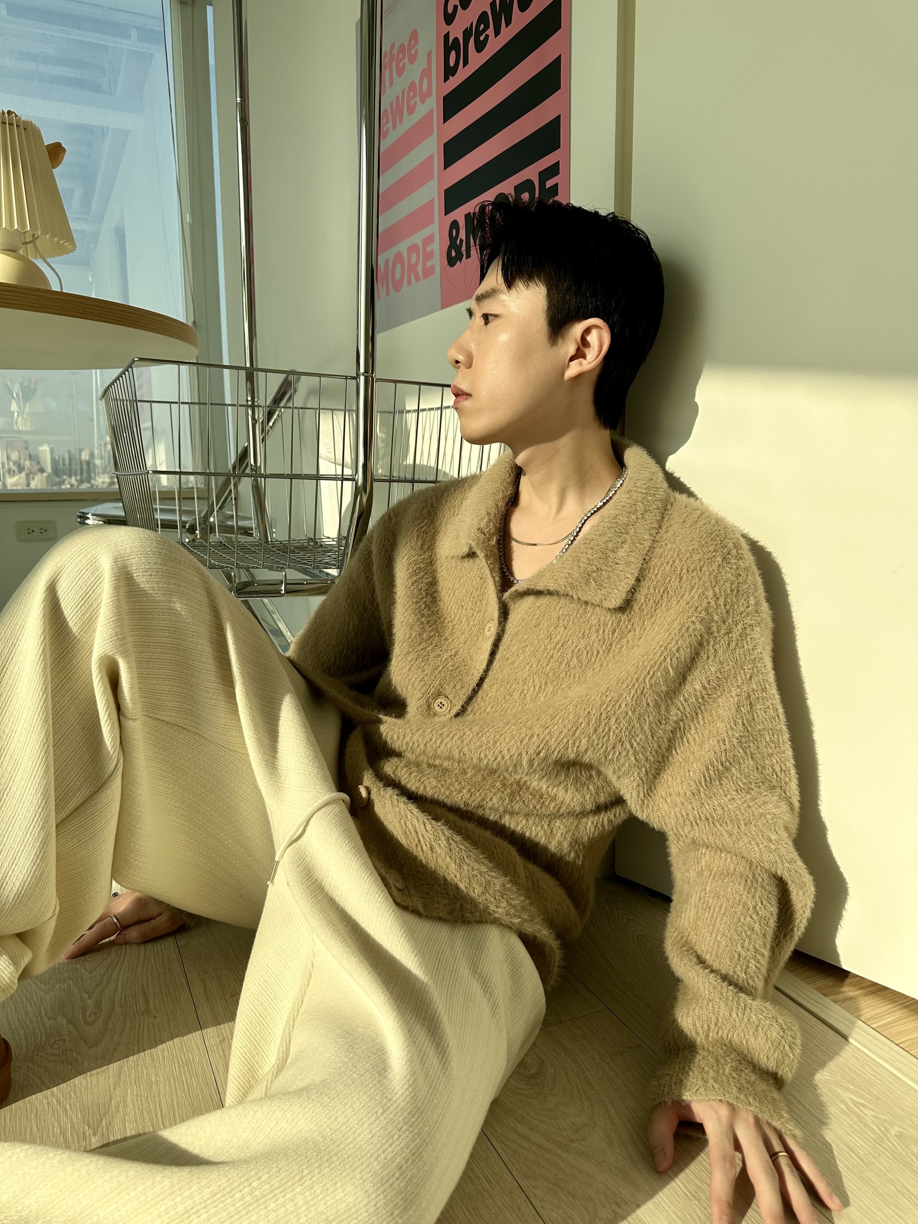 馬海毛布料,不會太厚,台灣日常當個小外套搭配非常好用