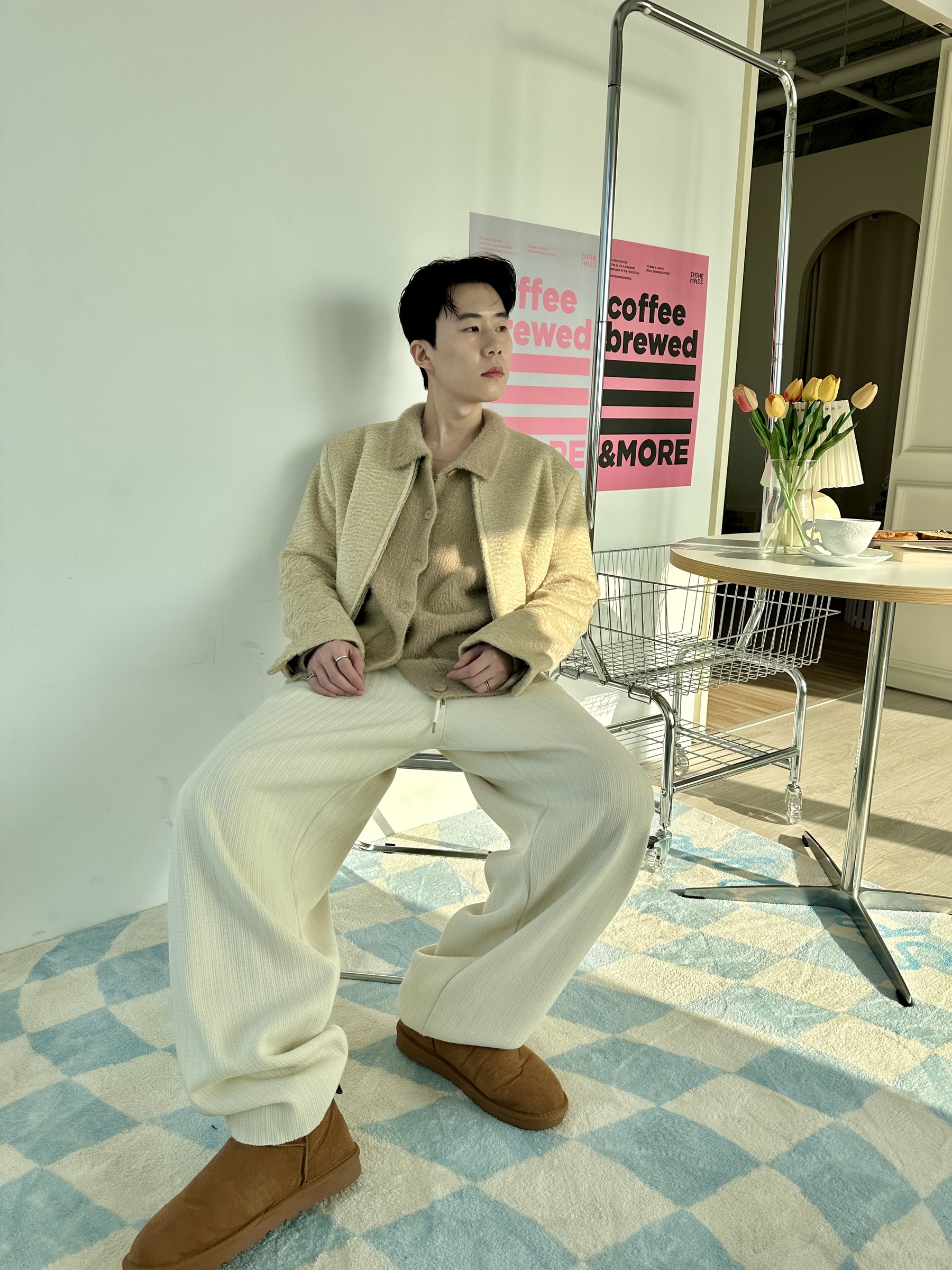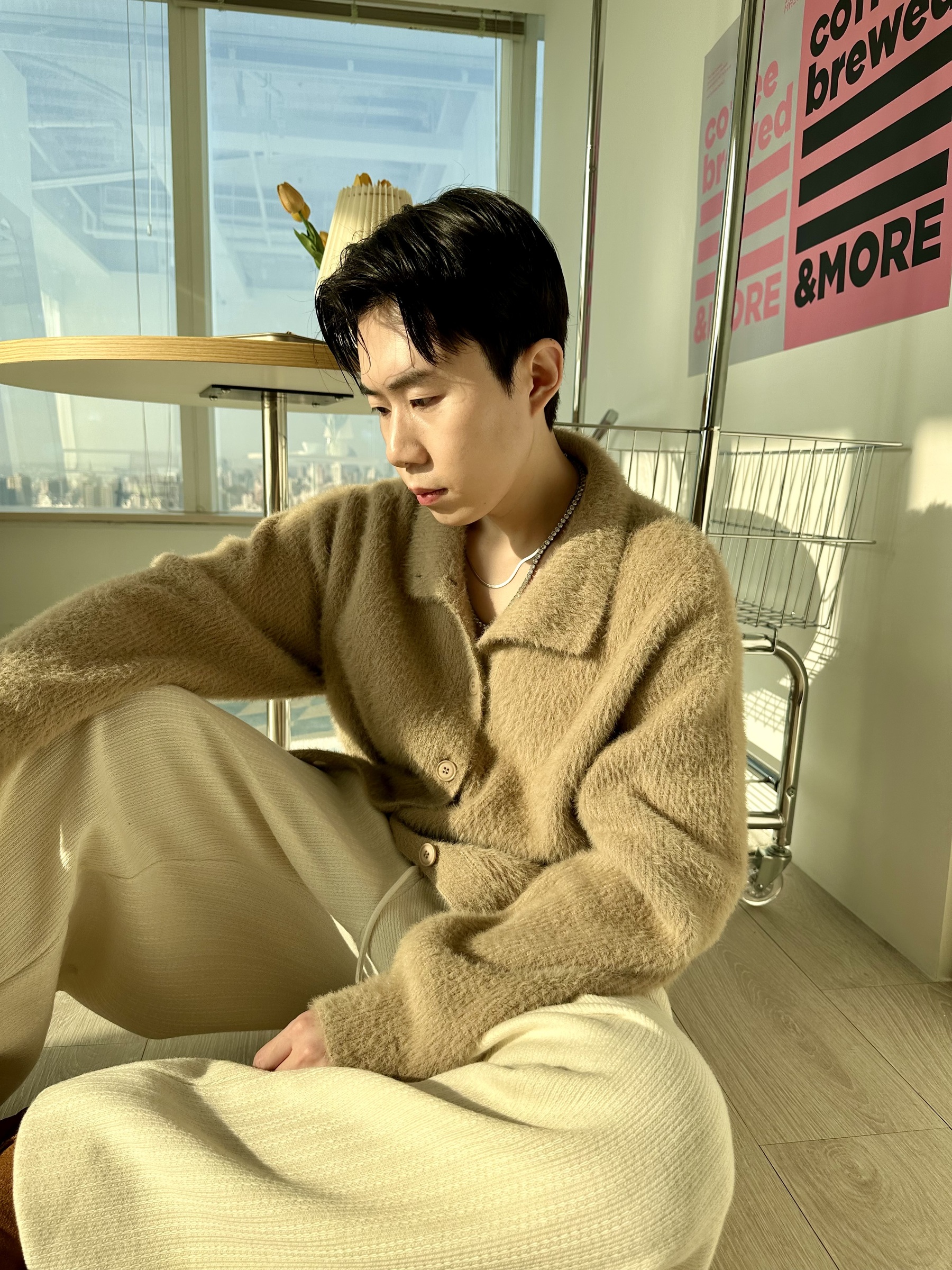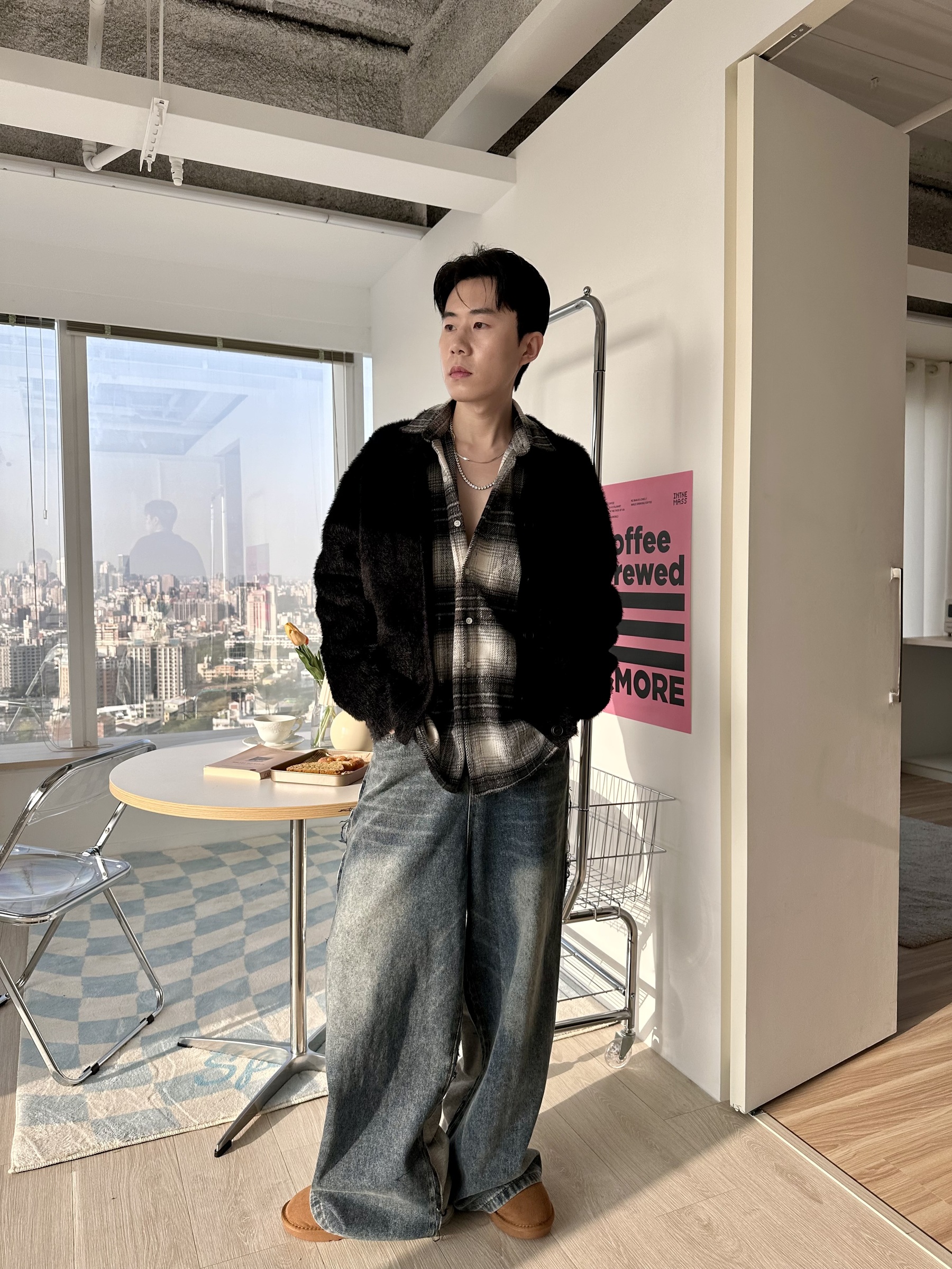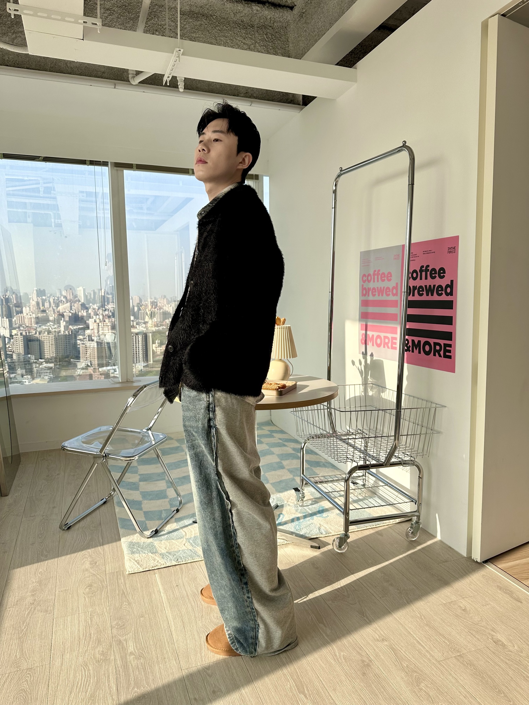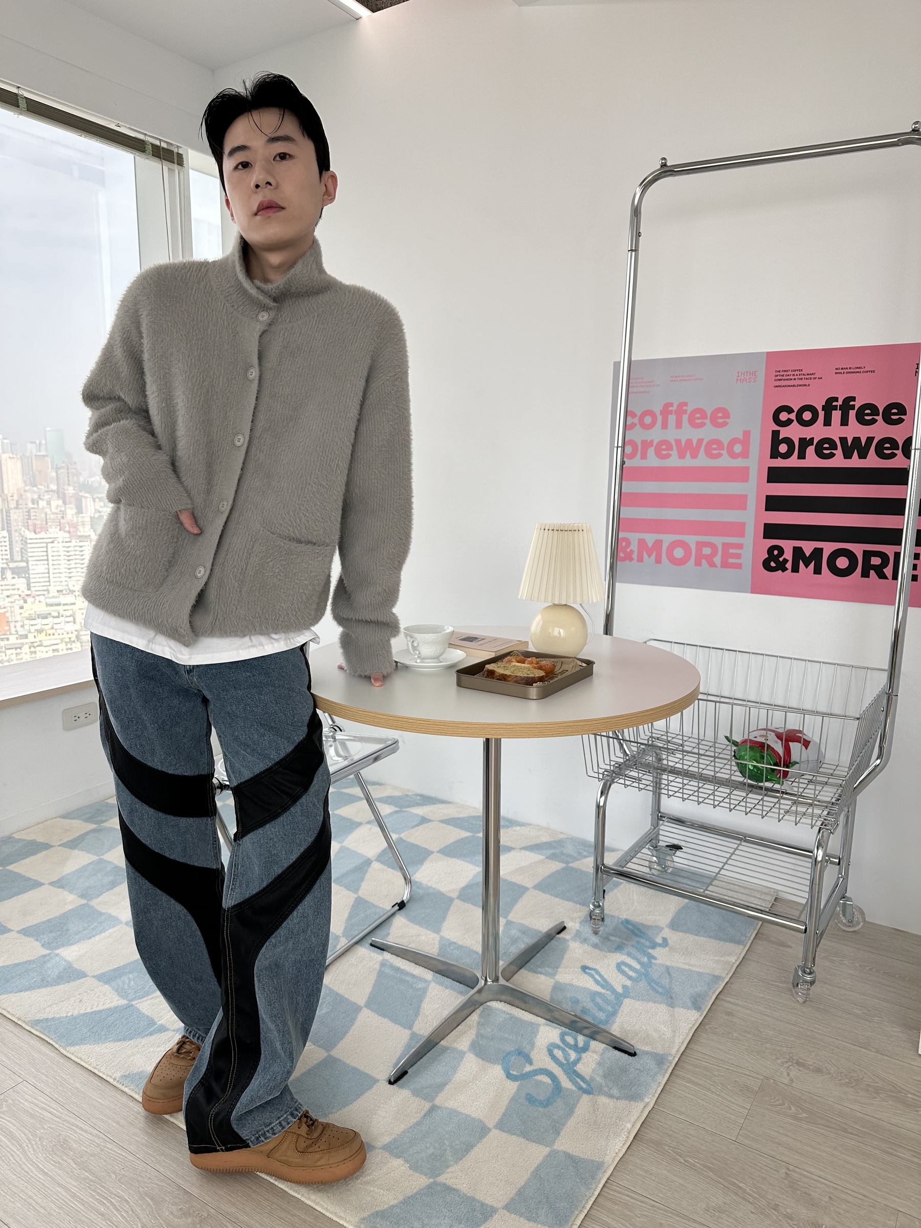 馬海毛布料,不會太厚,台灣日常當個小外套搭配非常好用