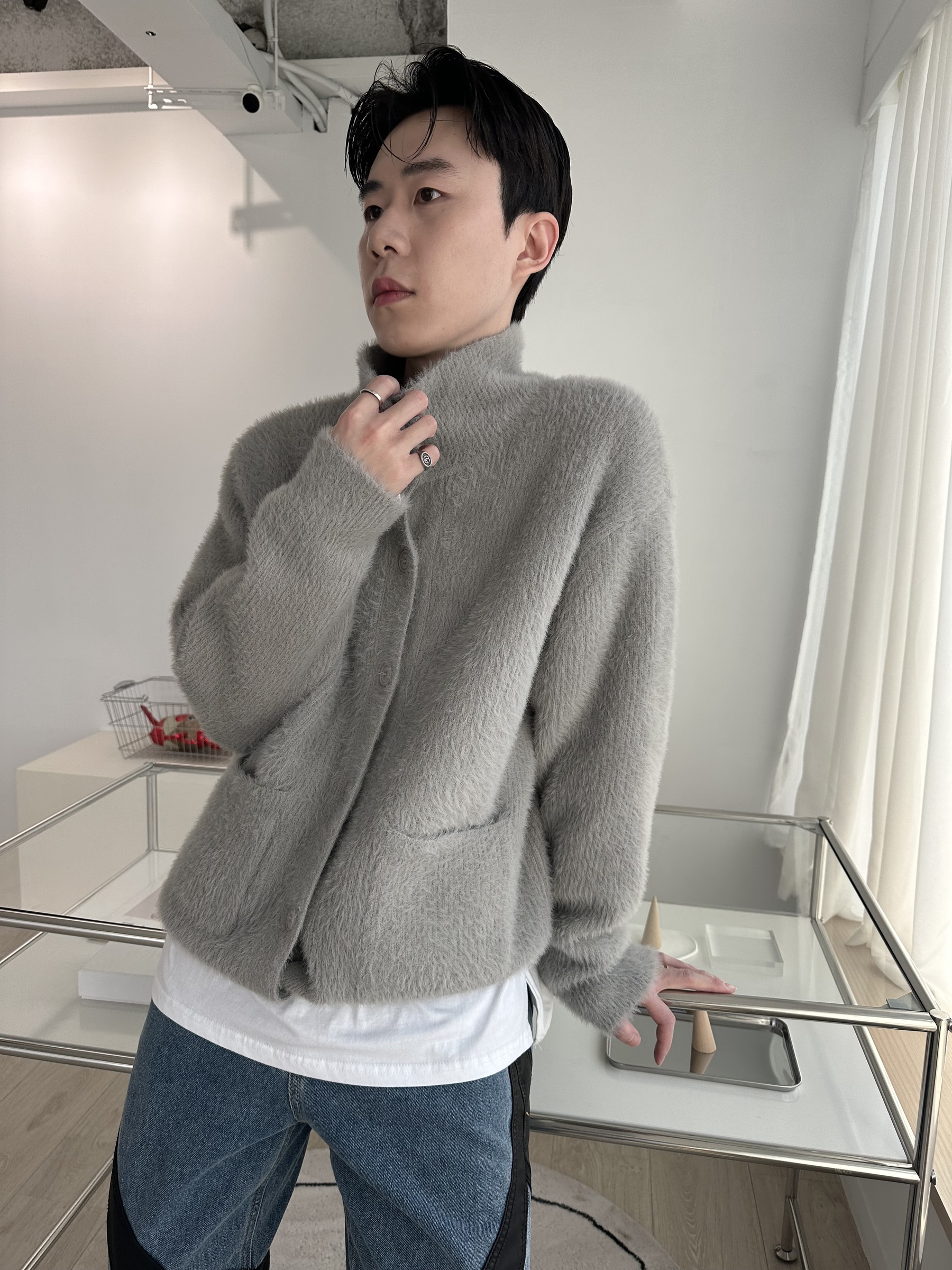 鈕扣高領馬海毛罩衫 – 田兄BroTin