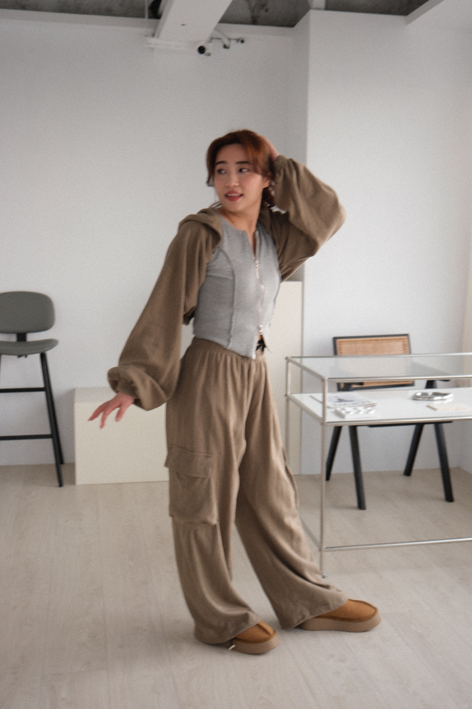 中線拉鍊可以雙開,上衣的剪裁類似馬甲的修身形狀