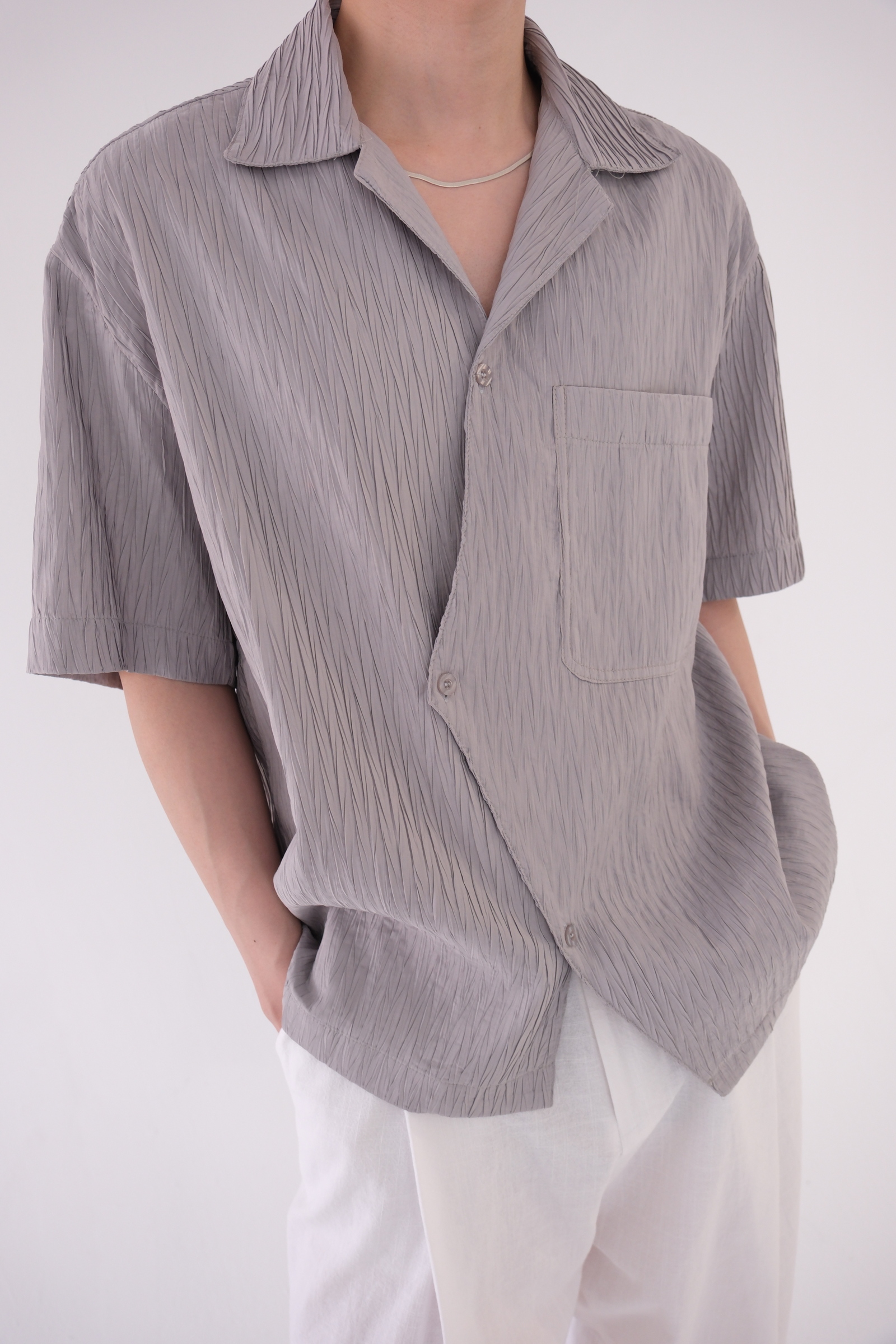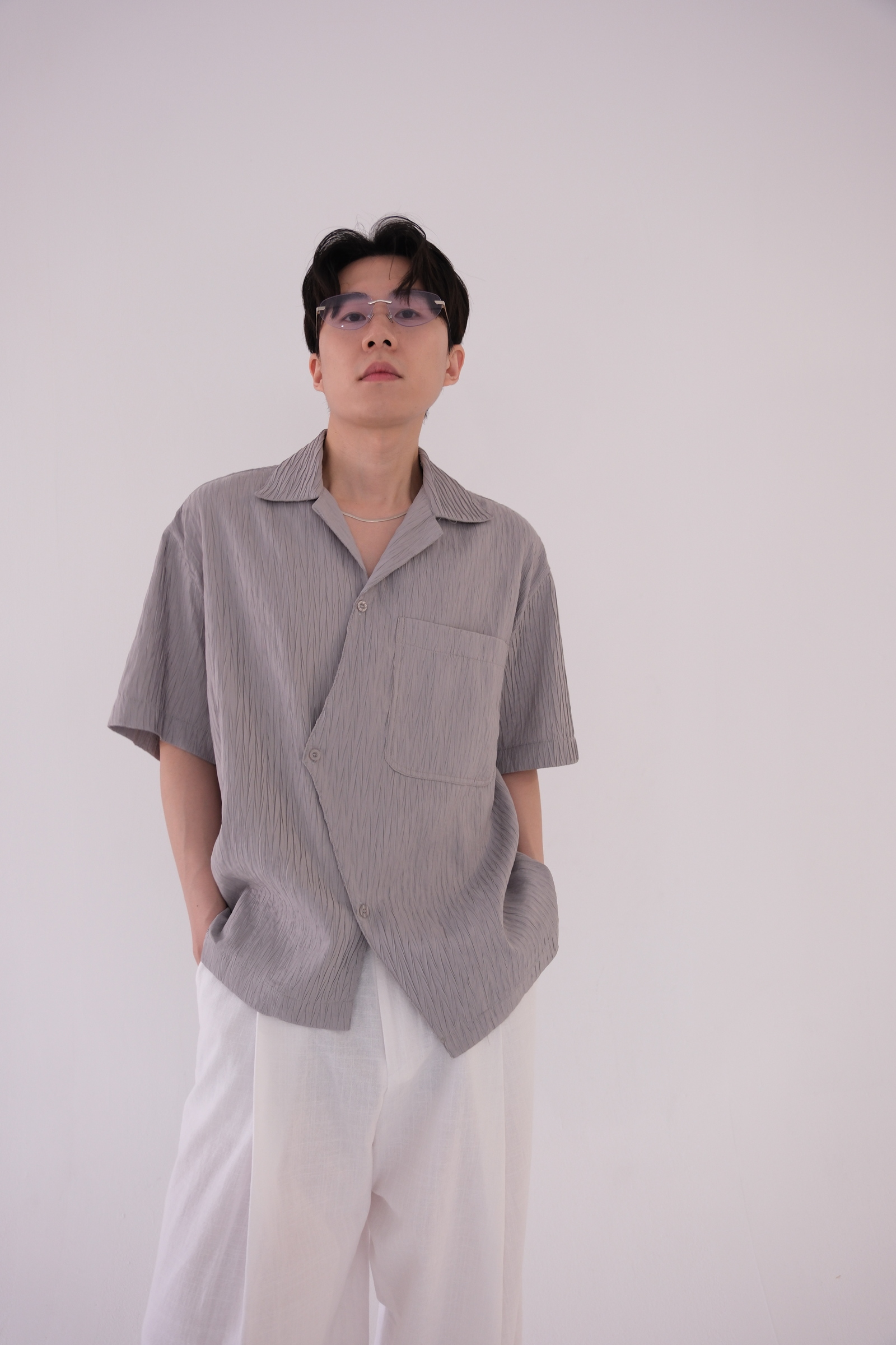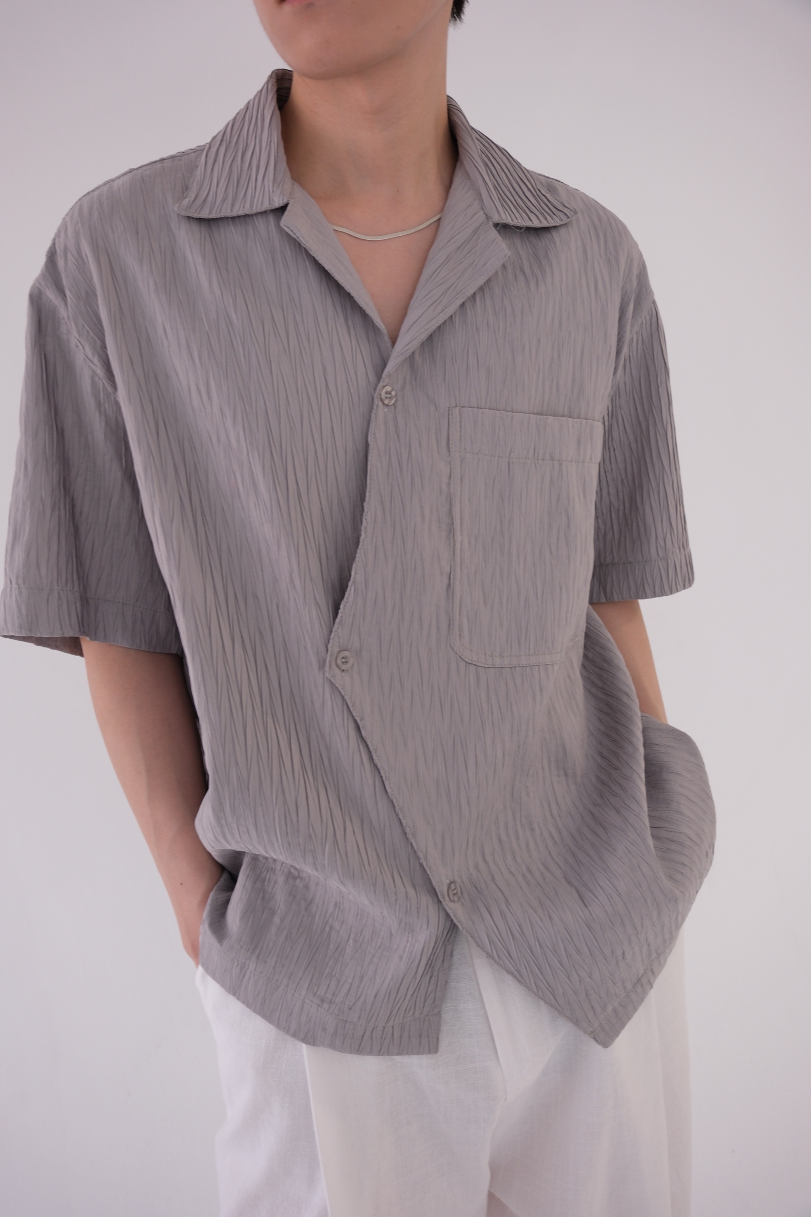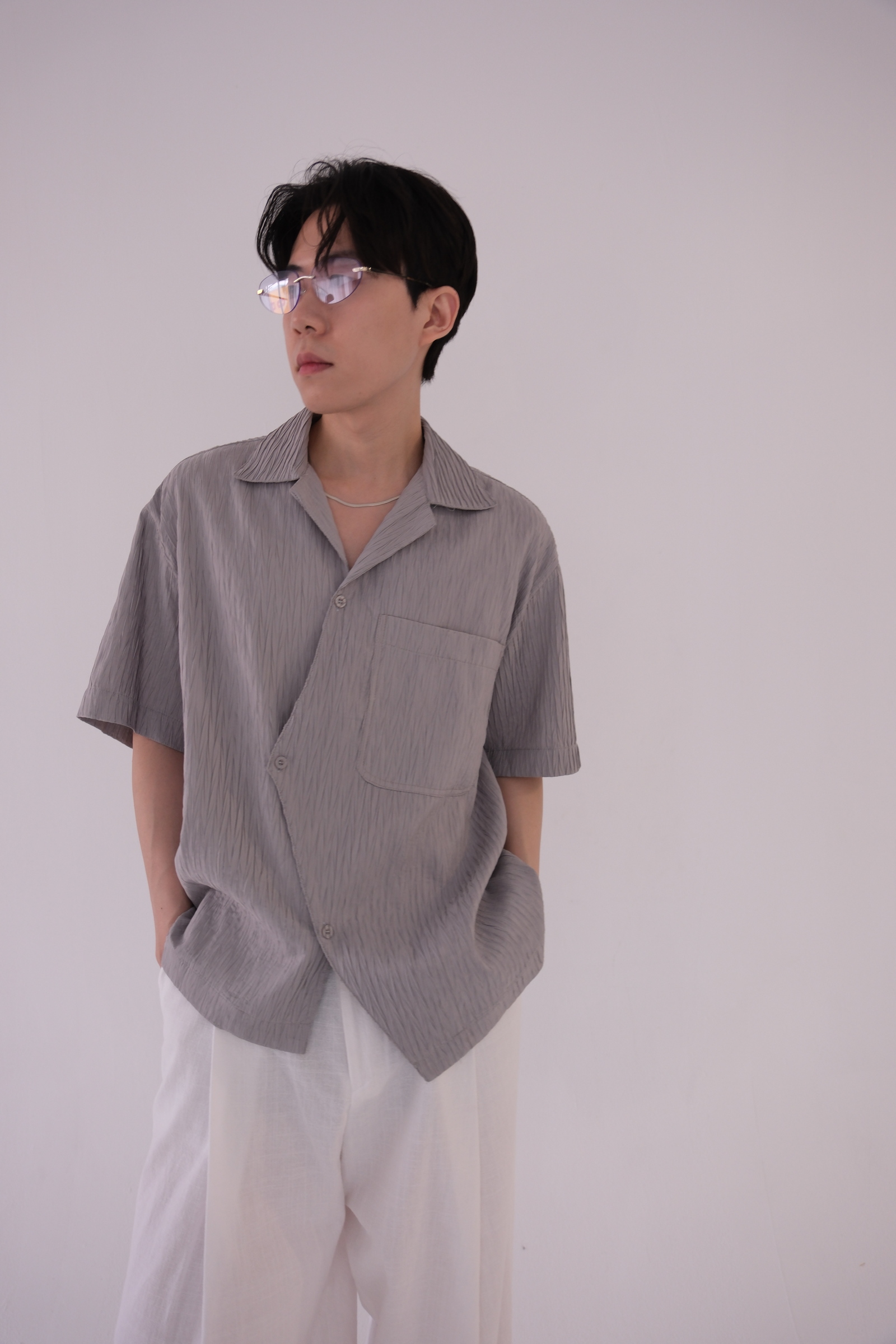 不對稱的襯衫設計,讓單穿一件襯衫也不會太無聊