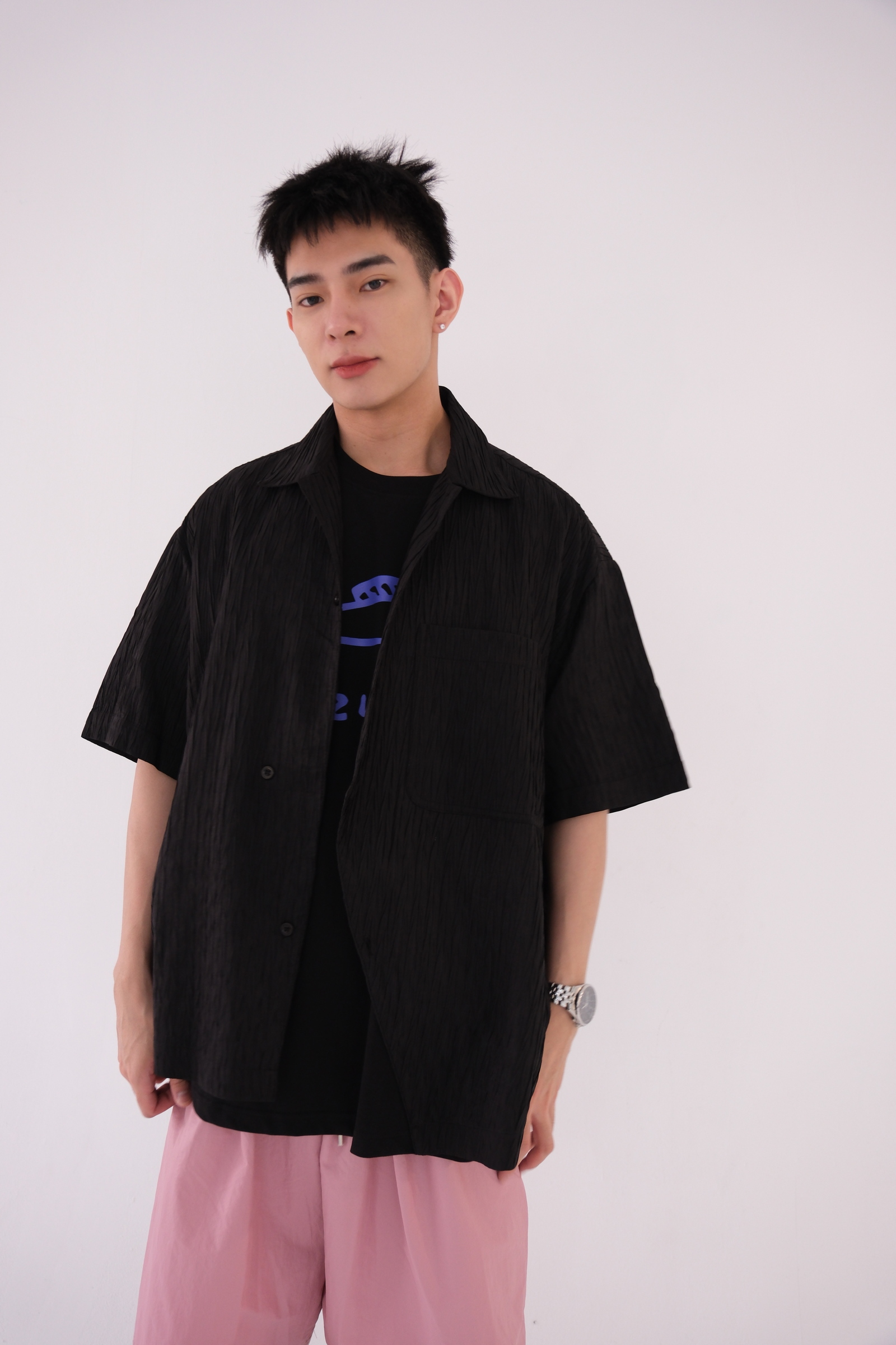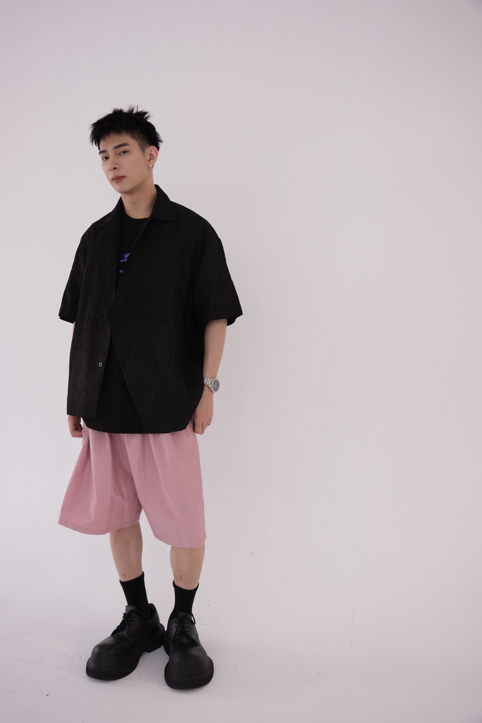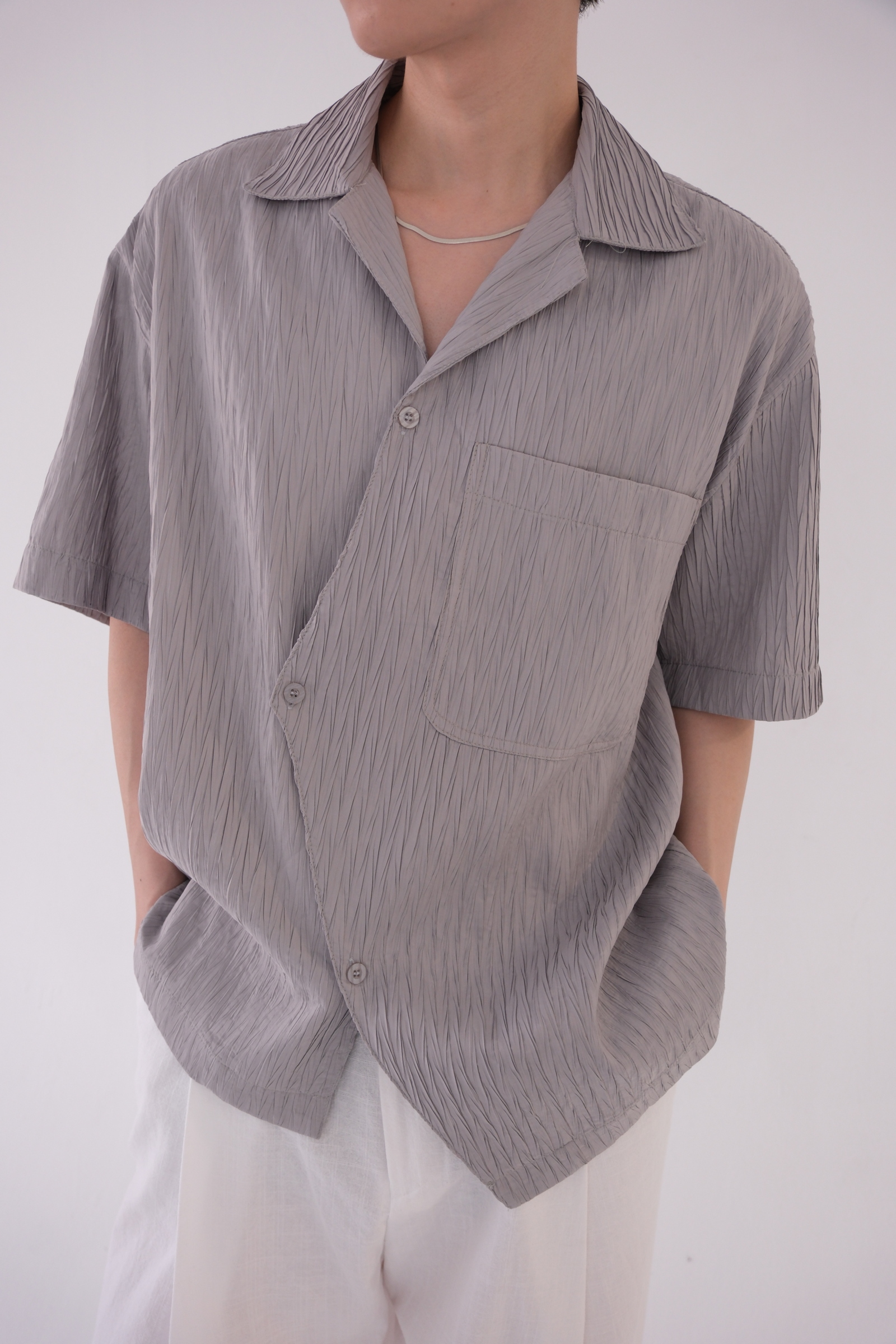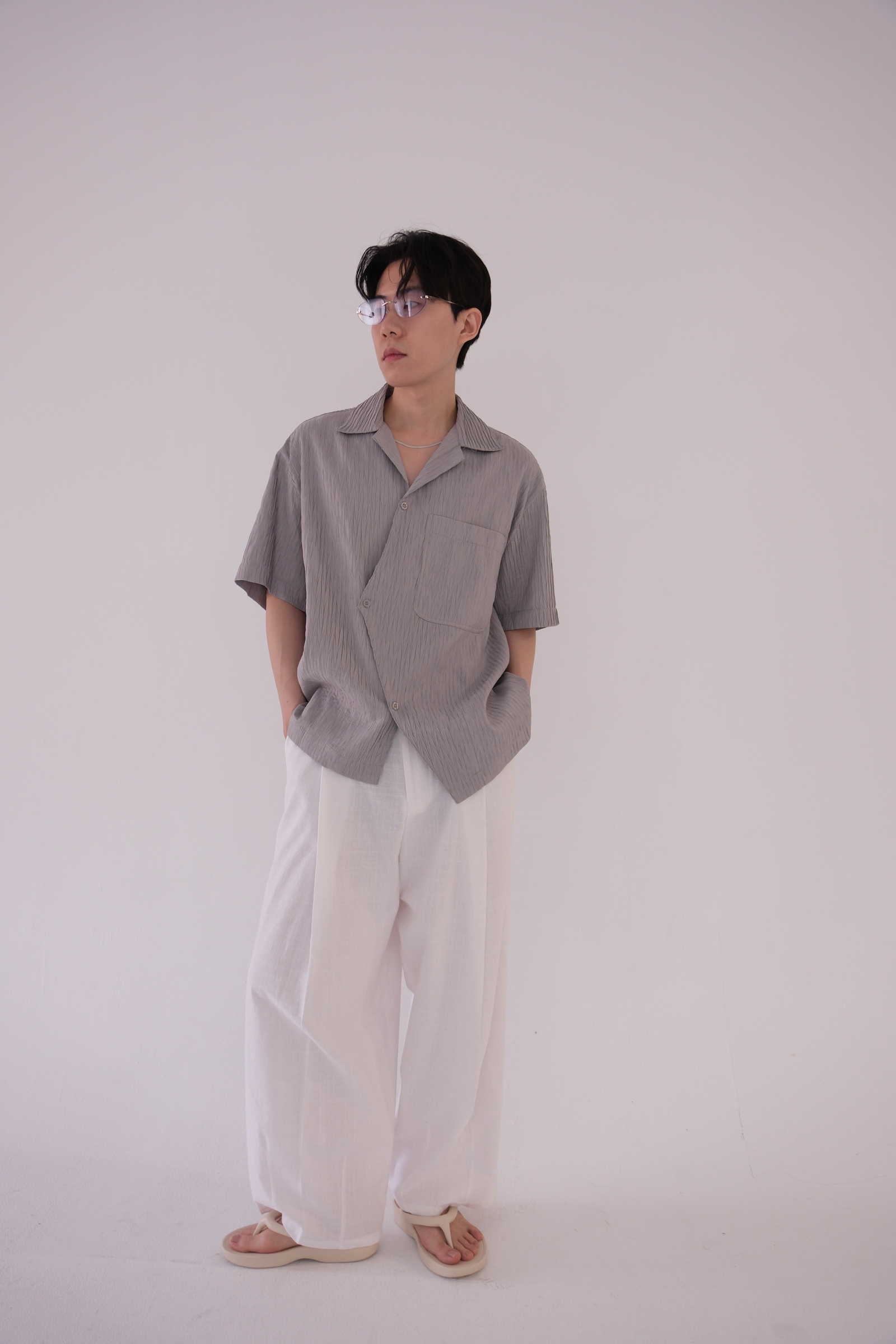 不對稱的襯衫設計,讓單穿一件襯衫也不會太無聊