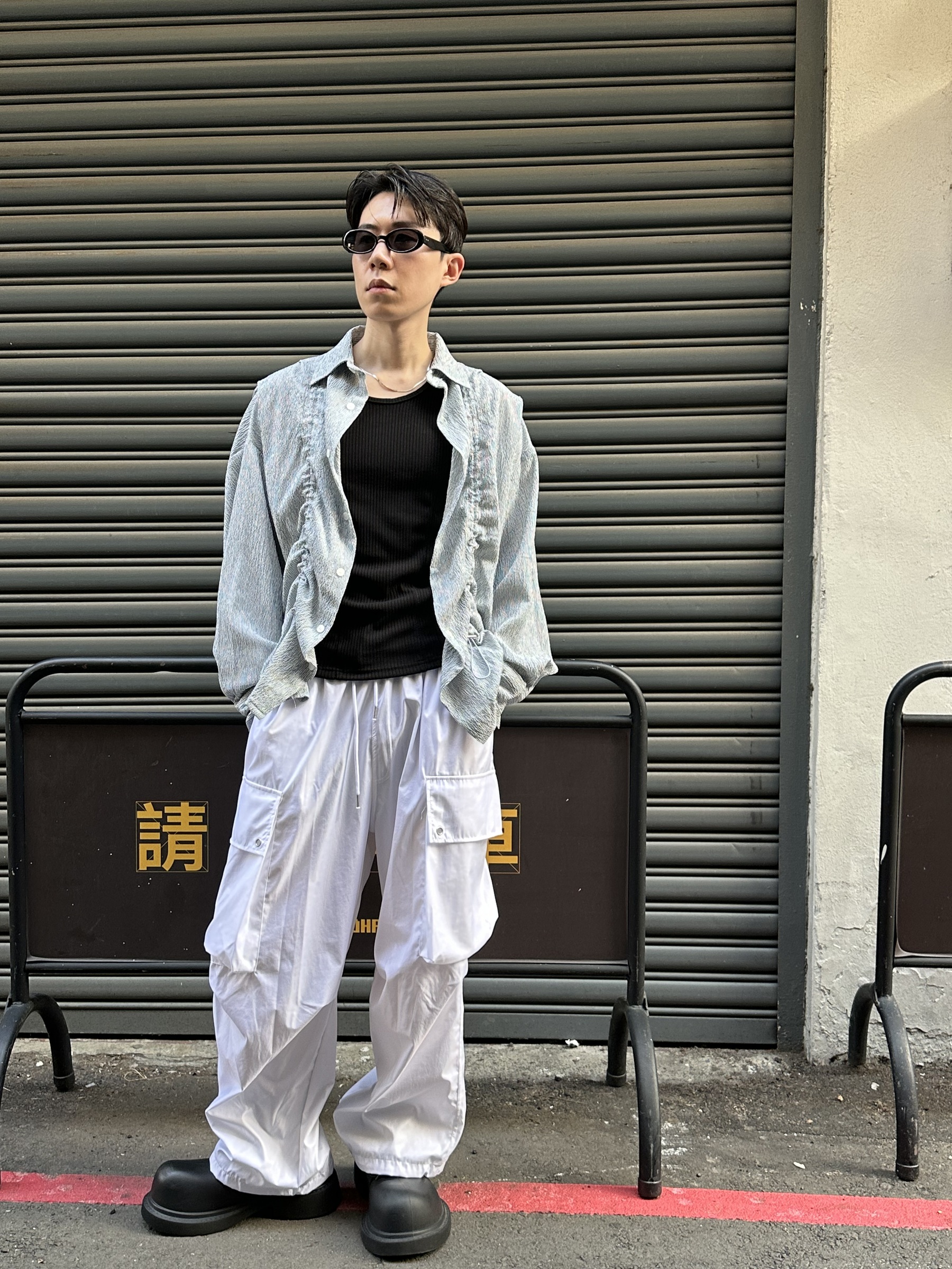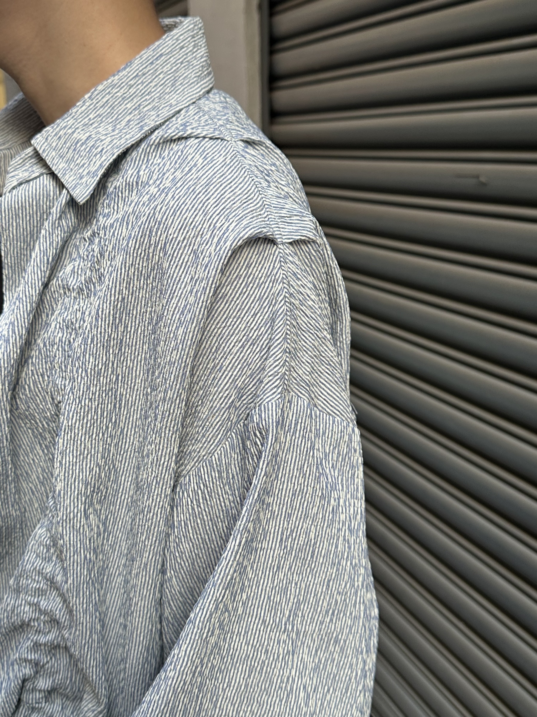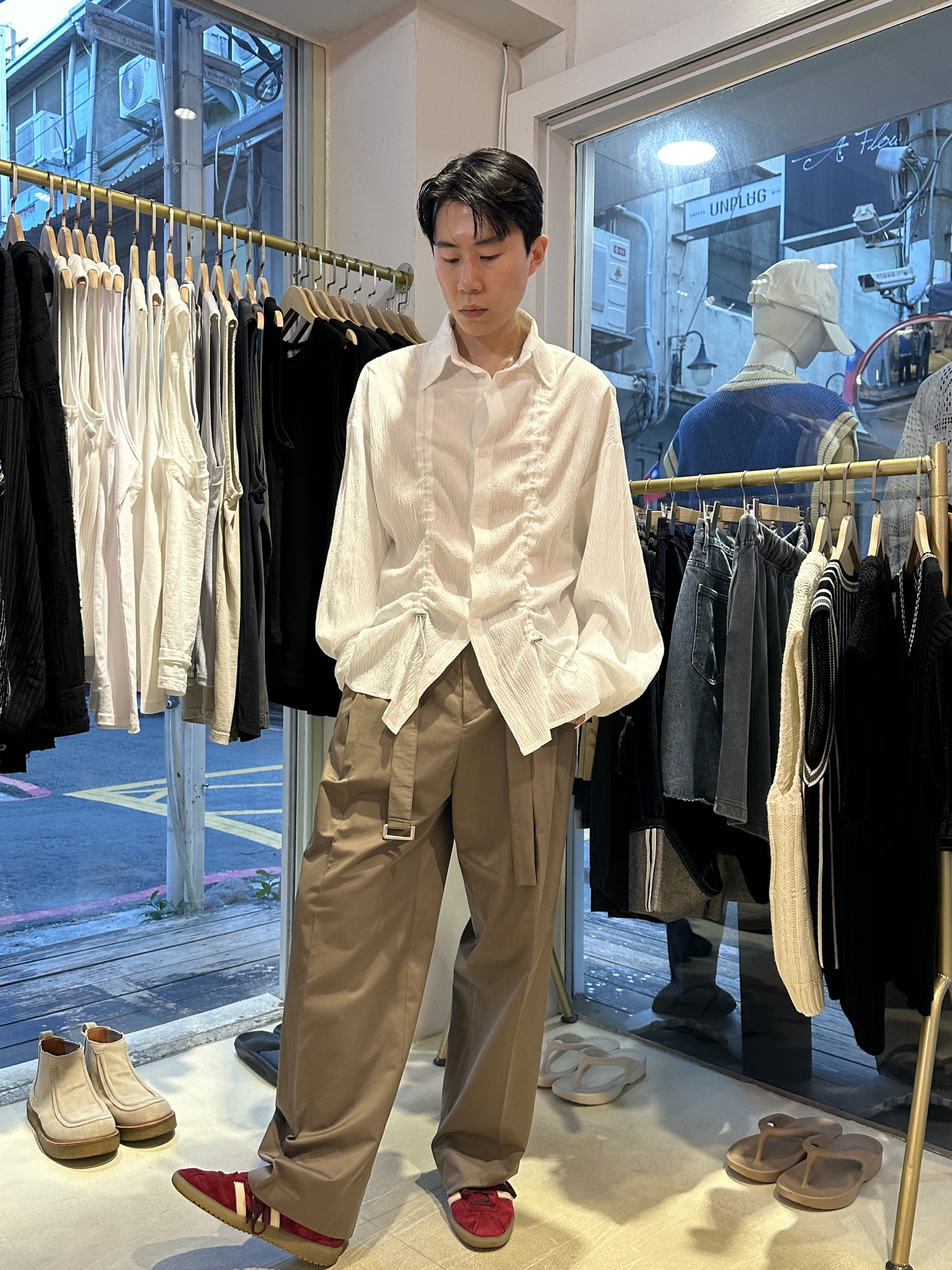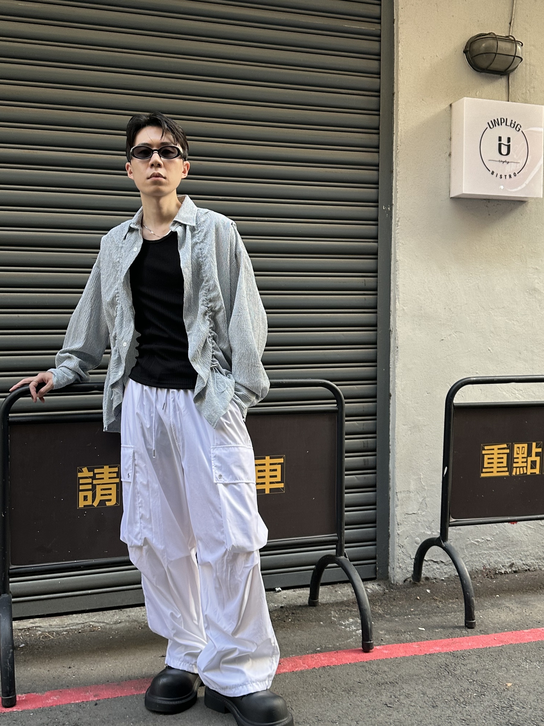 胸前有做兩條抽繩的設計,可以使襯衫蜷縮起來
