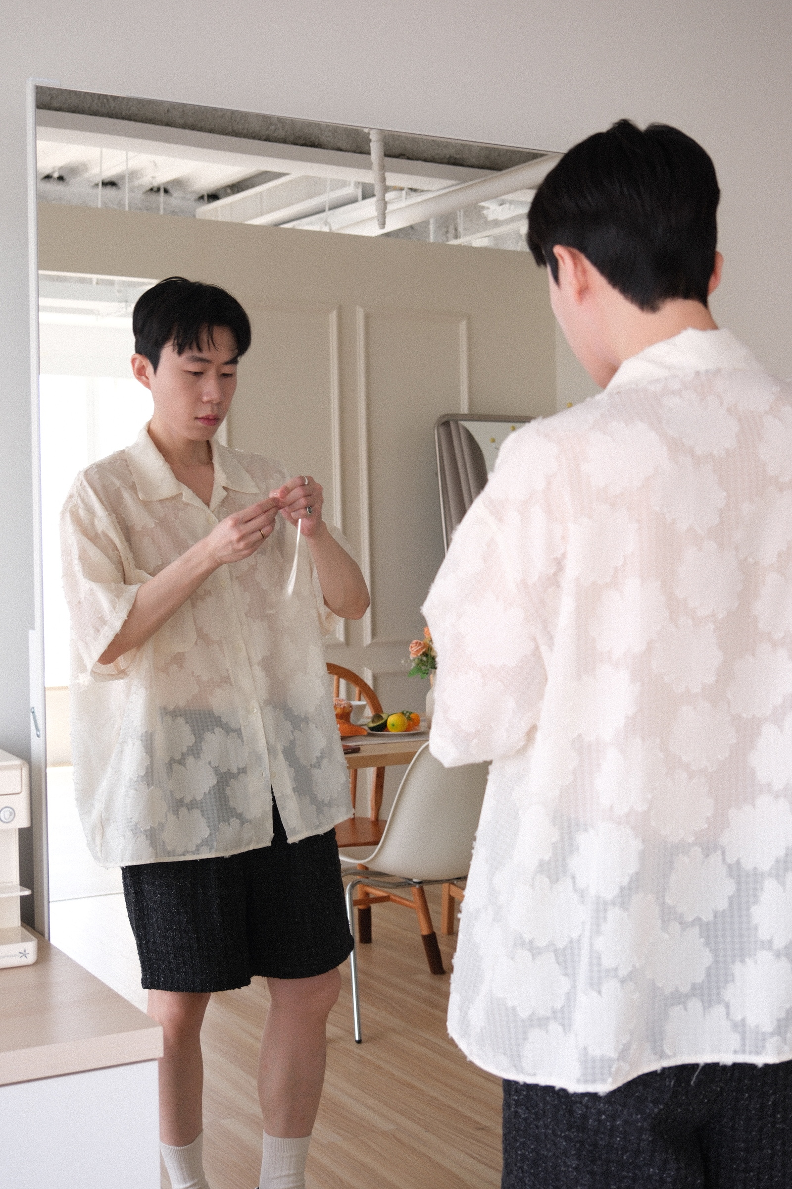 單穿時因為布料表面還有花朵圖案,所以不會透得很明顯