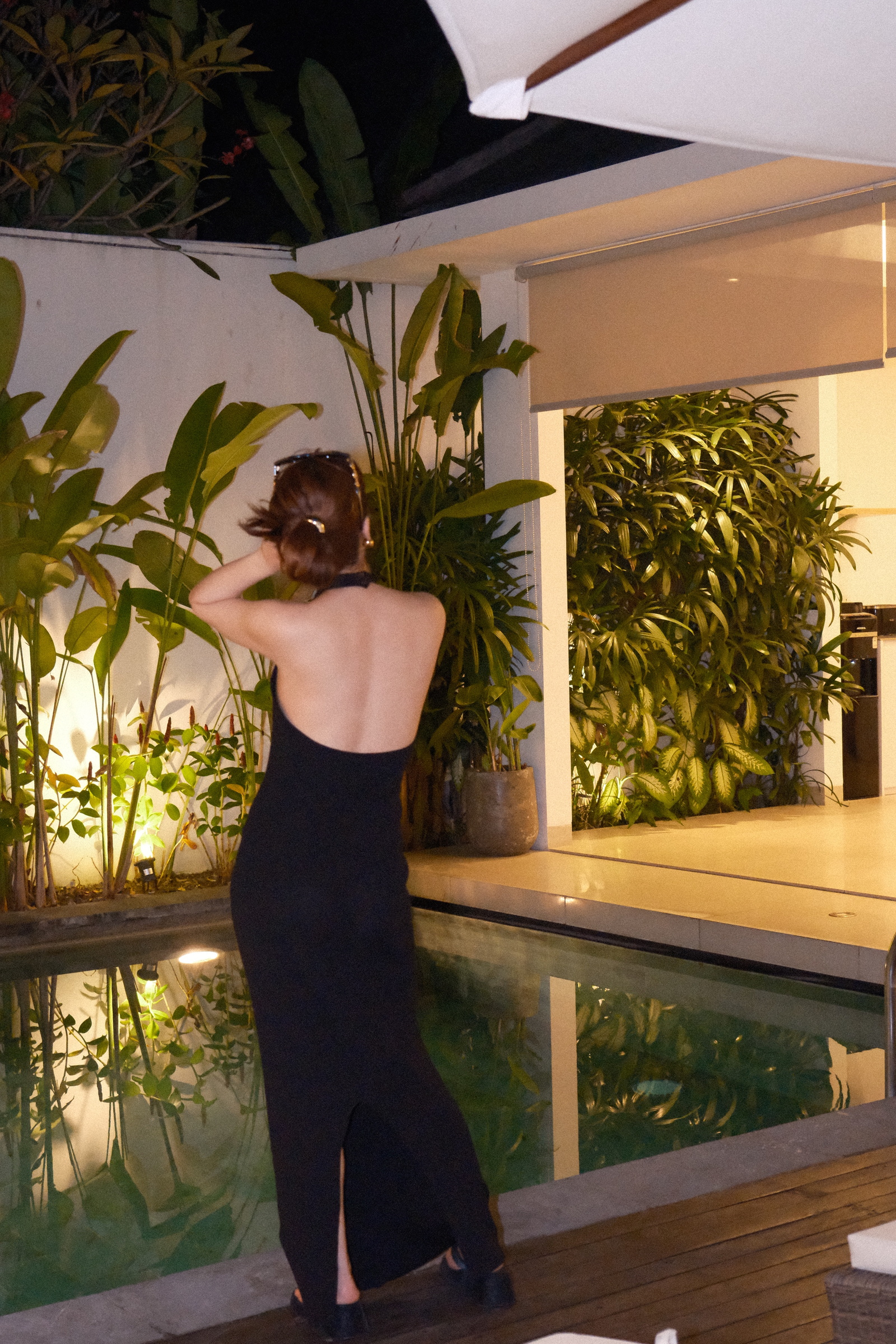 歐美針織繞脖長裙