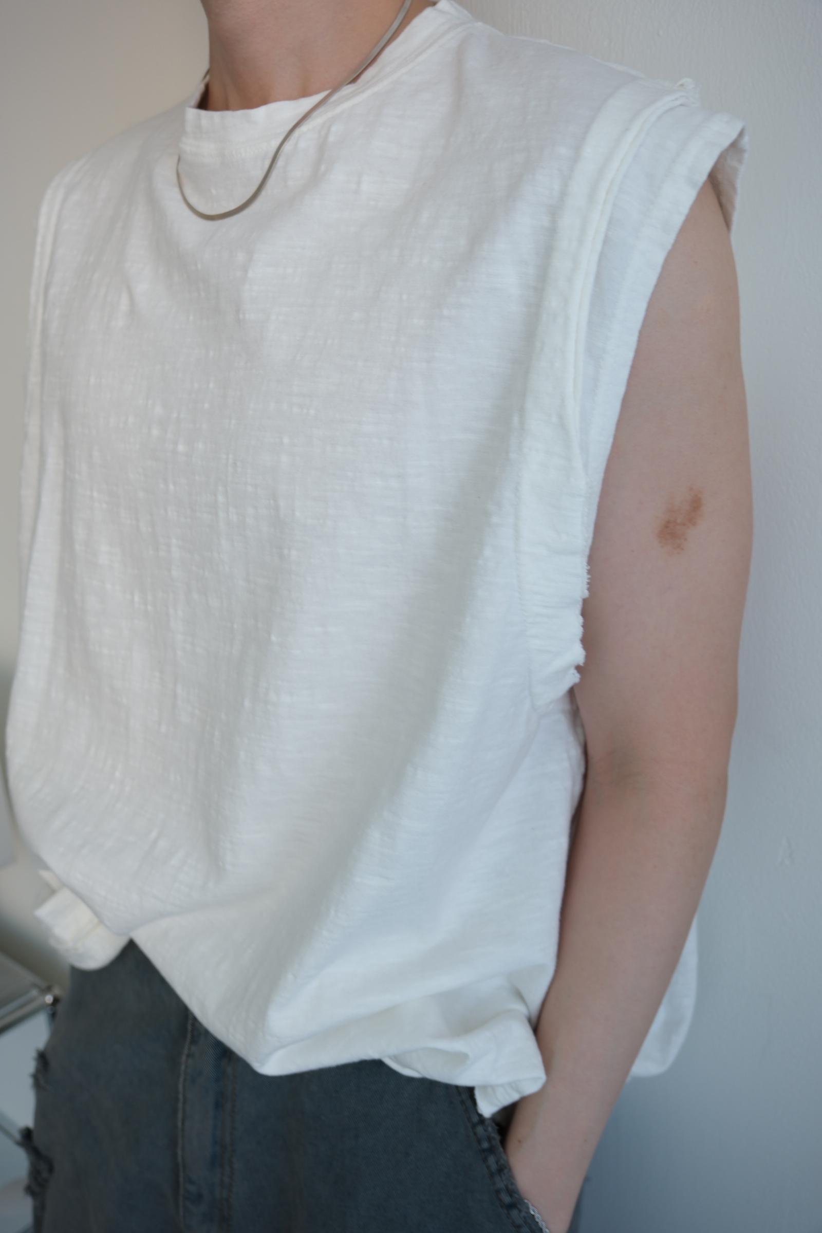 有時候熱到只能穿背心,但又害怕肩線手臂露太多