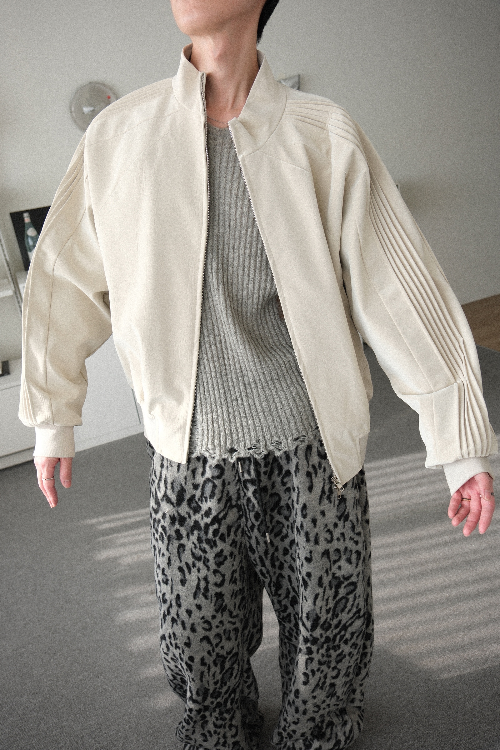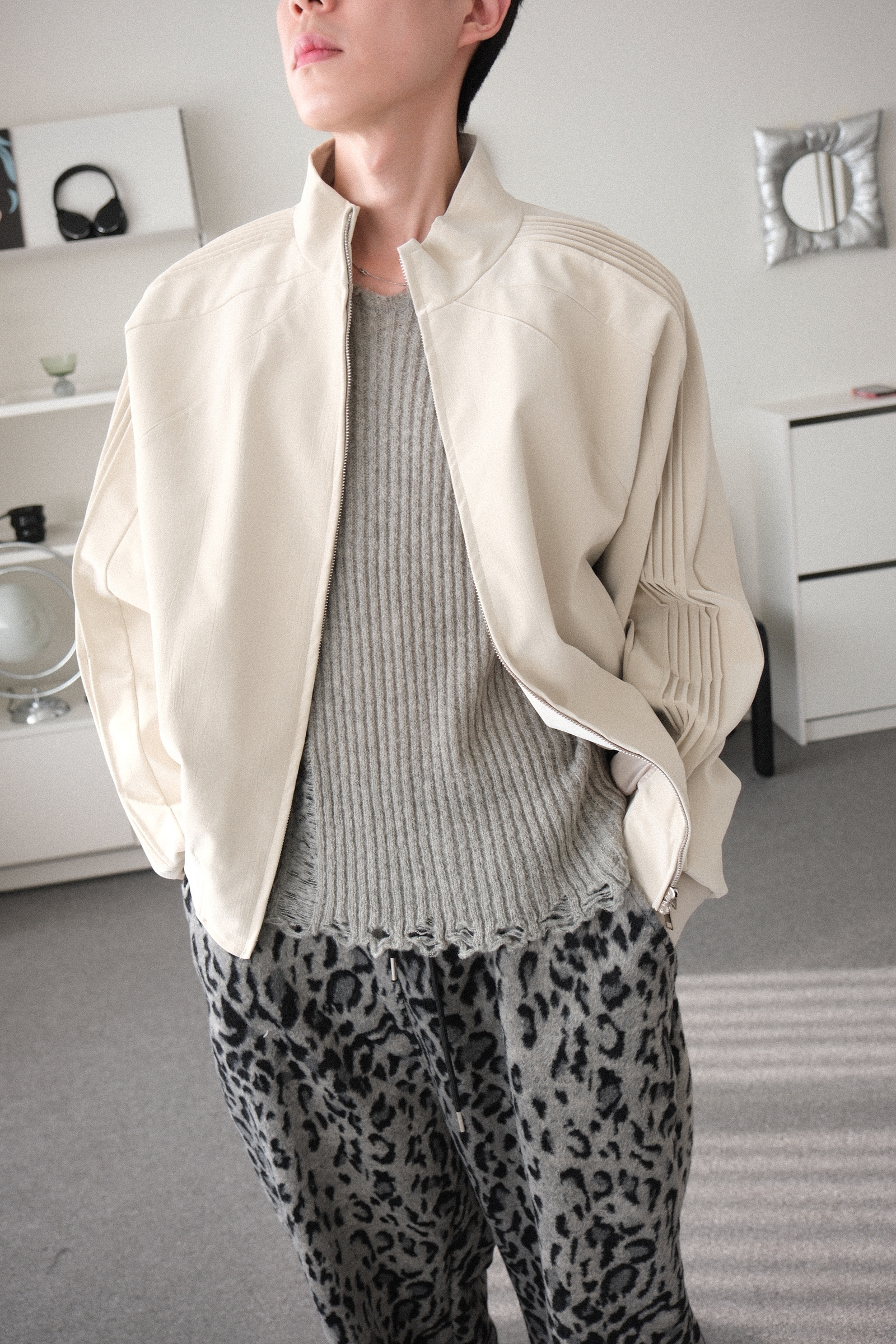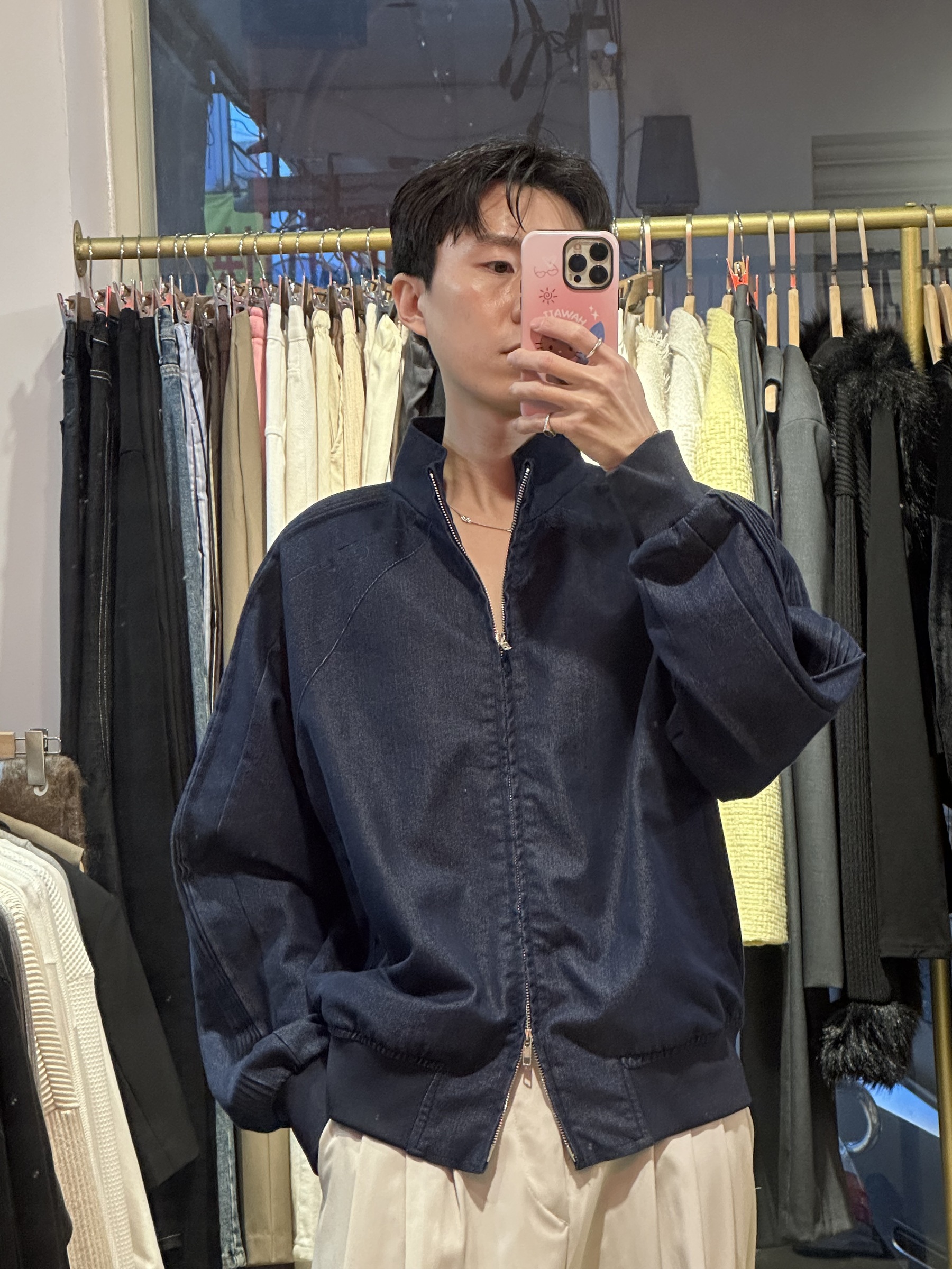 厚度薄,無舖厚內裡,除了寒流,台灣天氣很長能穿的厚薄度