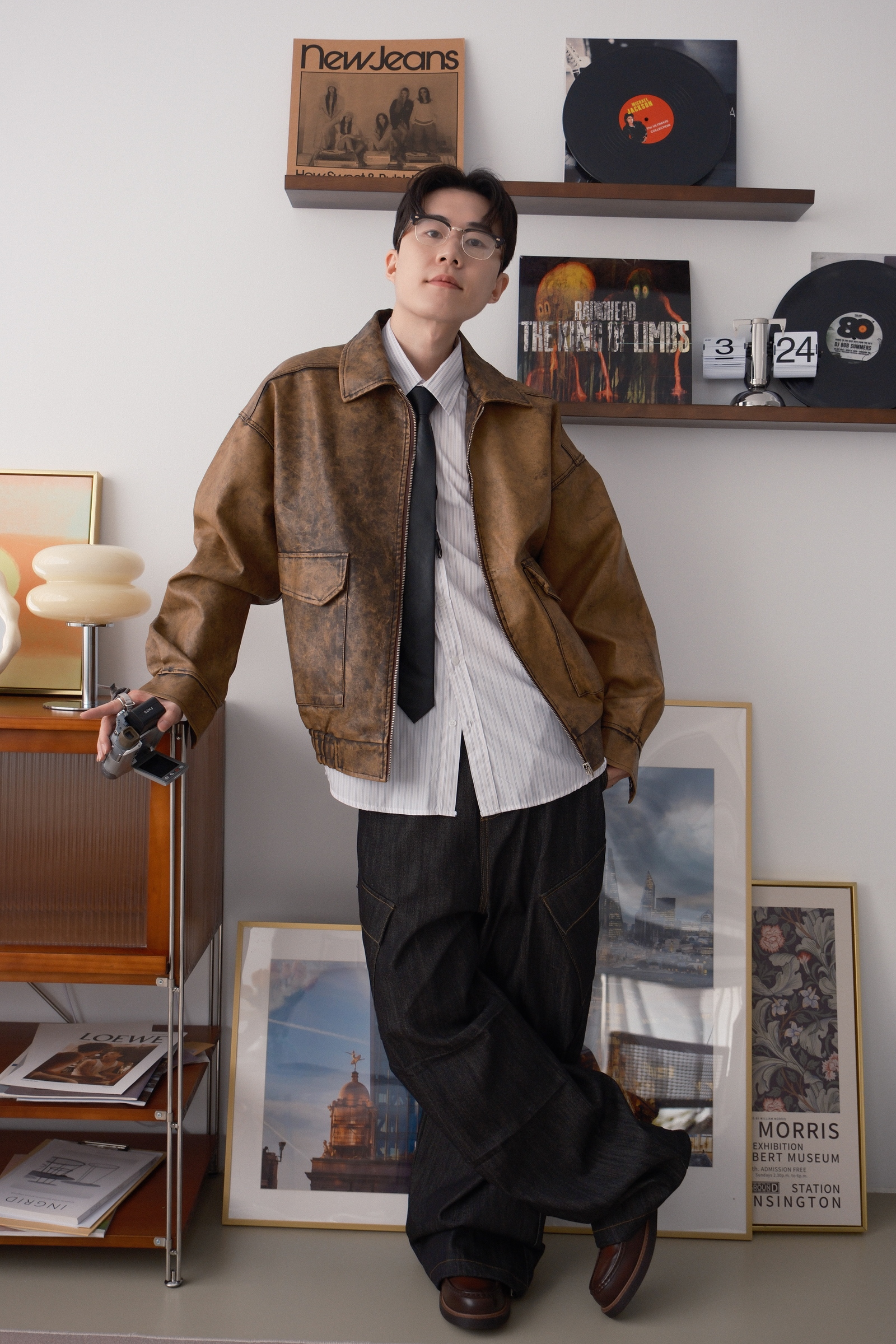 黑色跟深棕色的做舊感,會以像刮痕的感覺顏色差別呈現,像些手袖處會有比較淡的痕跡,整體乍看不覺得很舊,但細節處理的很精緻