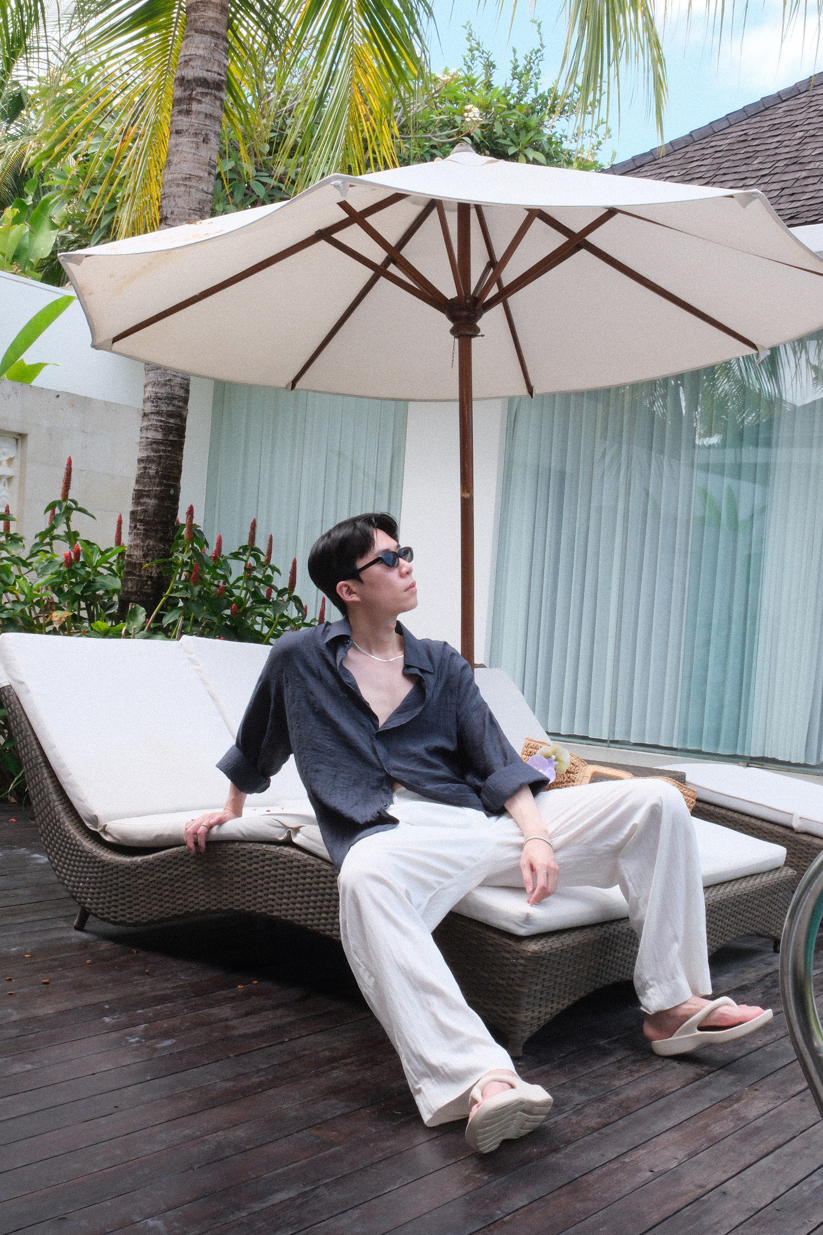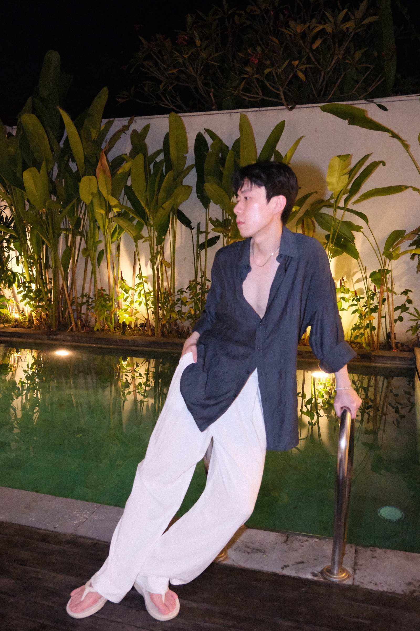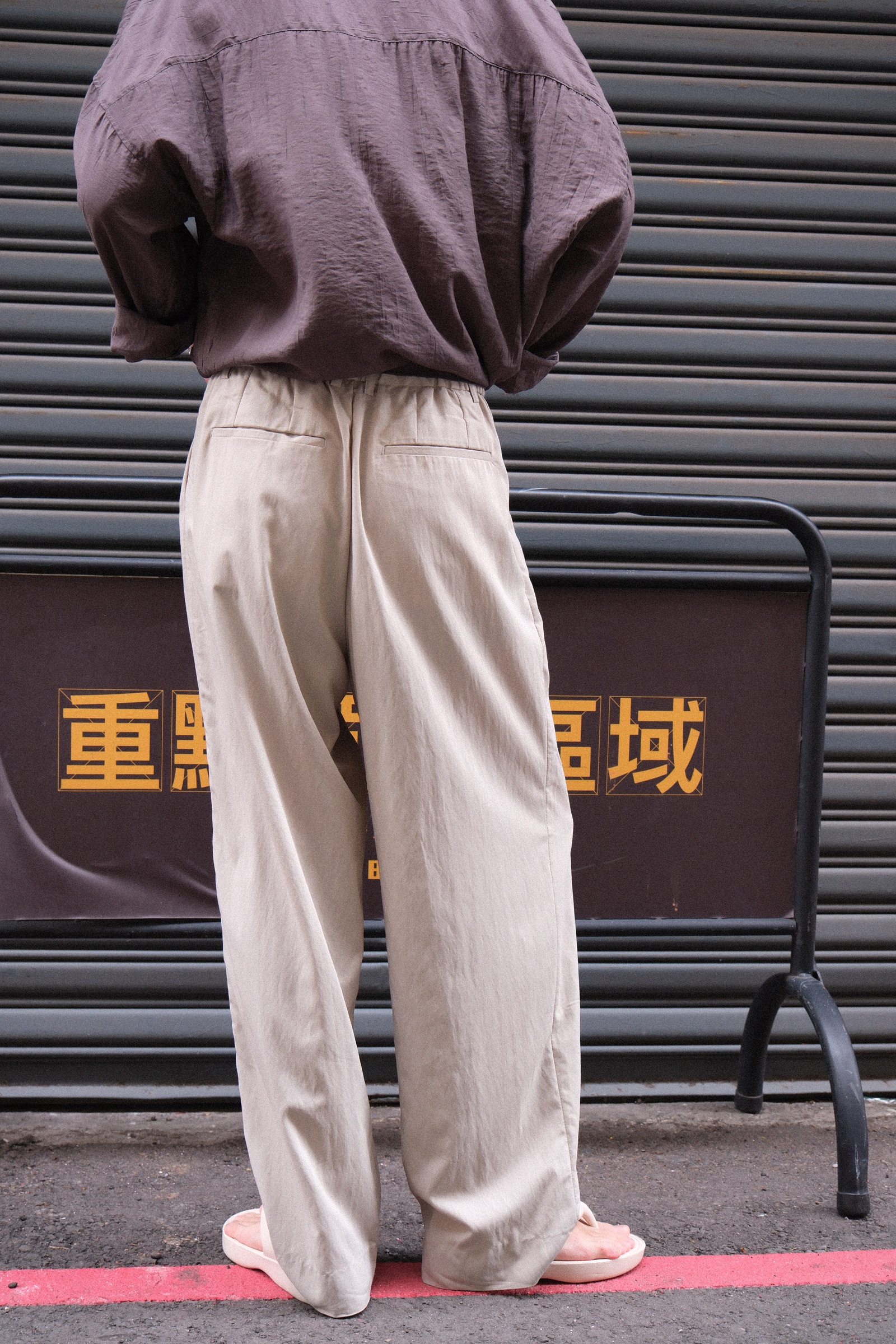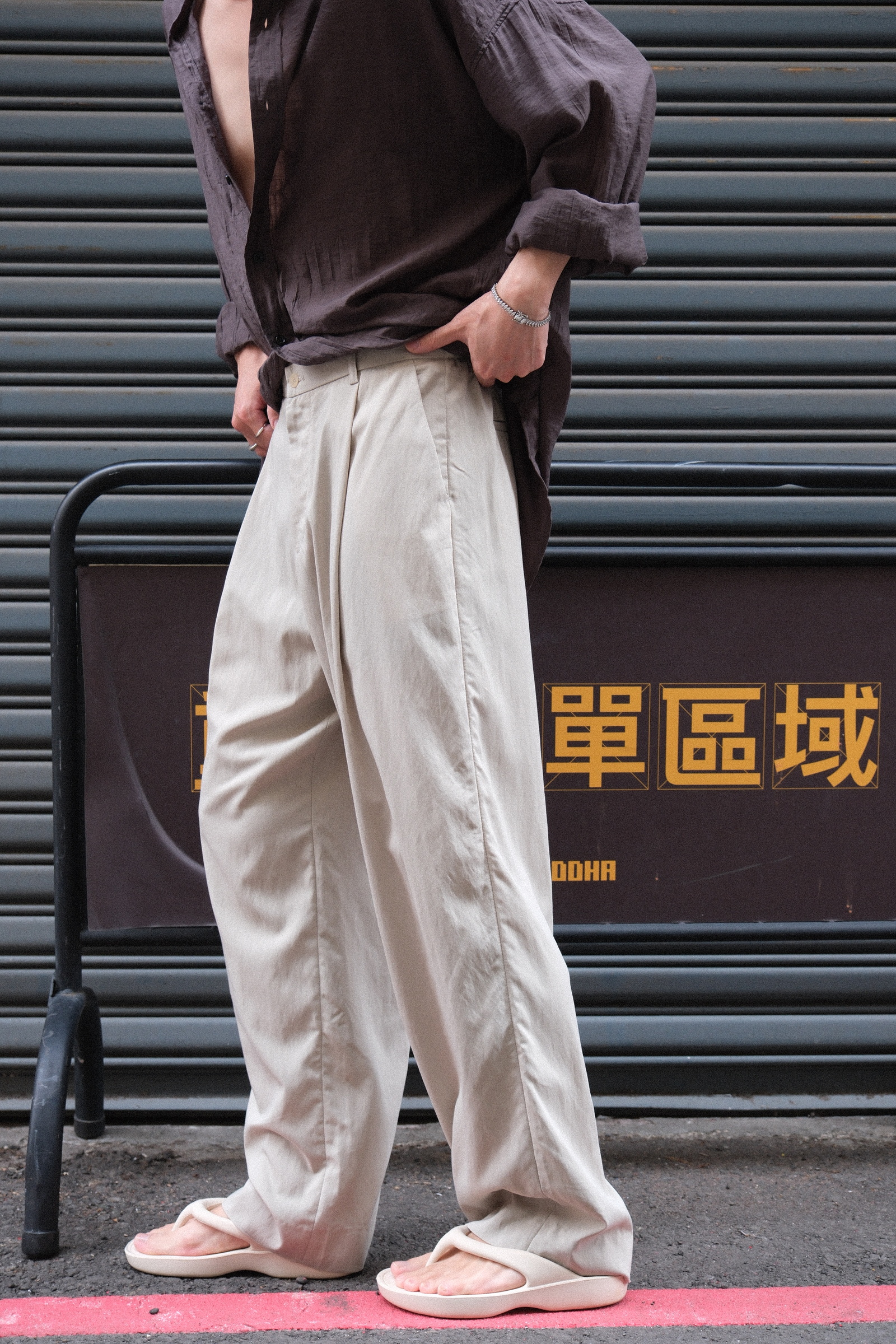 西裝褲但摺版型,不過穿起來不會太正式的效果