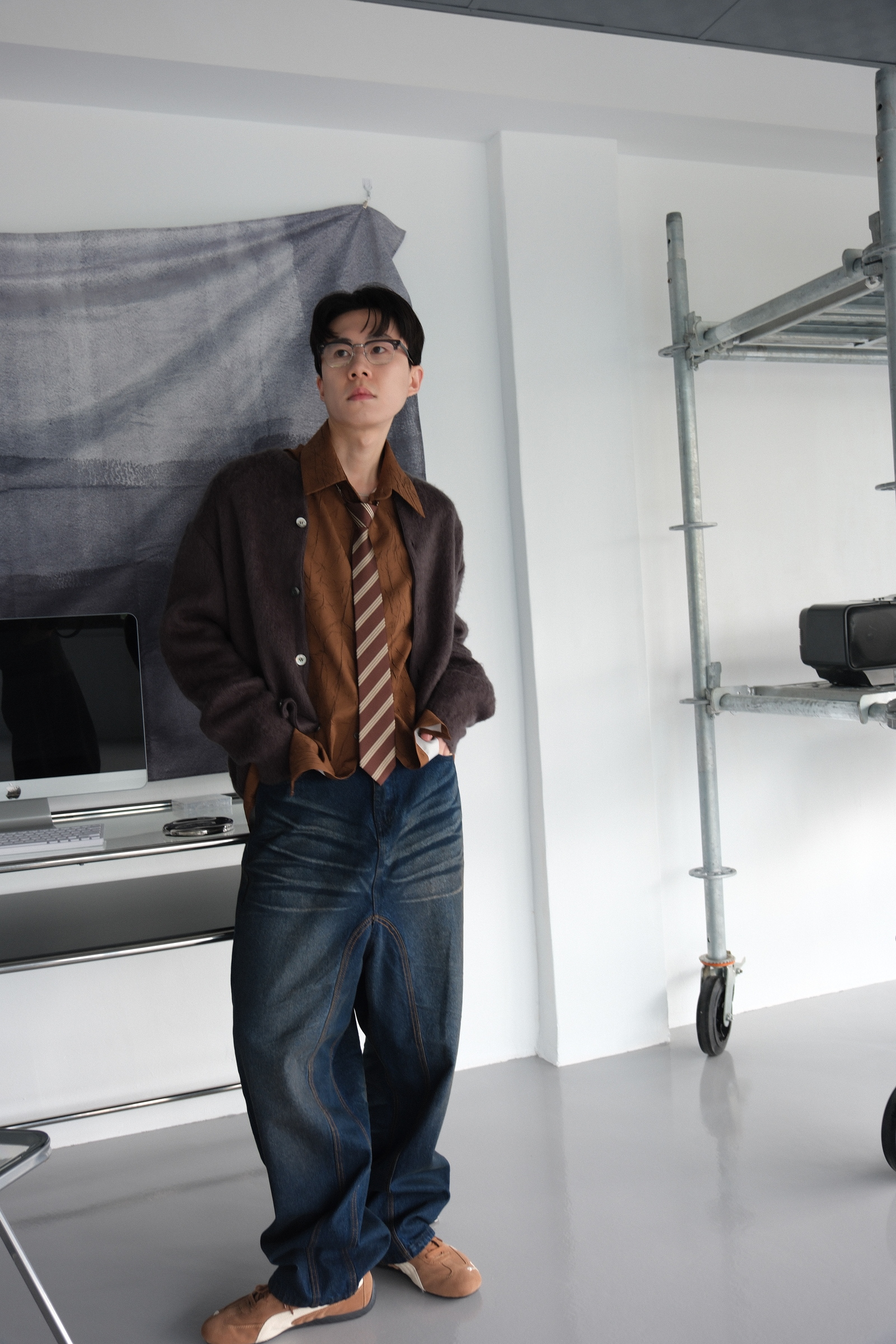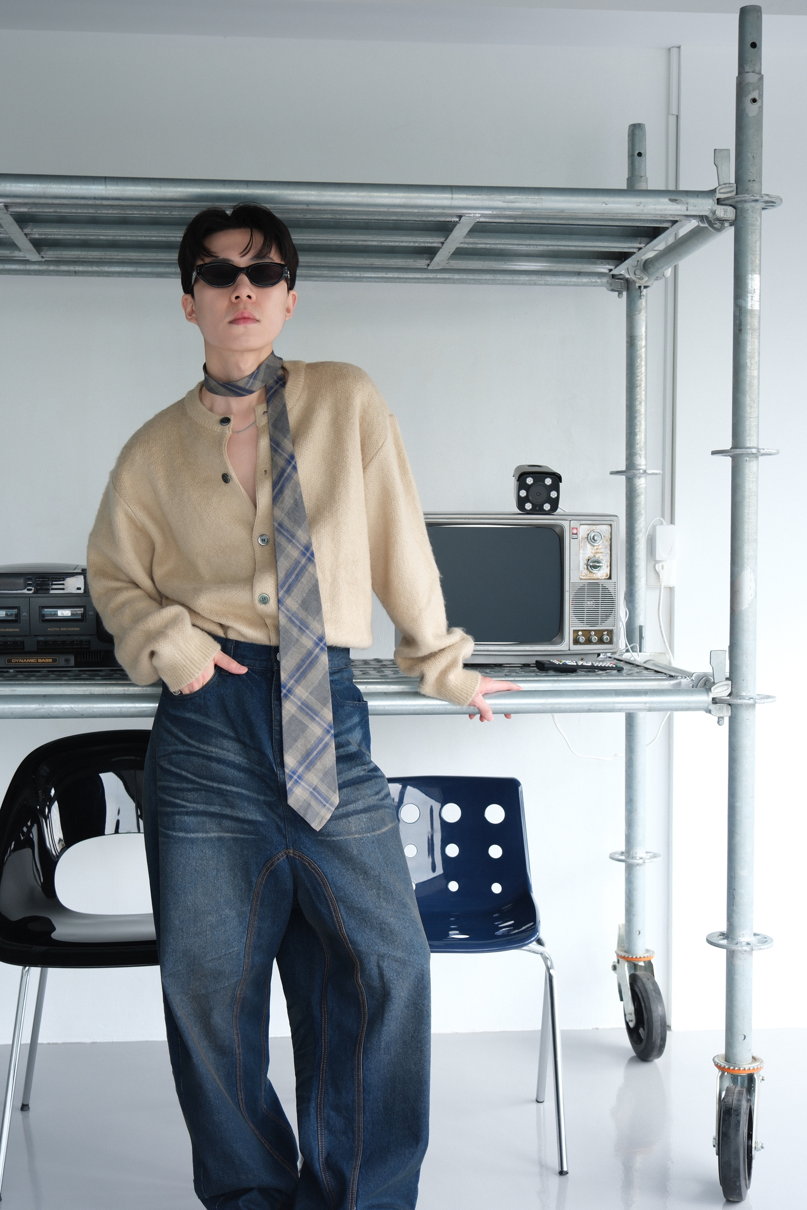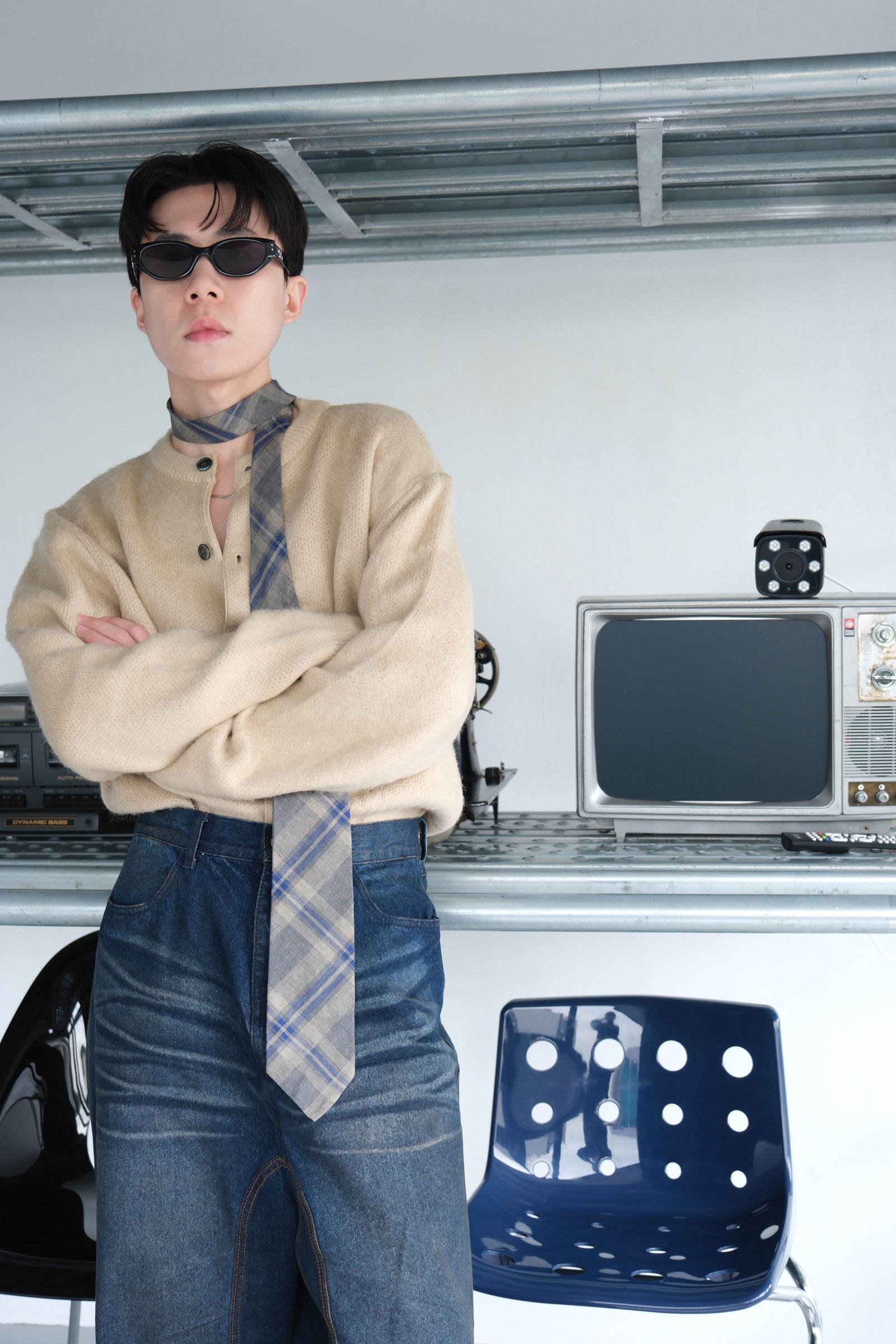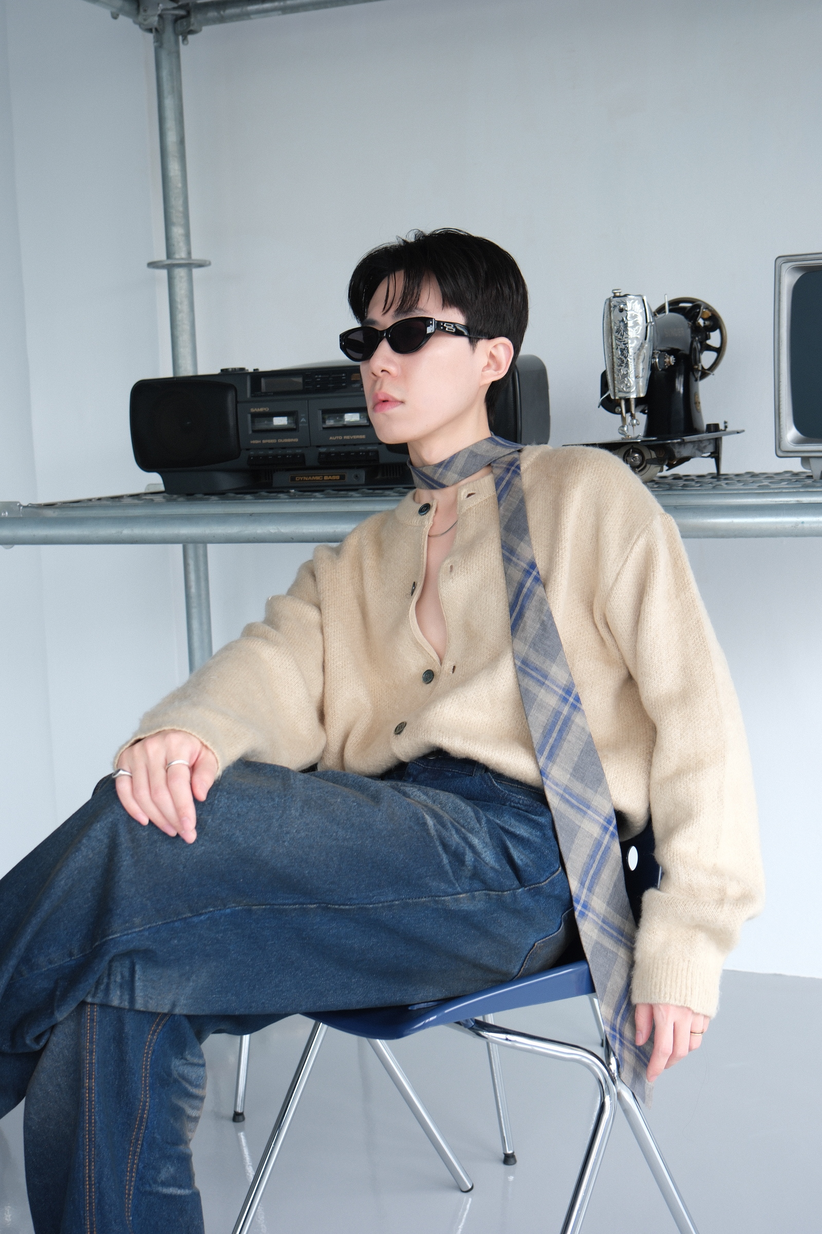 這次在韓國路上看到許多人 身穿圓領針織罩衫 內搭白T 原色牛仔褲