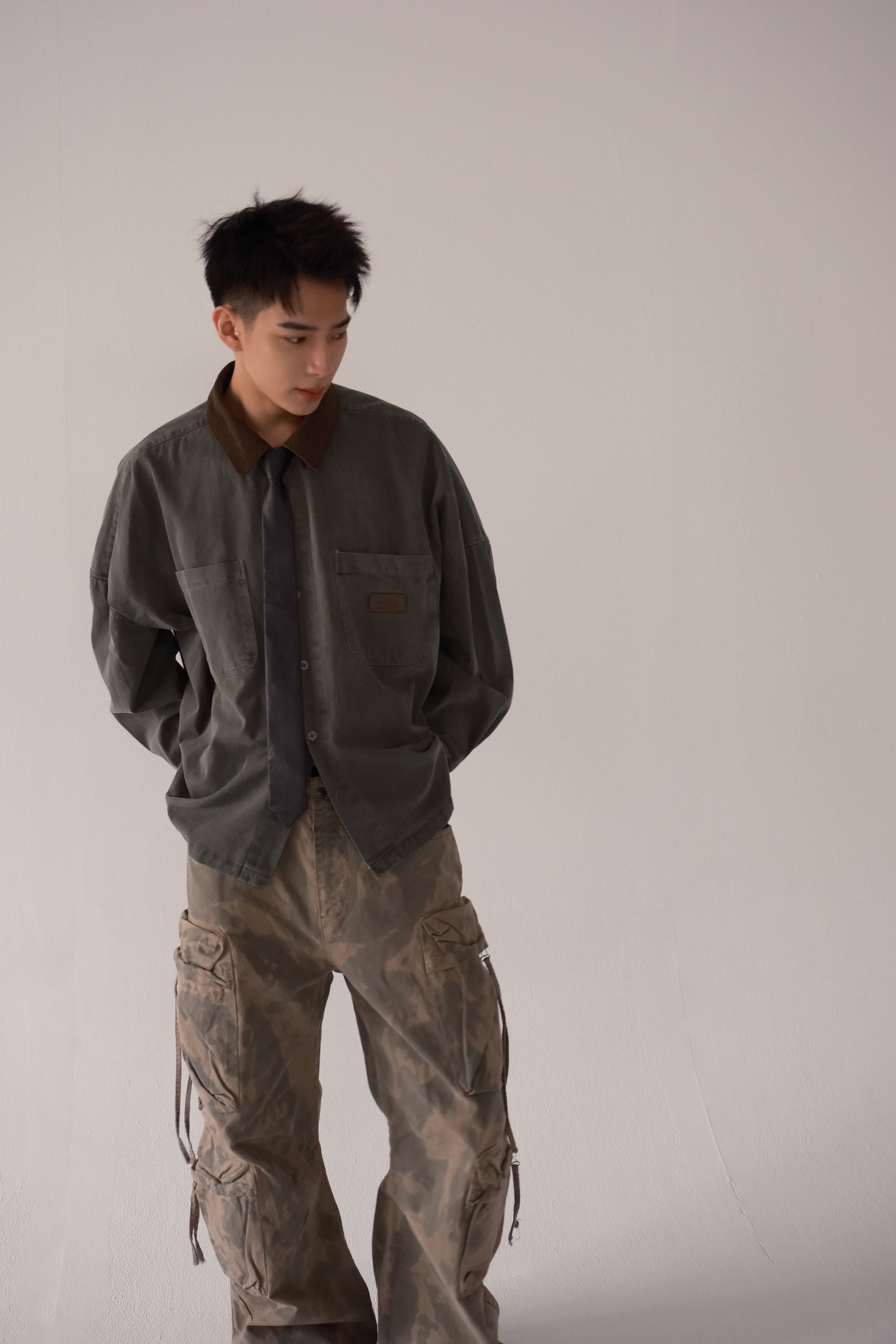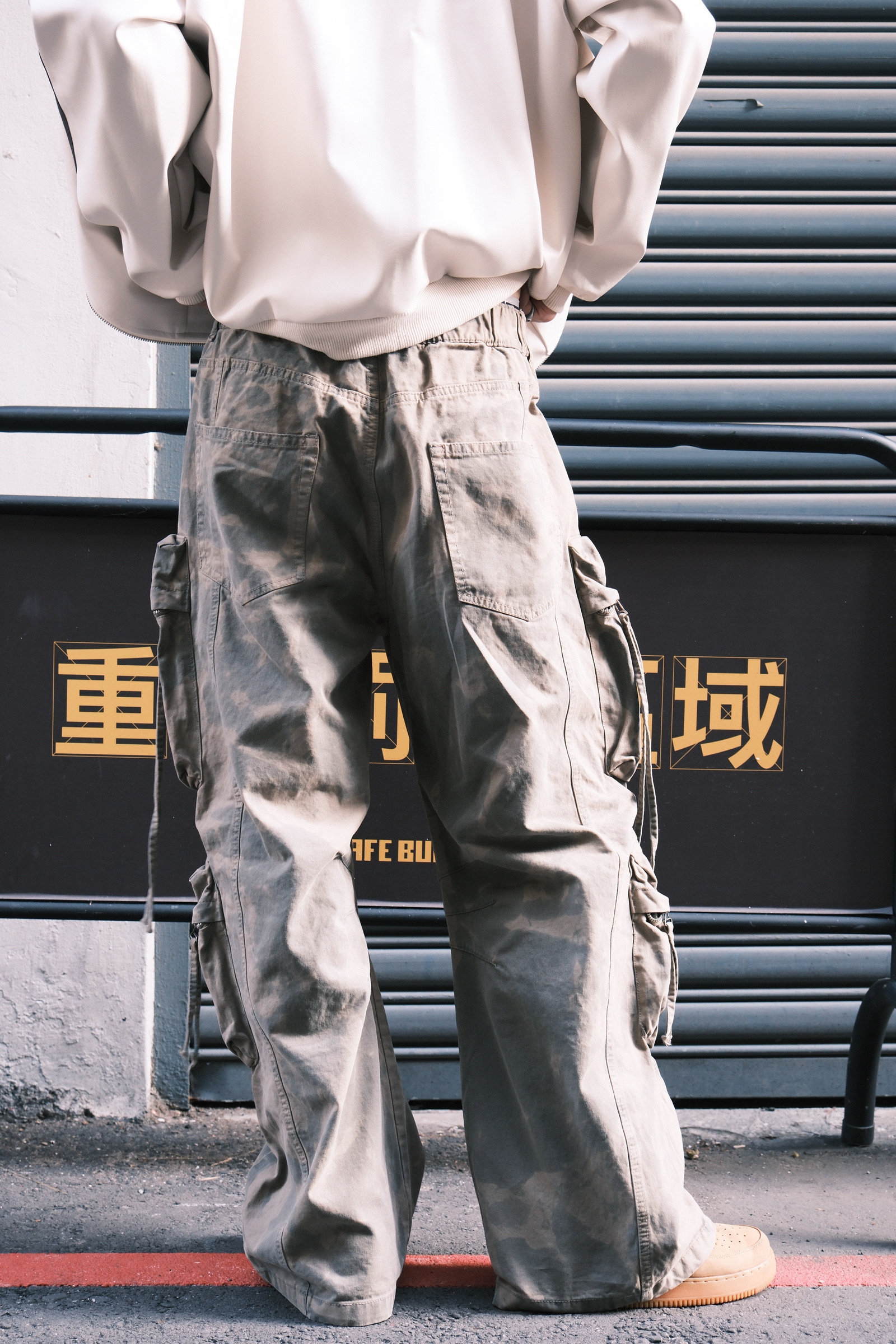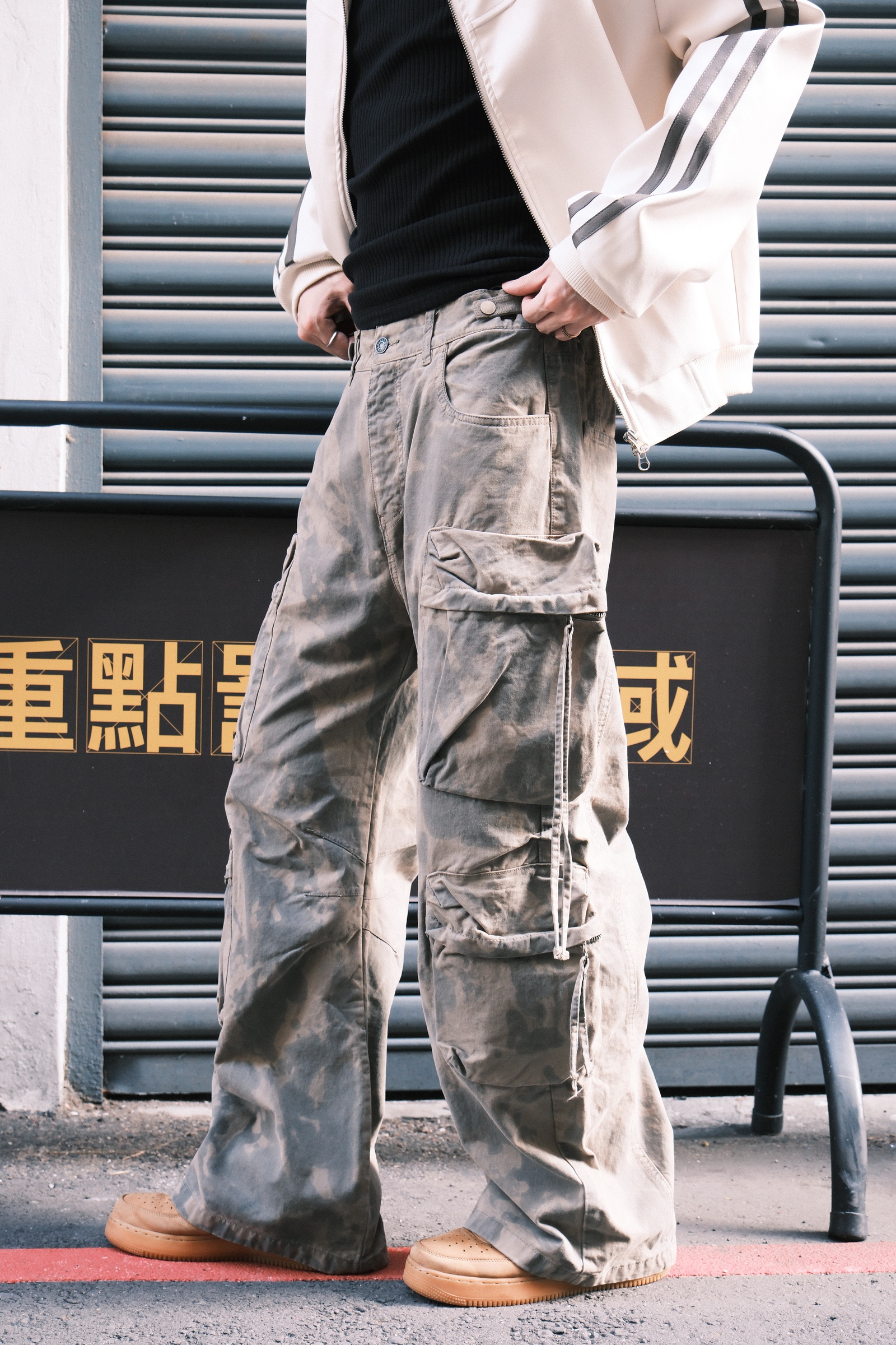 顏色是洗很淡的迷彩,軍事感不會太強烈