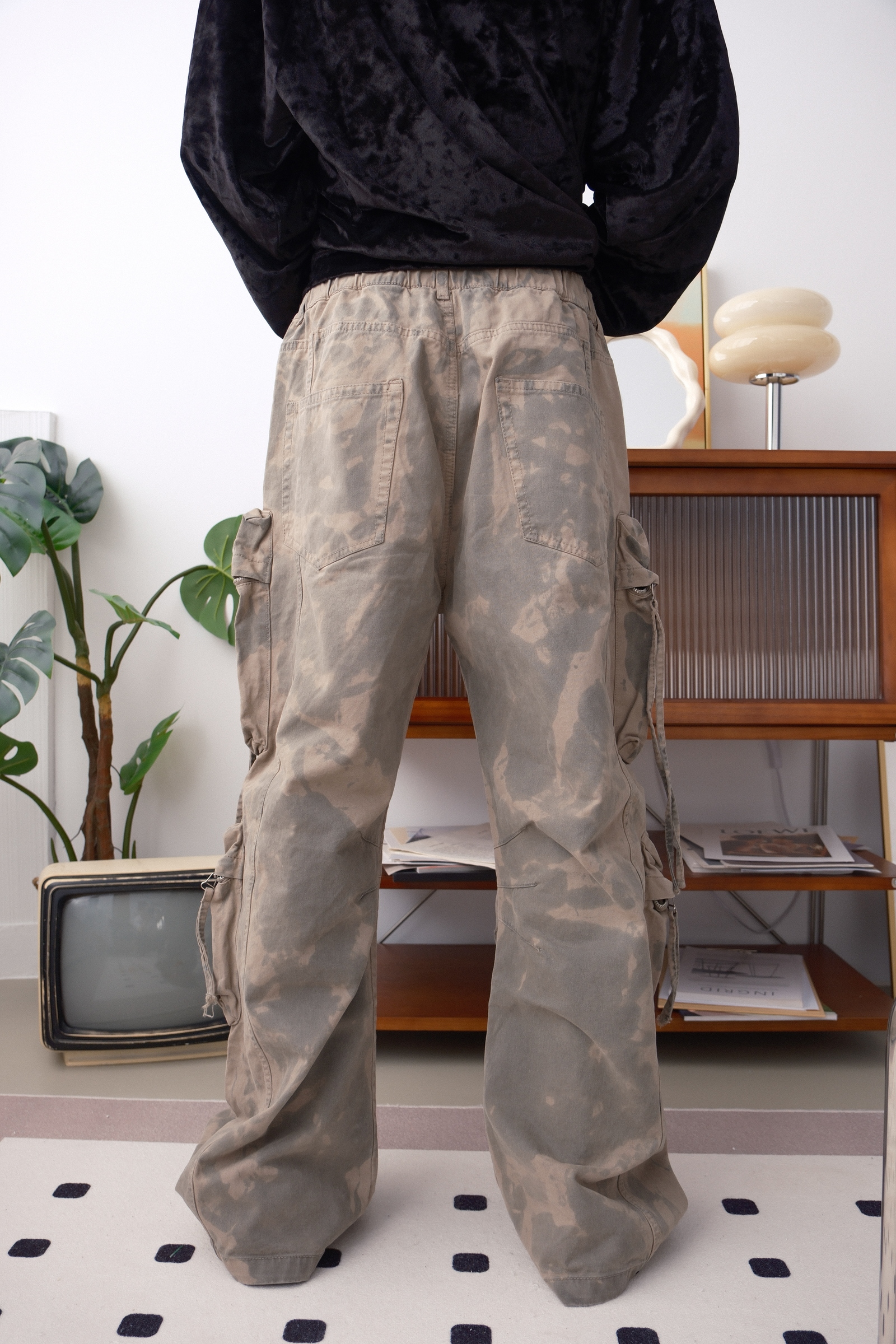 立體大口袋再加上膝蓋間的摺紋設計,讓褲子穿起來完全不會顯得臃腫