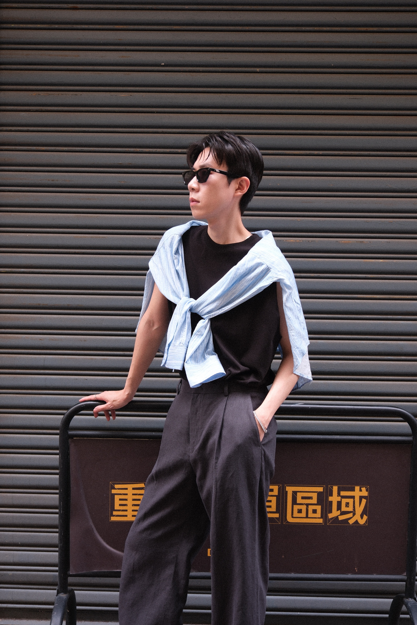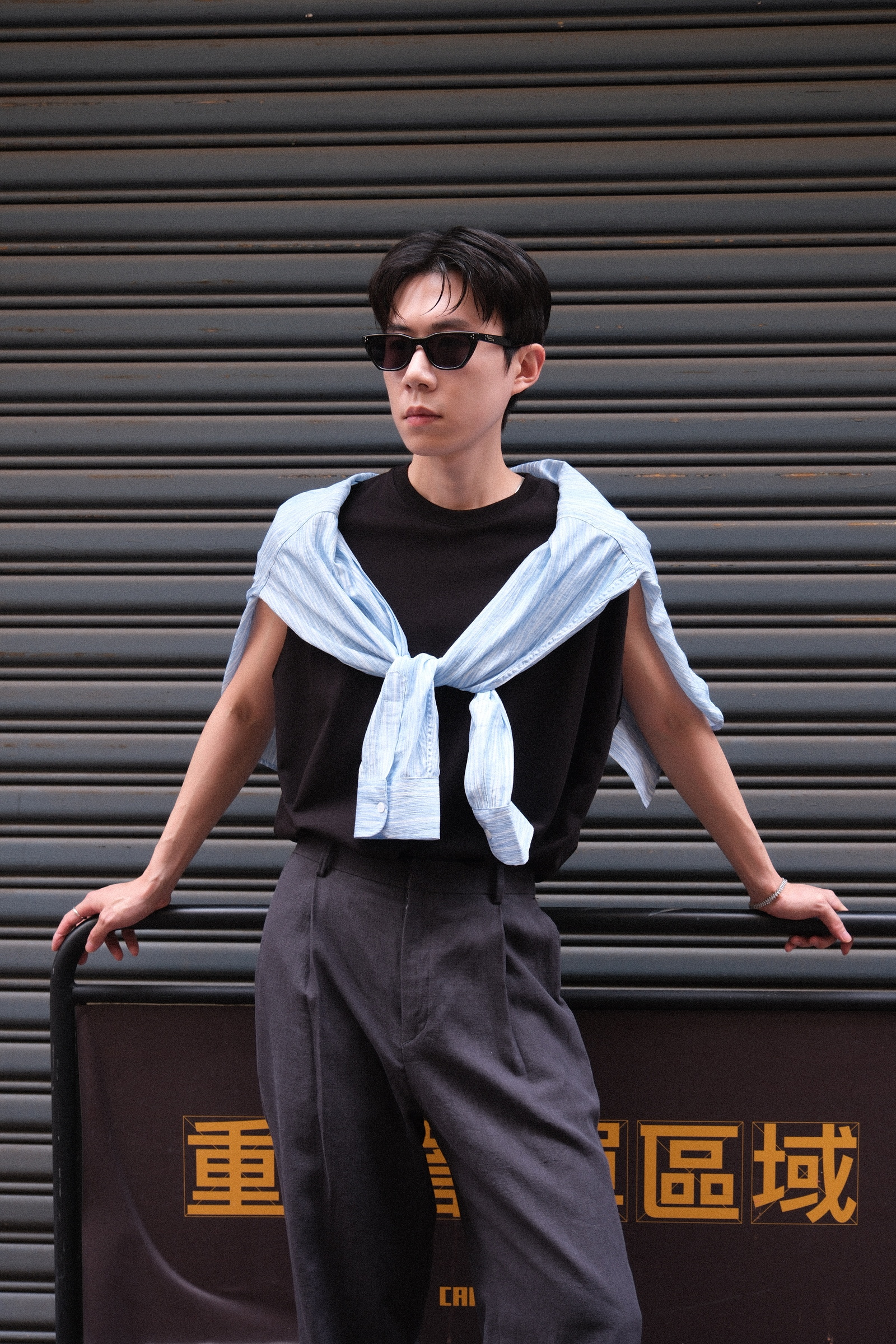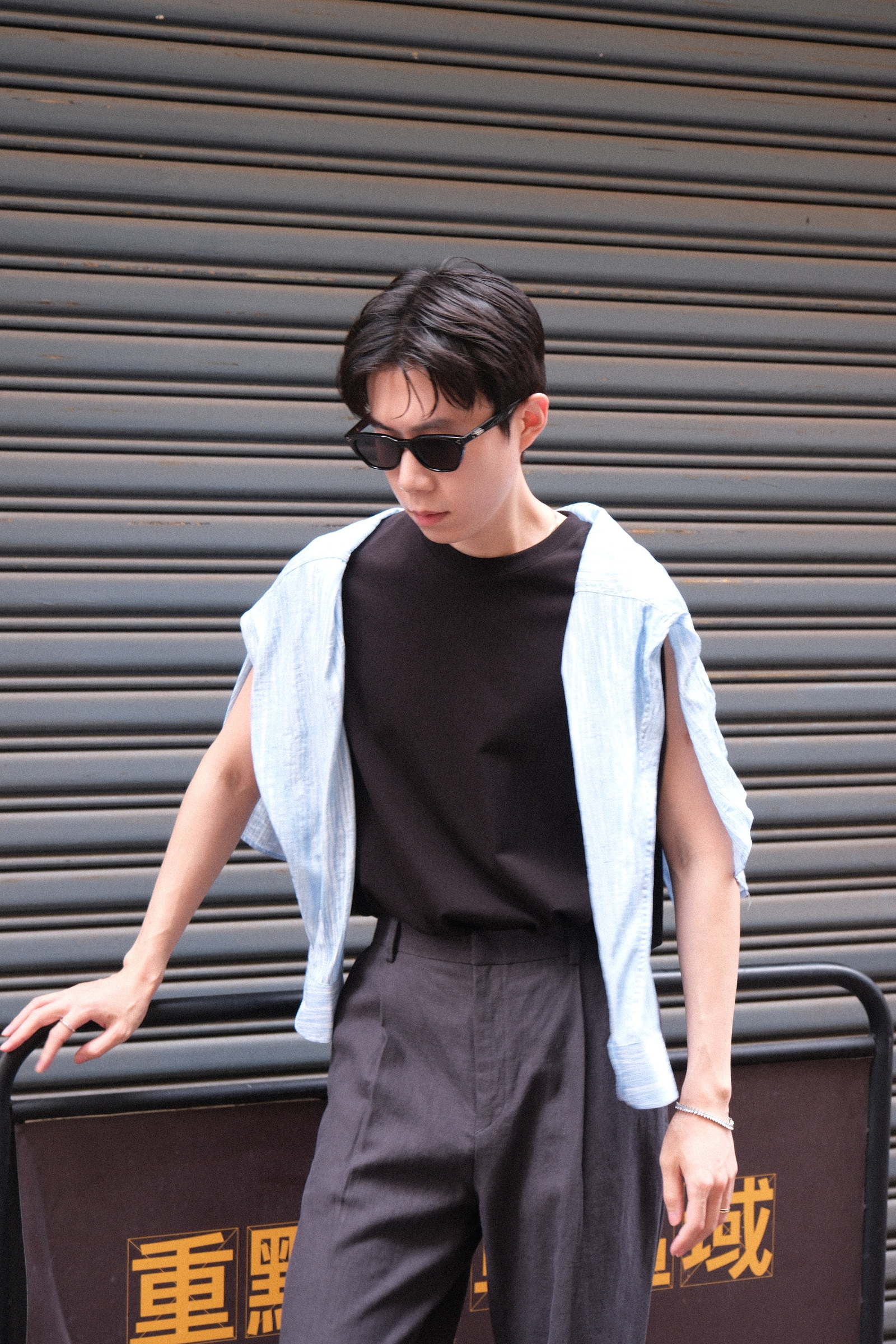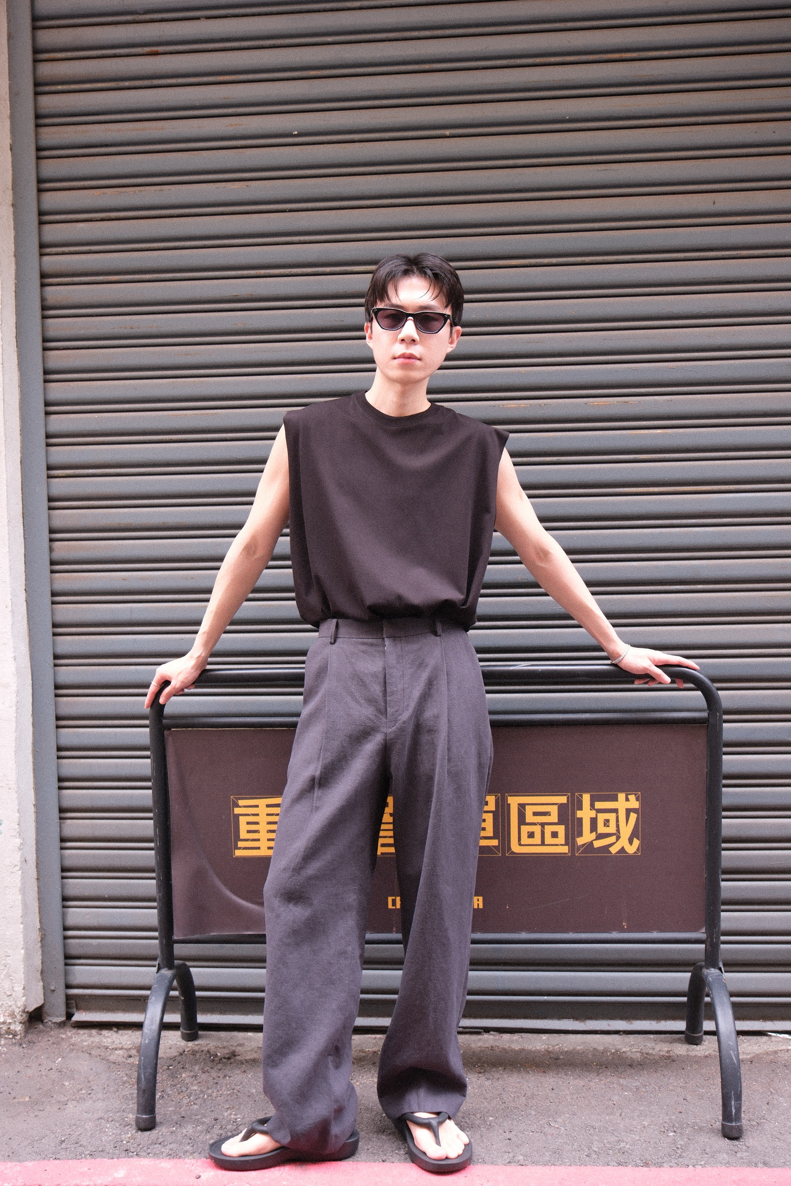 版型上肩膀寬蓋住肩頭,像是件T恤 但裁掉袖子