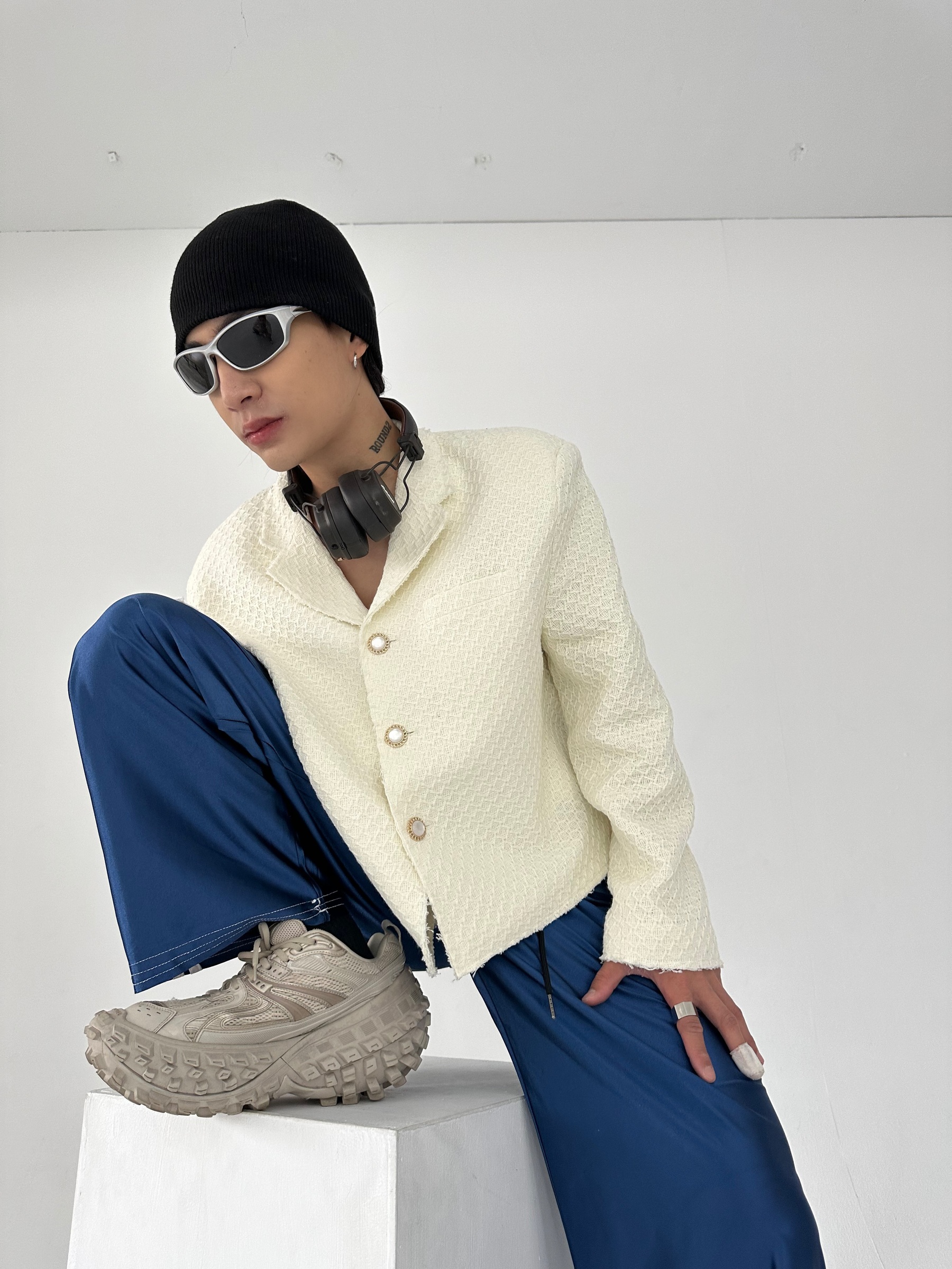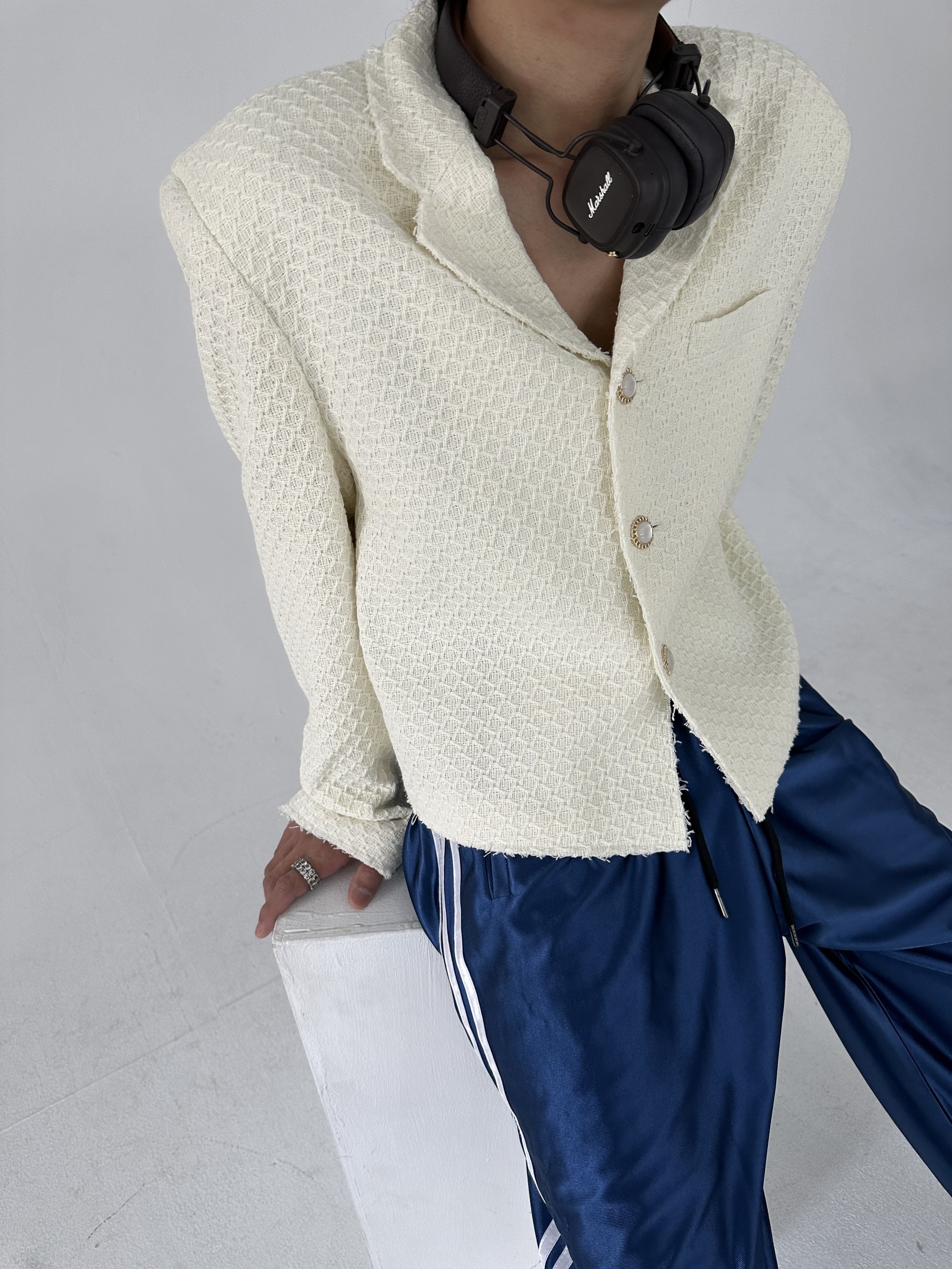 雖然是毛呢布料,但並不想冬季的毛呢布那樣毛絨厚重