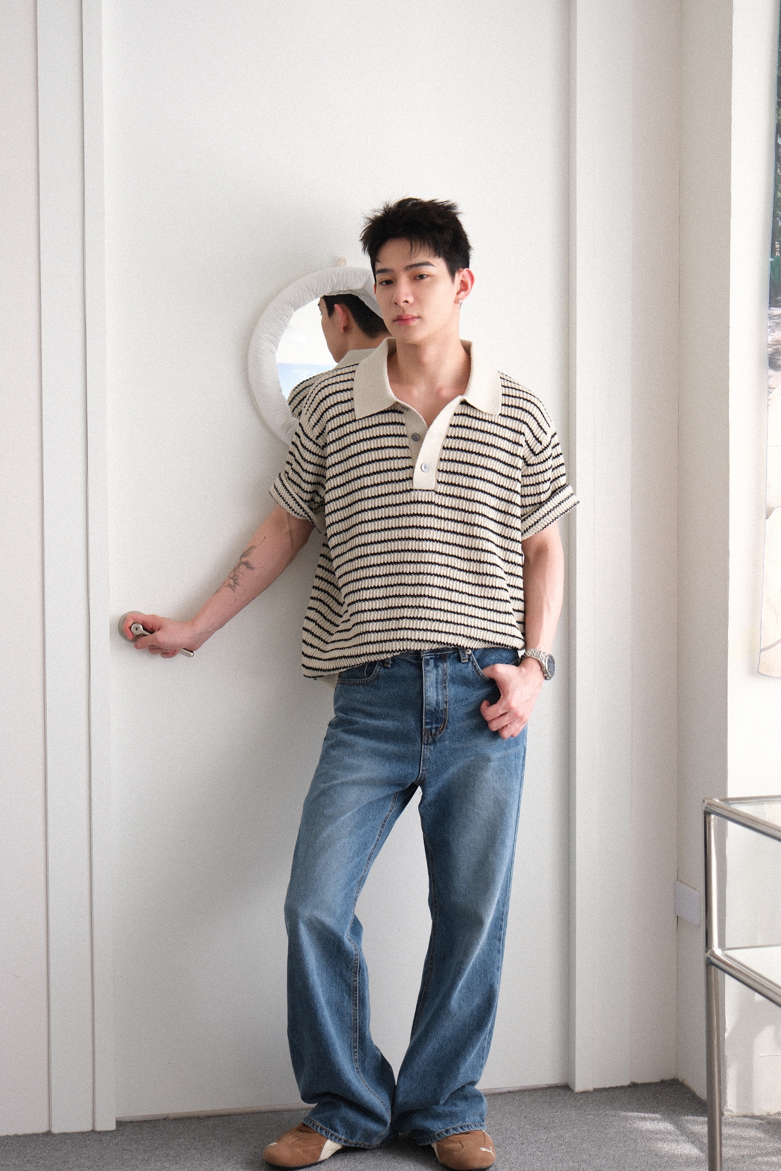 Eric 172/56示範S,腰圍微微鬆,他本人覺得剛好不用繫皮帶也可以