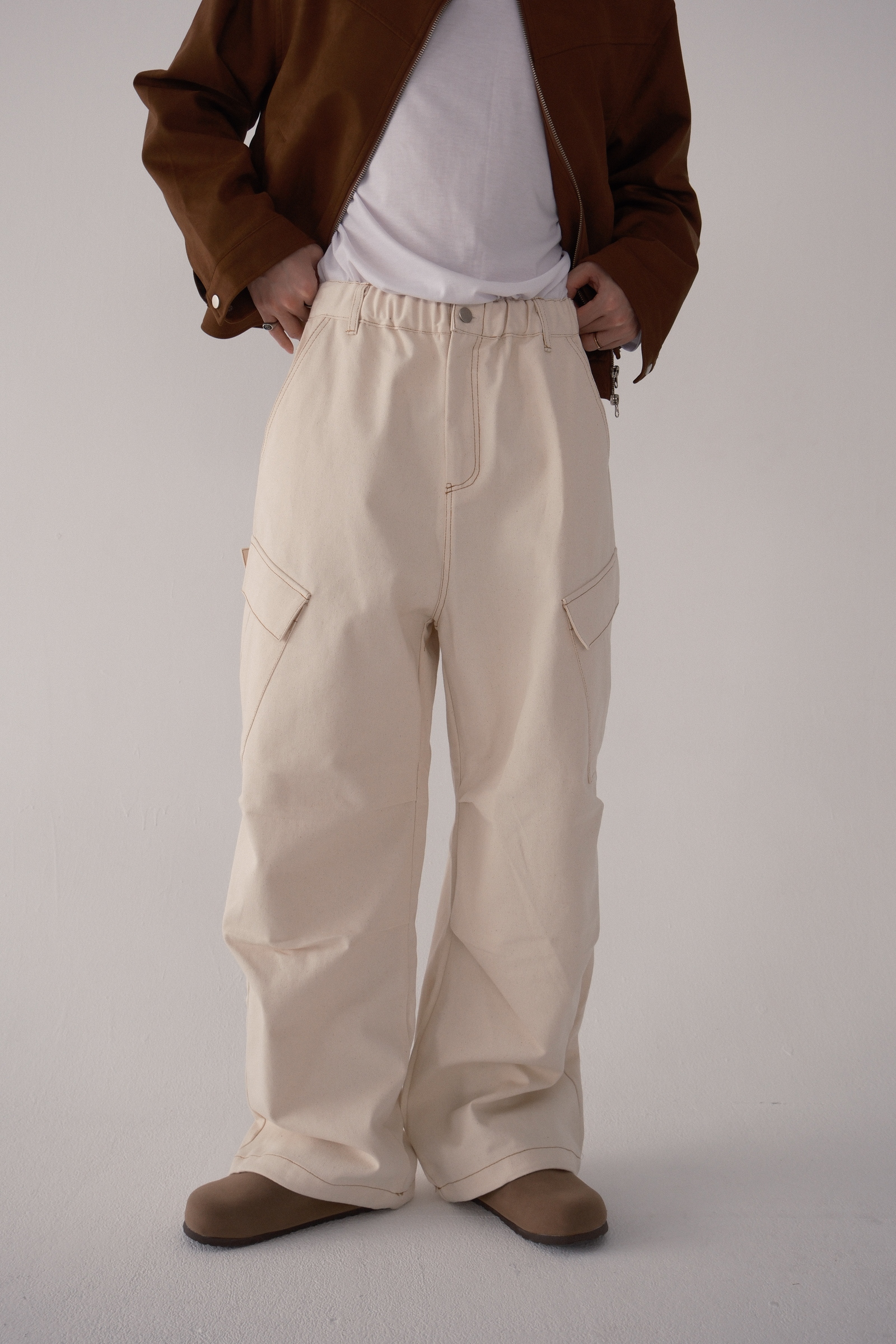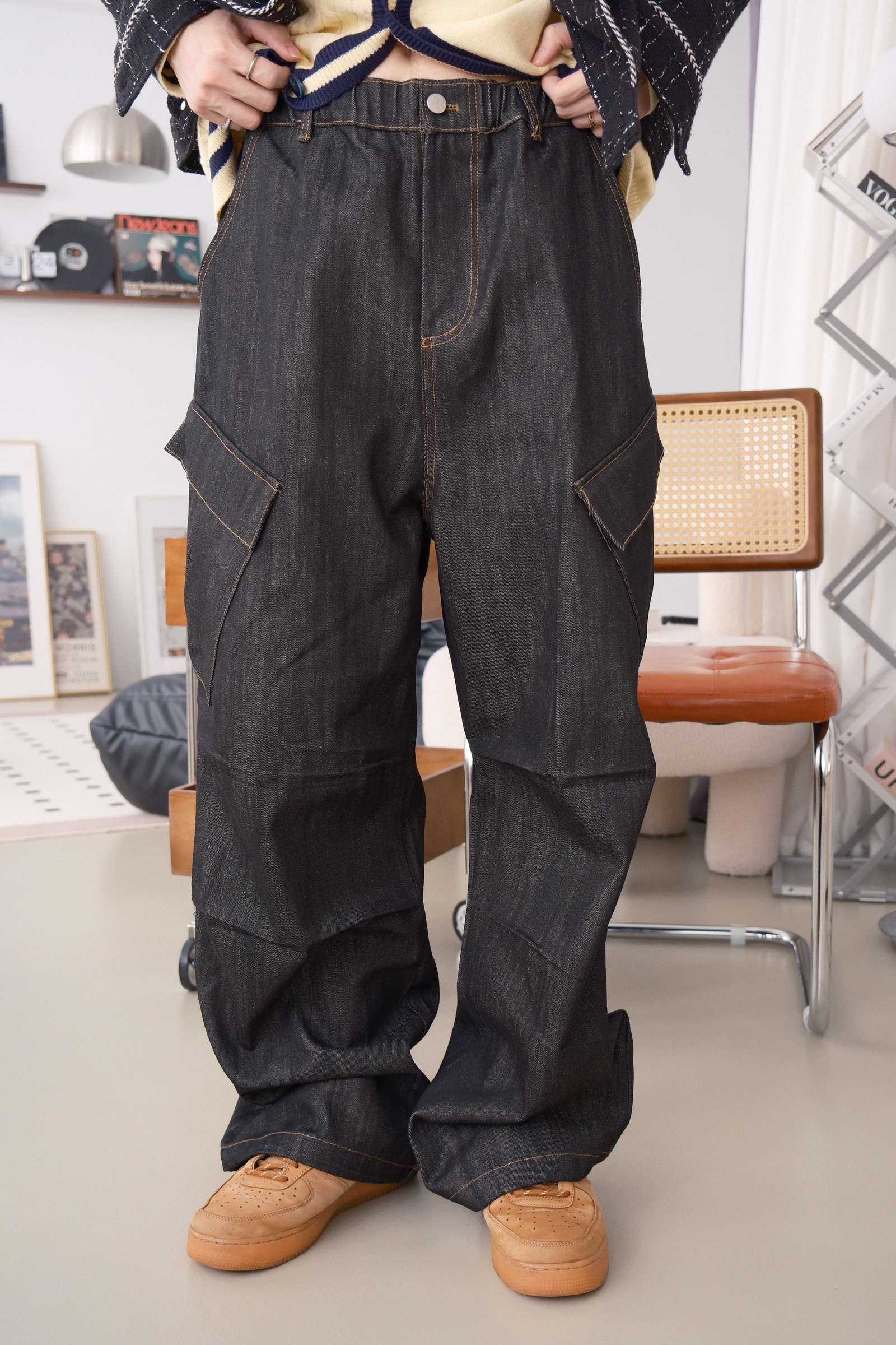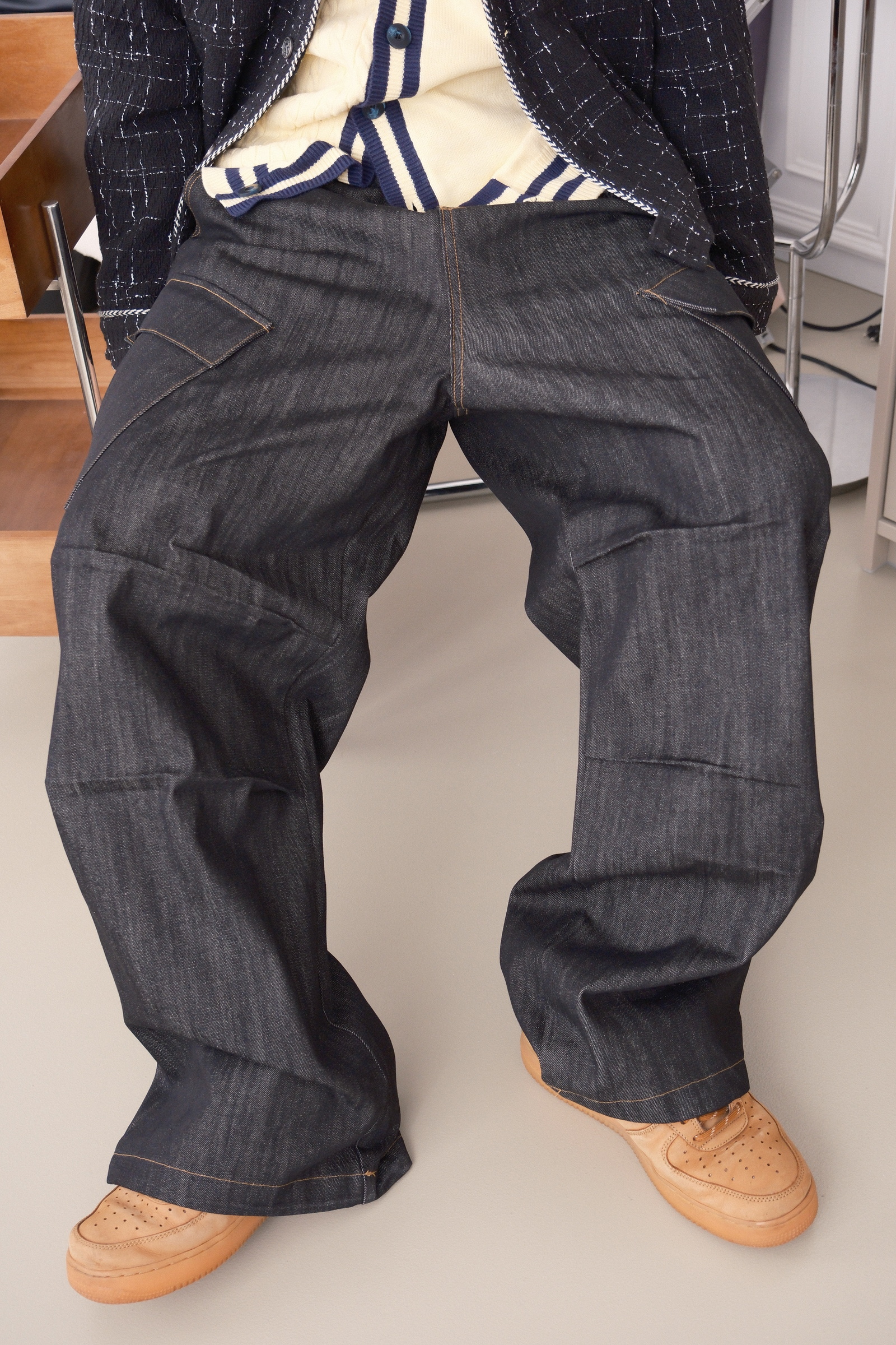 褲子的布料可以想像成,原漿牛仔褲那樣