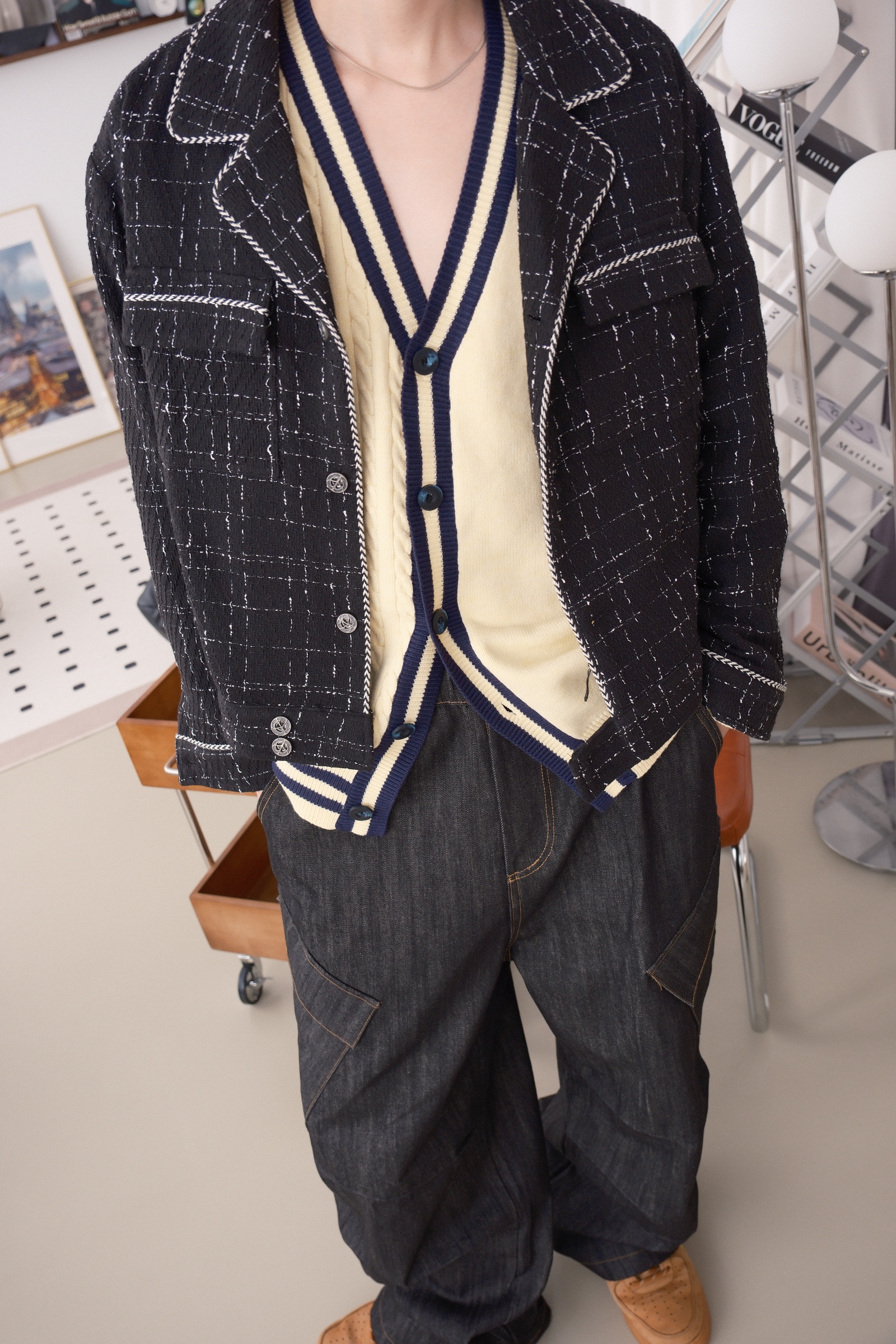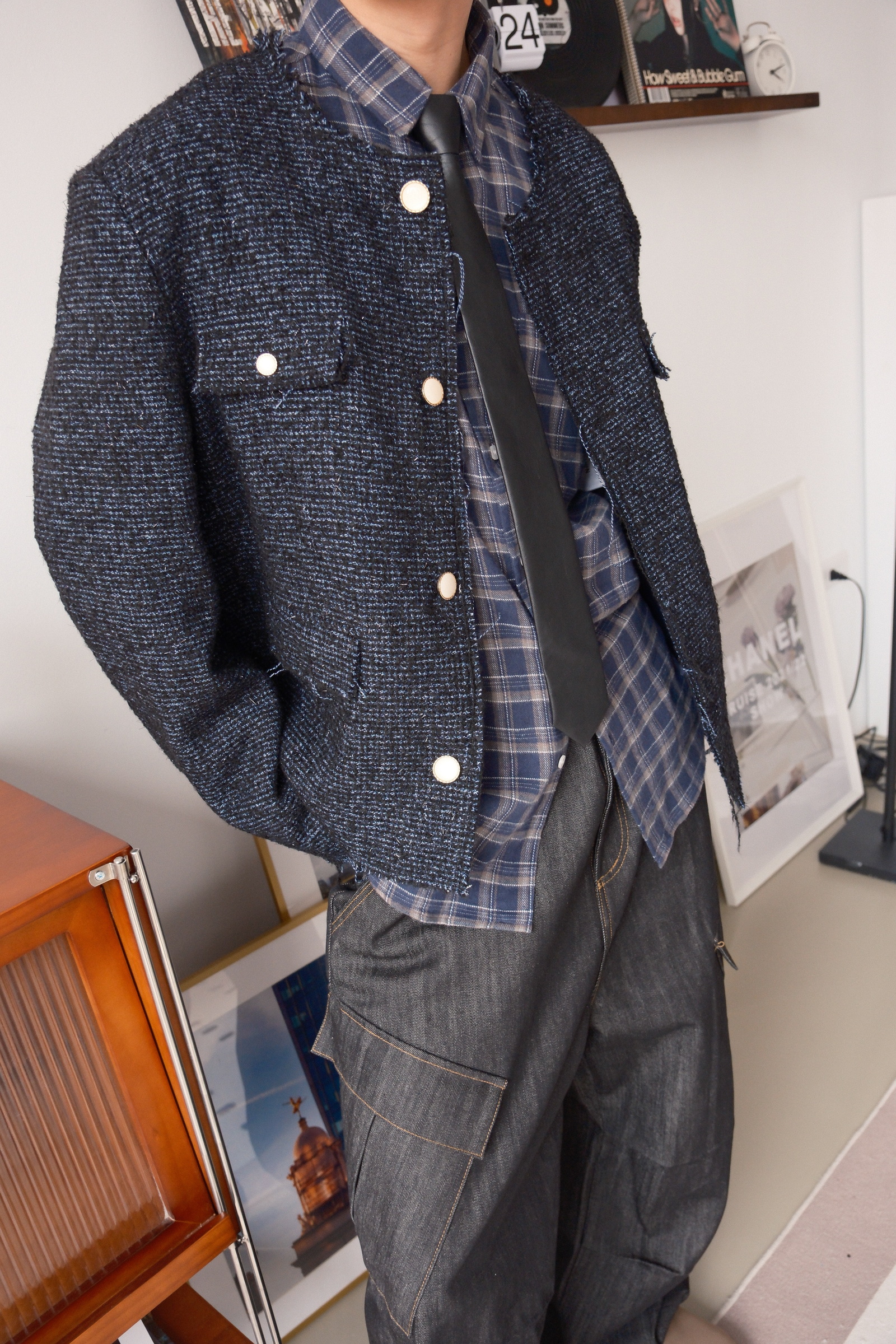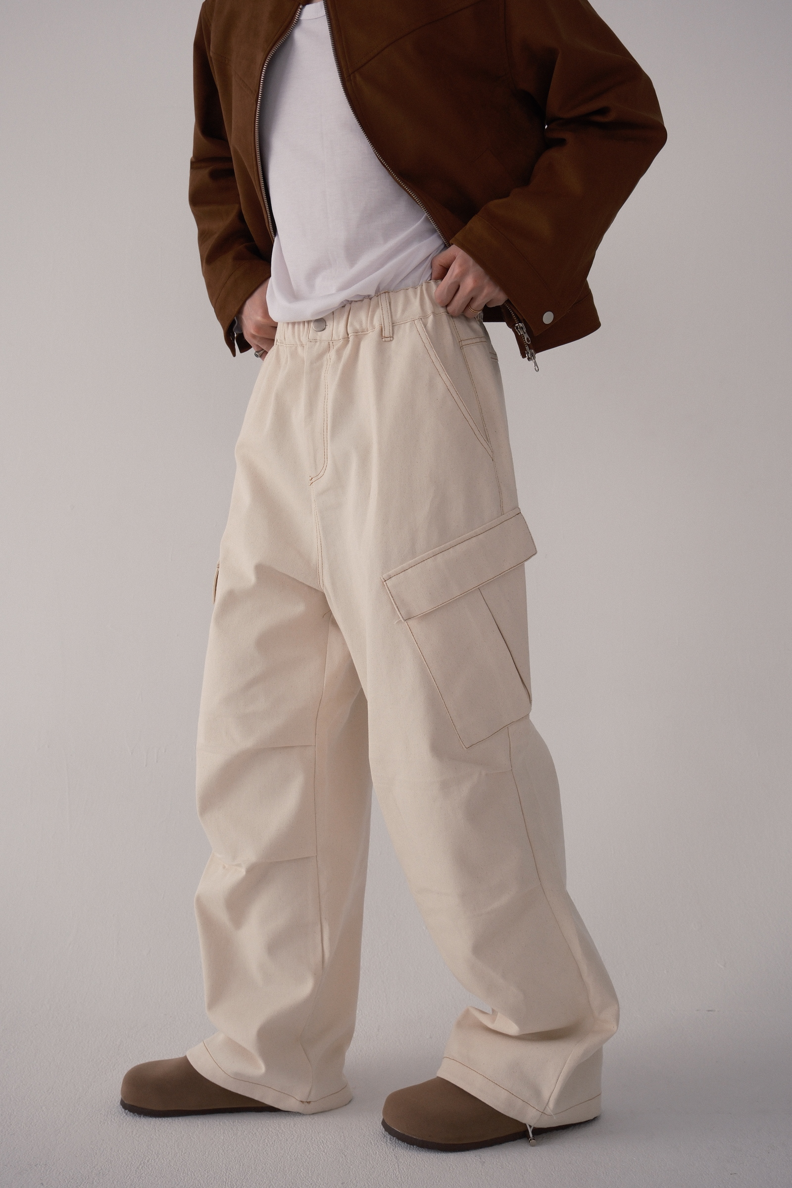 褲子的布料可以想像成,原漿牛仔褲那樣
