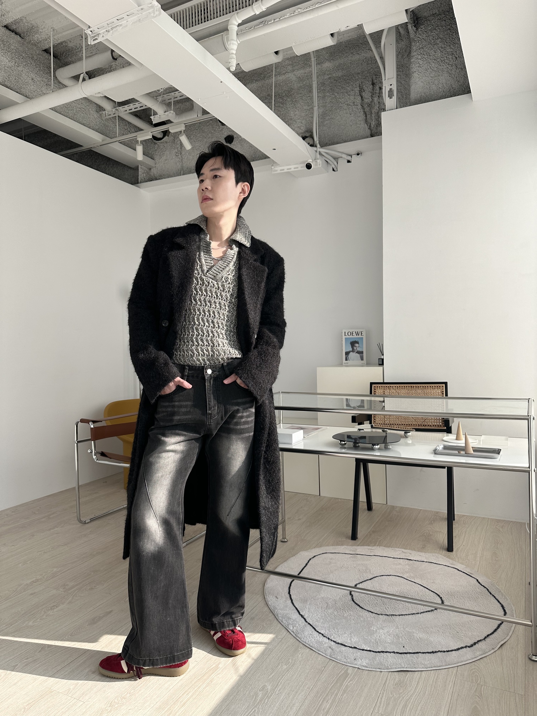 172/55男生穿S微鬆垮需繫皮帶更好 (藍色無繫皮帶示範)