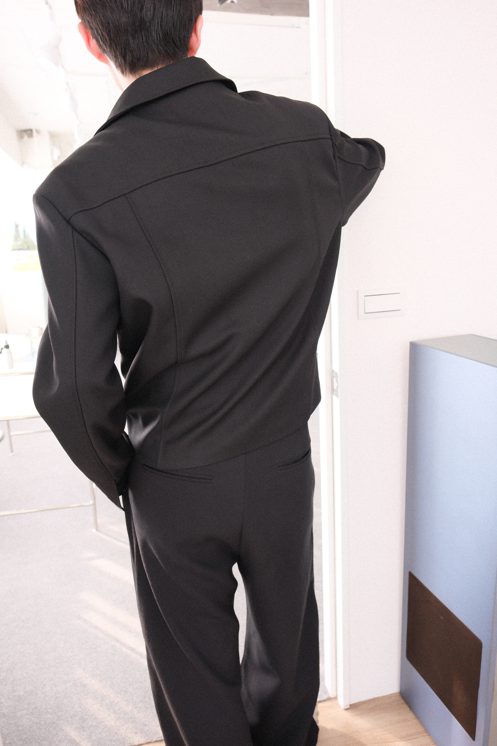 主要以黑色系為主,再來就是那又寬又挺的肩線
