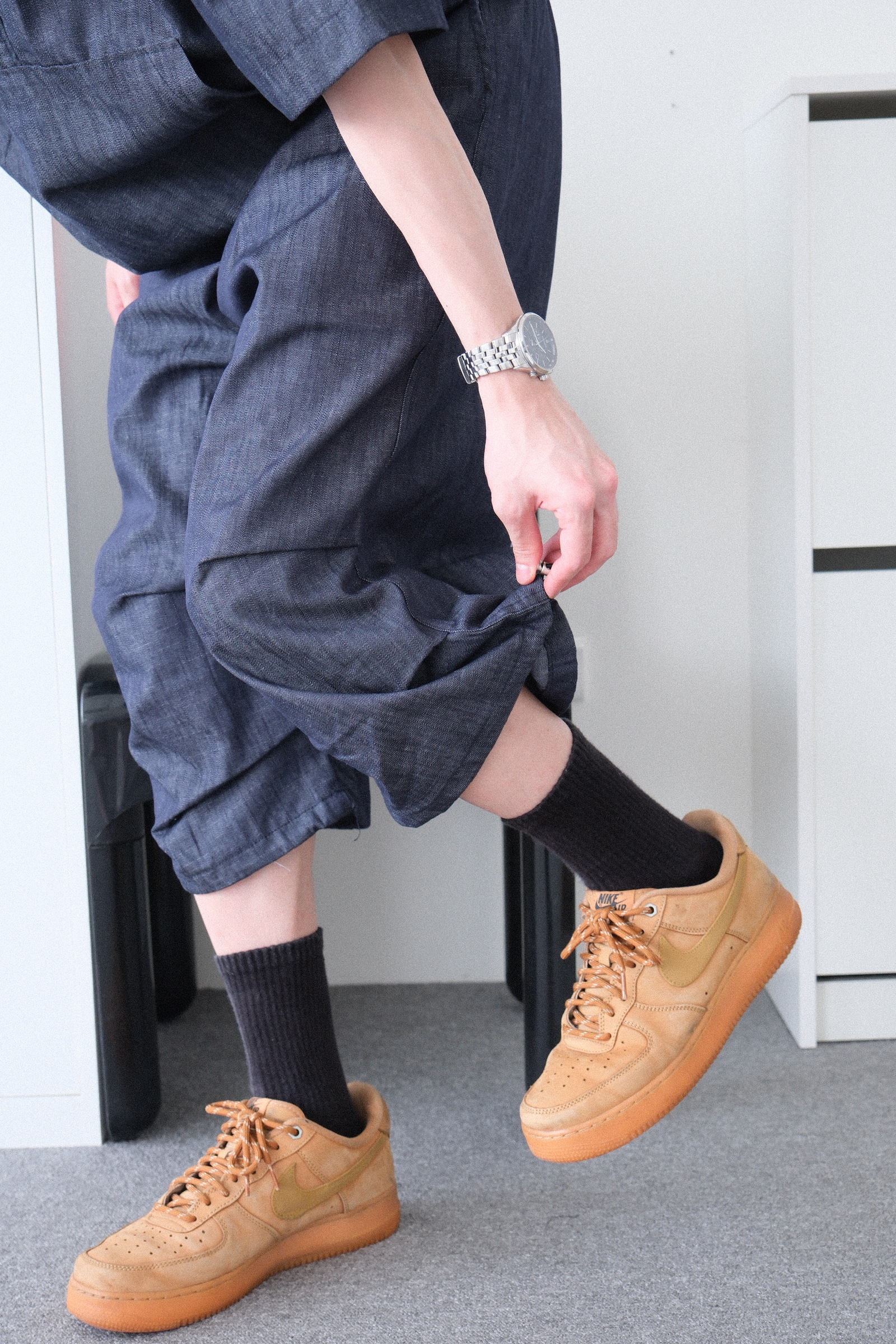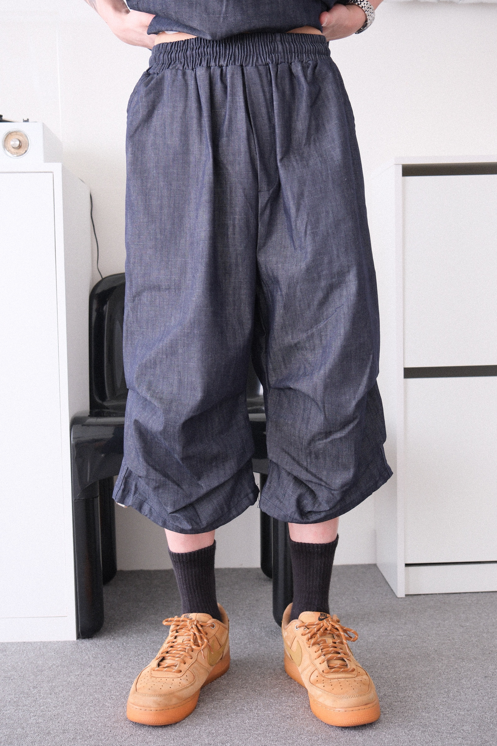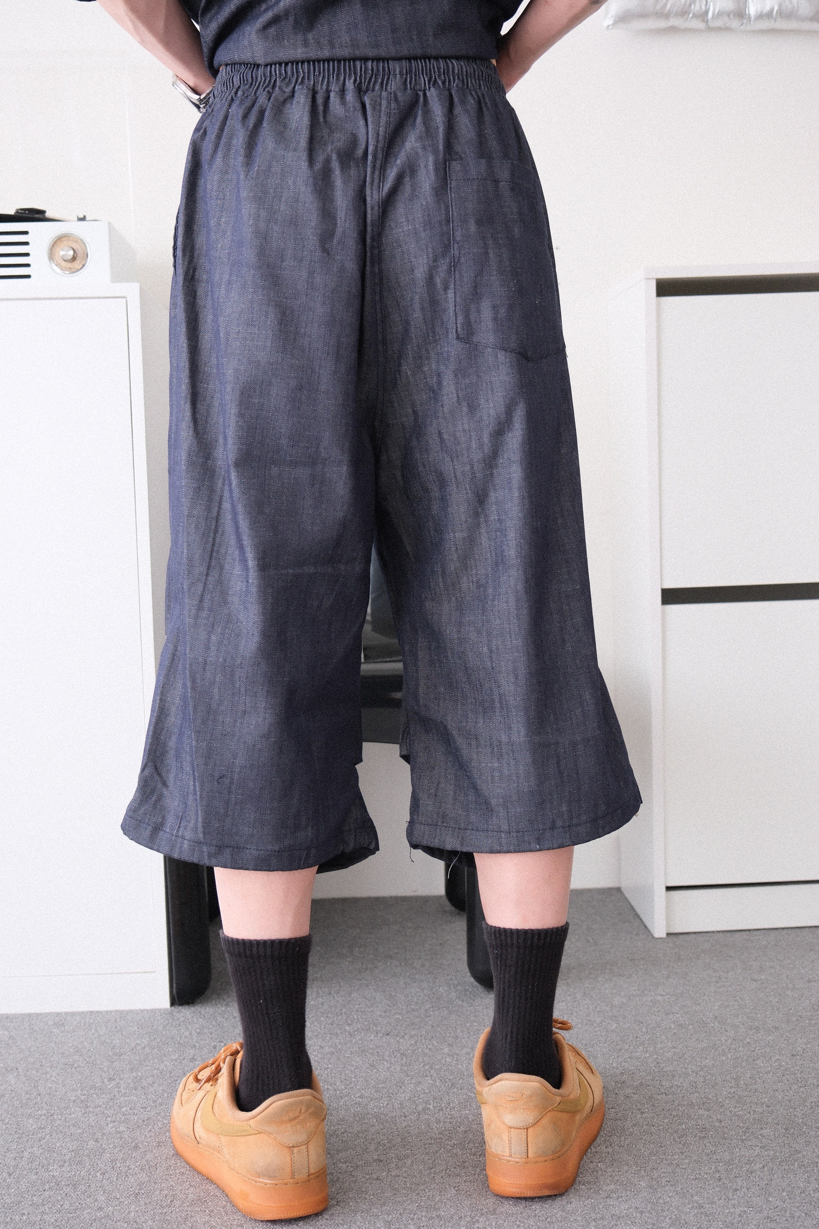 褲子是8分的長度,膝蓋下方有兩層褶皺設計