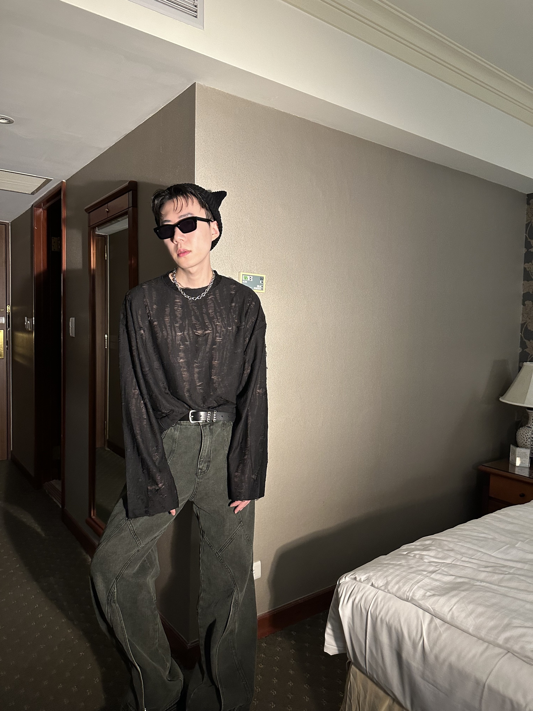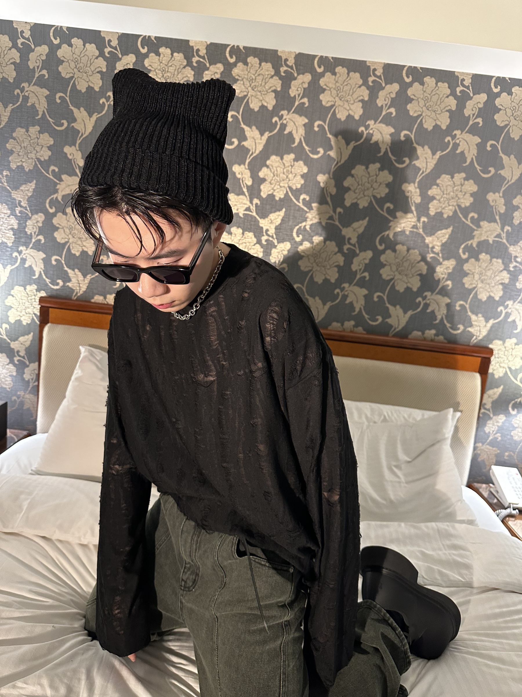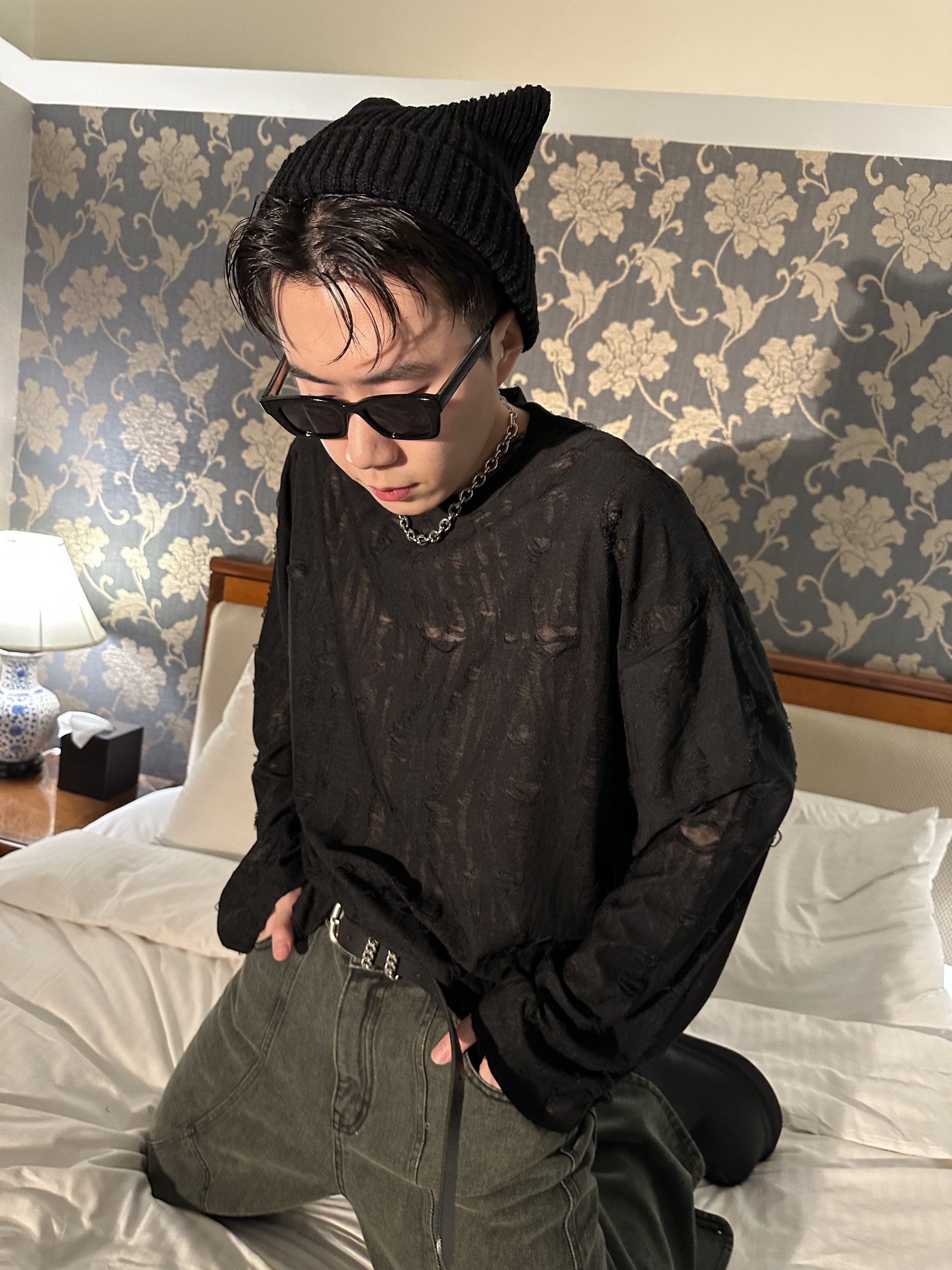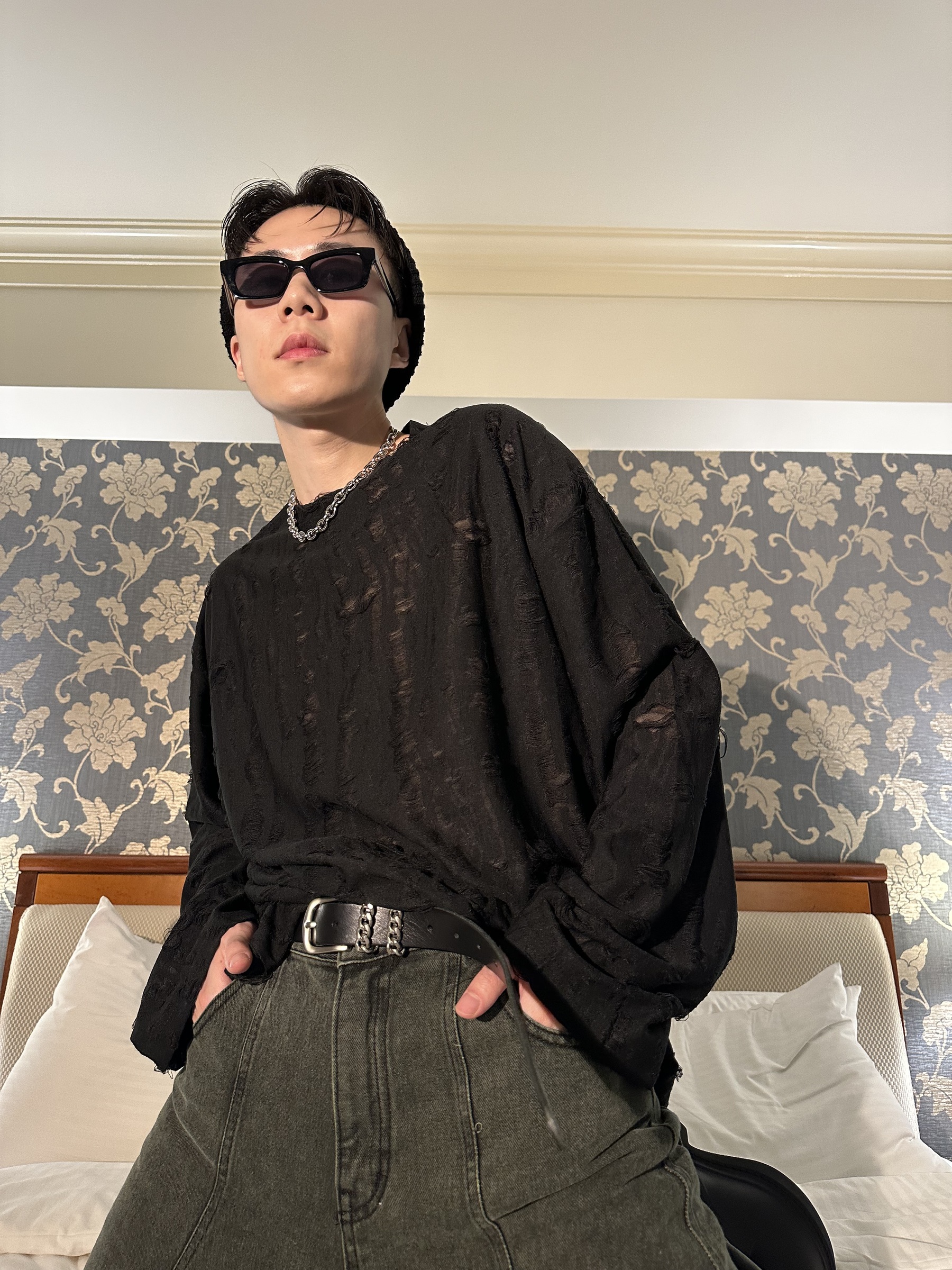 內層是很薄的薄紗,外層是撕裂的效果