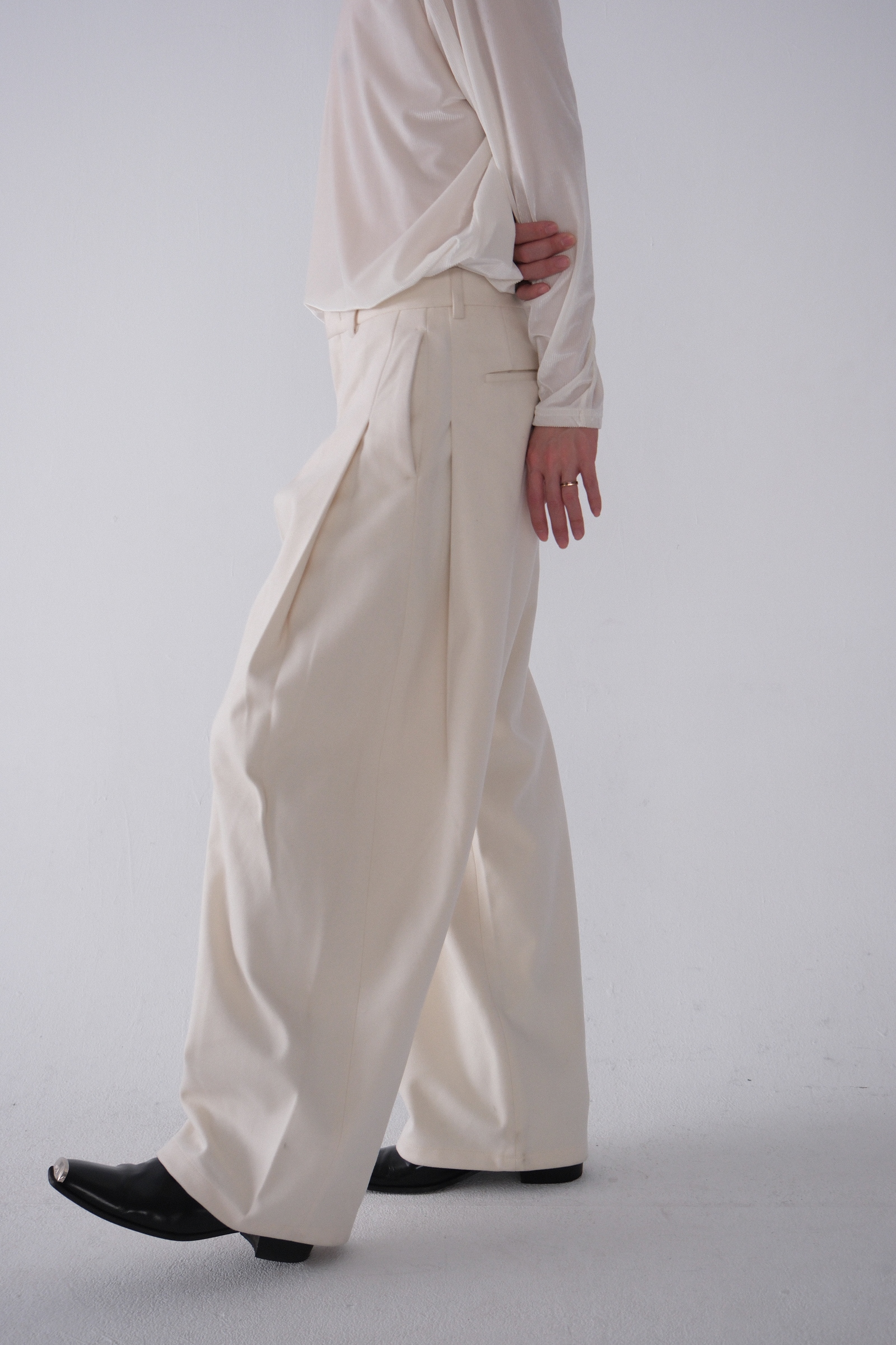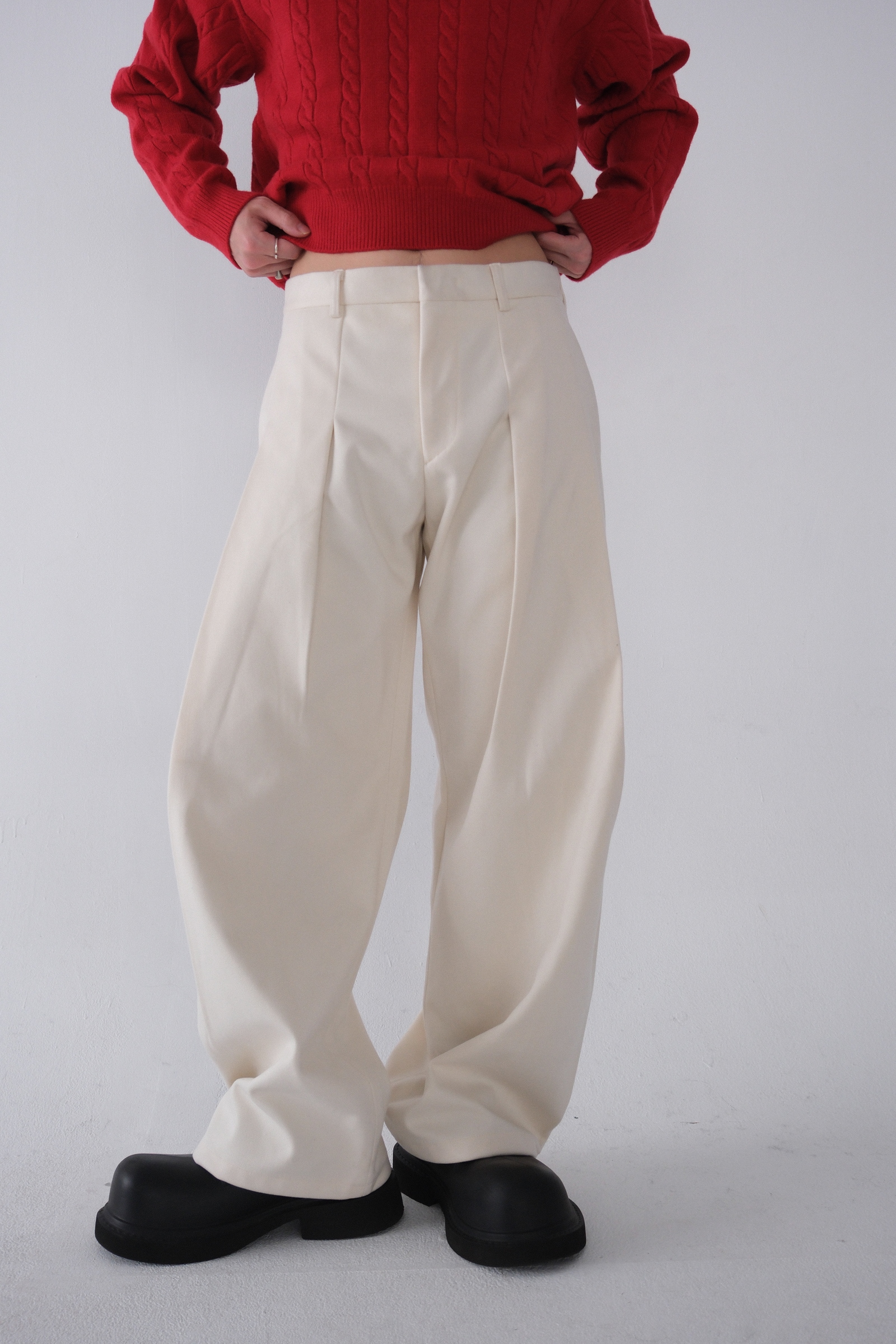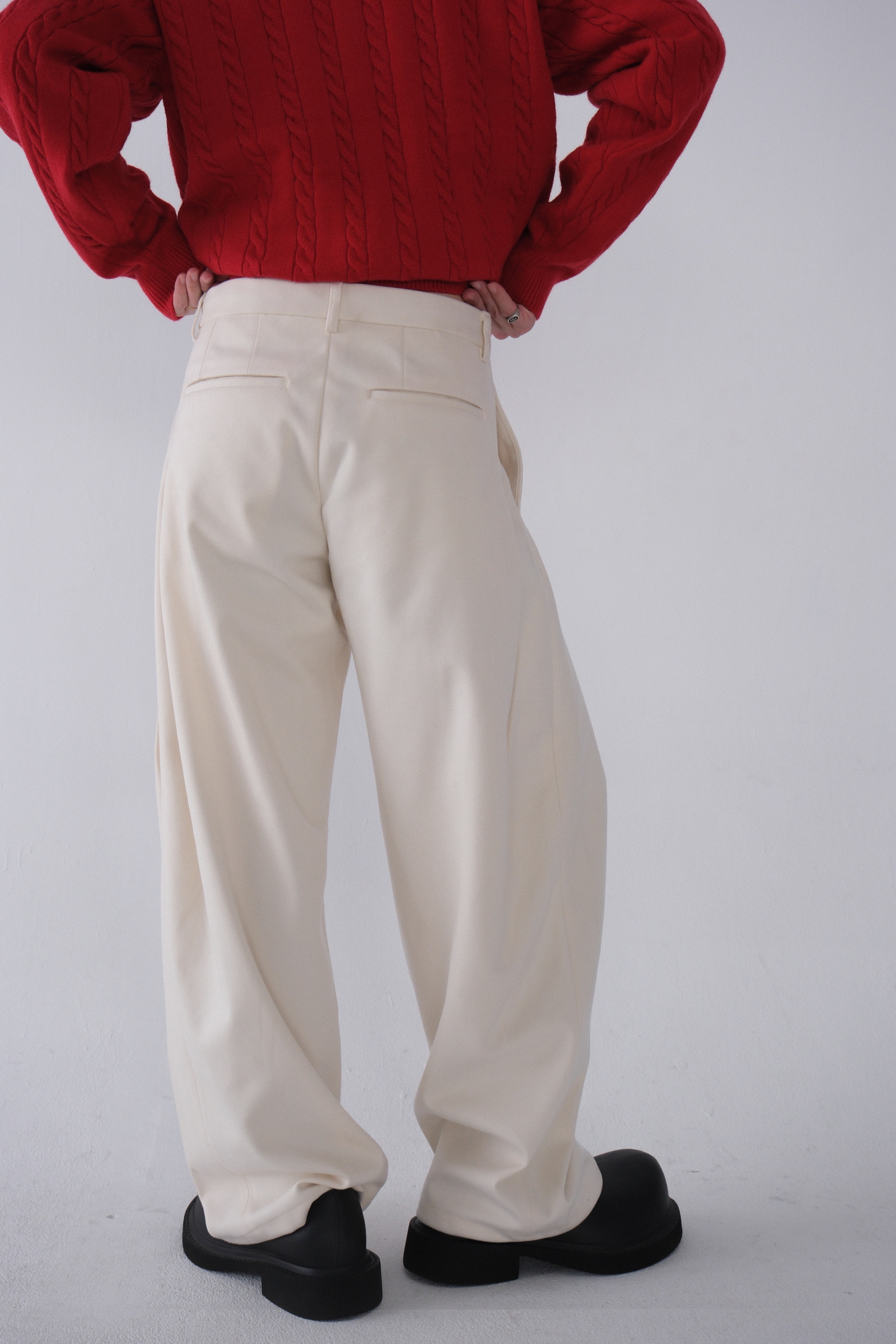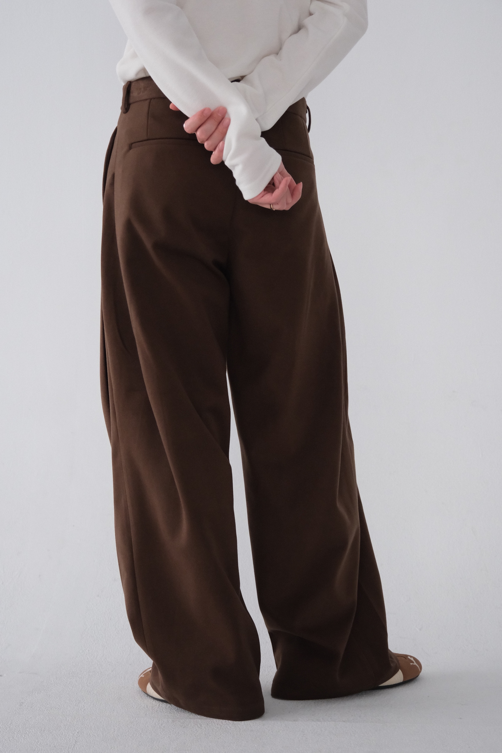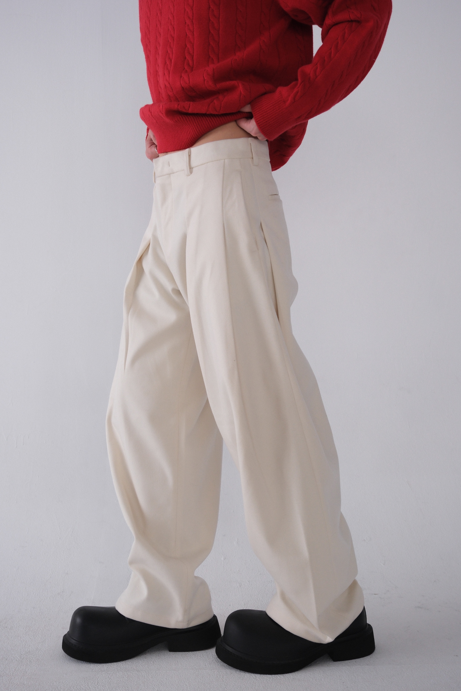 雖然是寬褲,不過穿上去腿縫還是會有,整體很修長