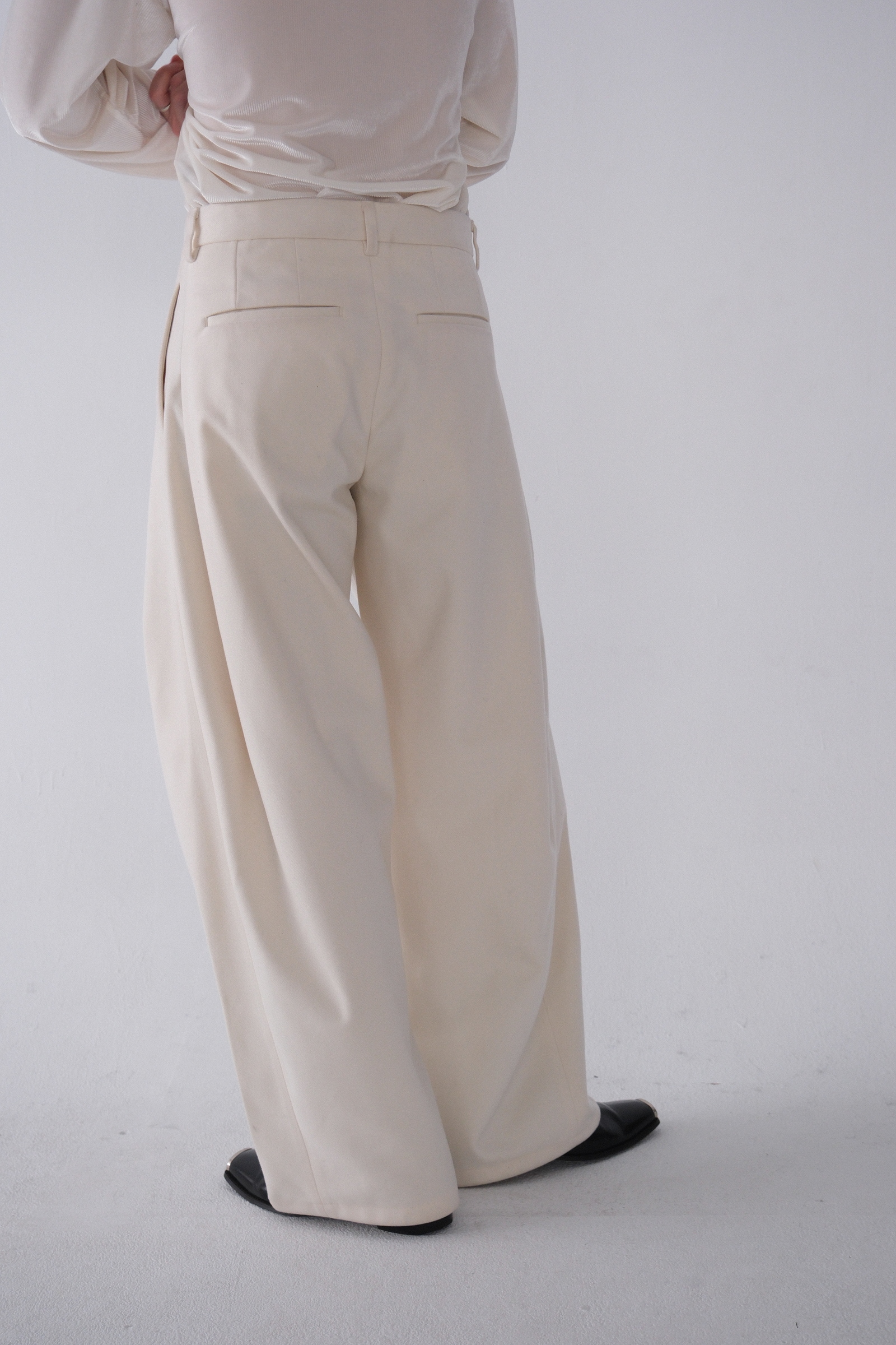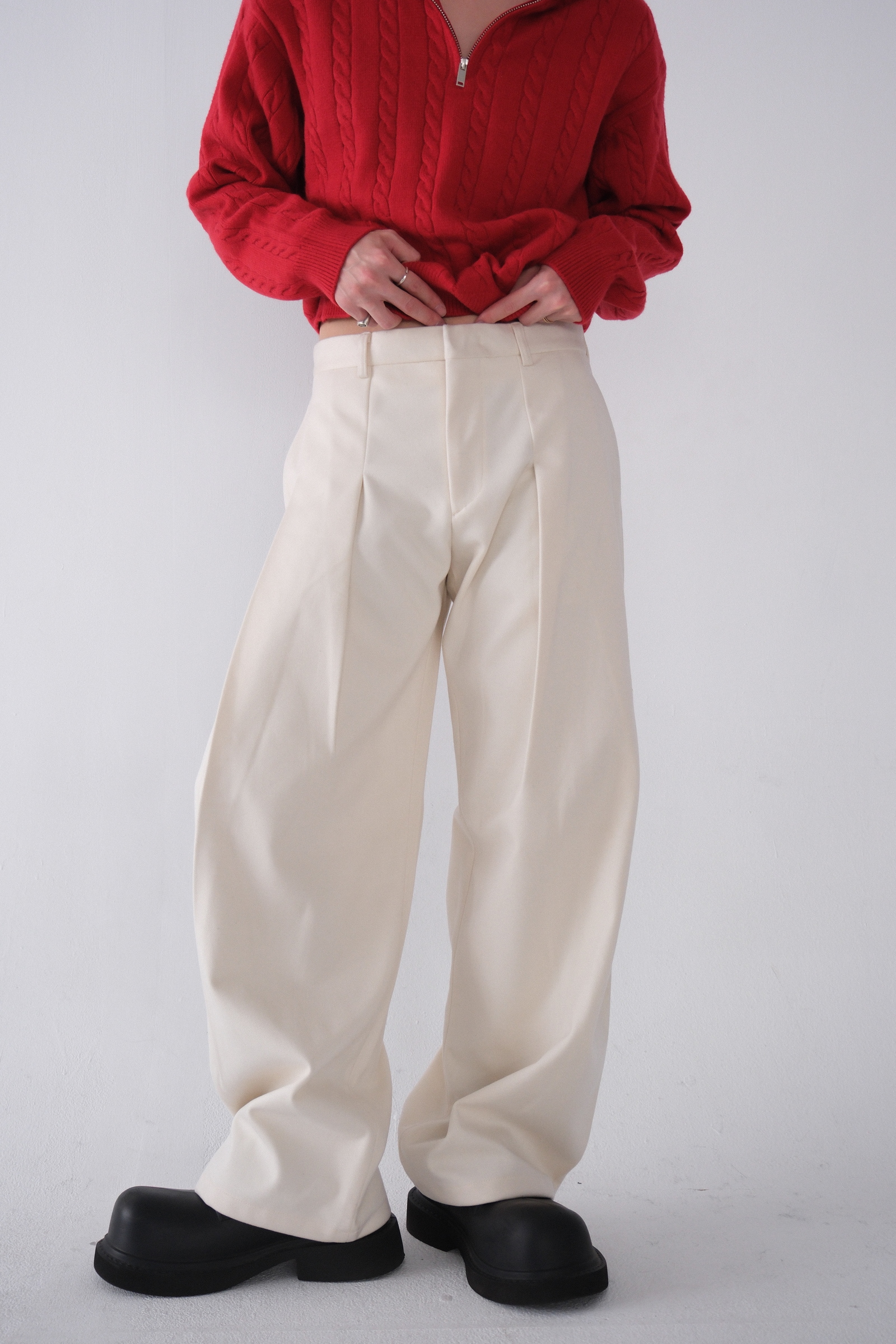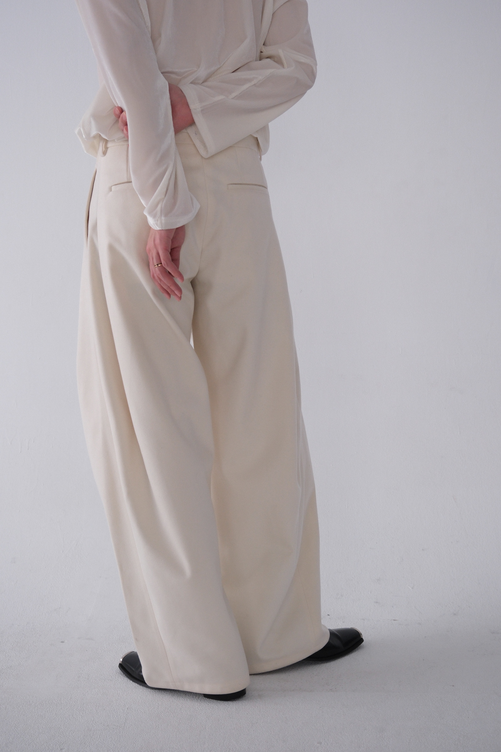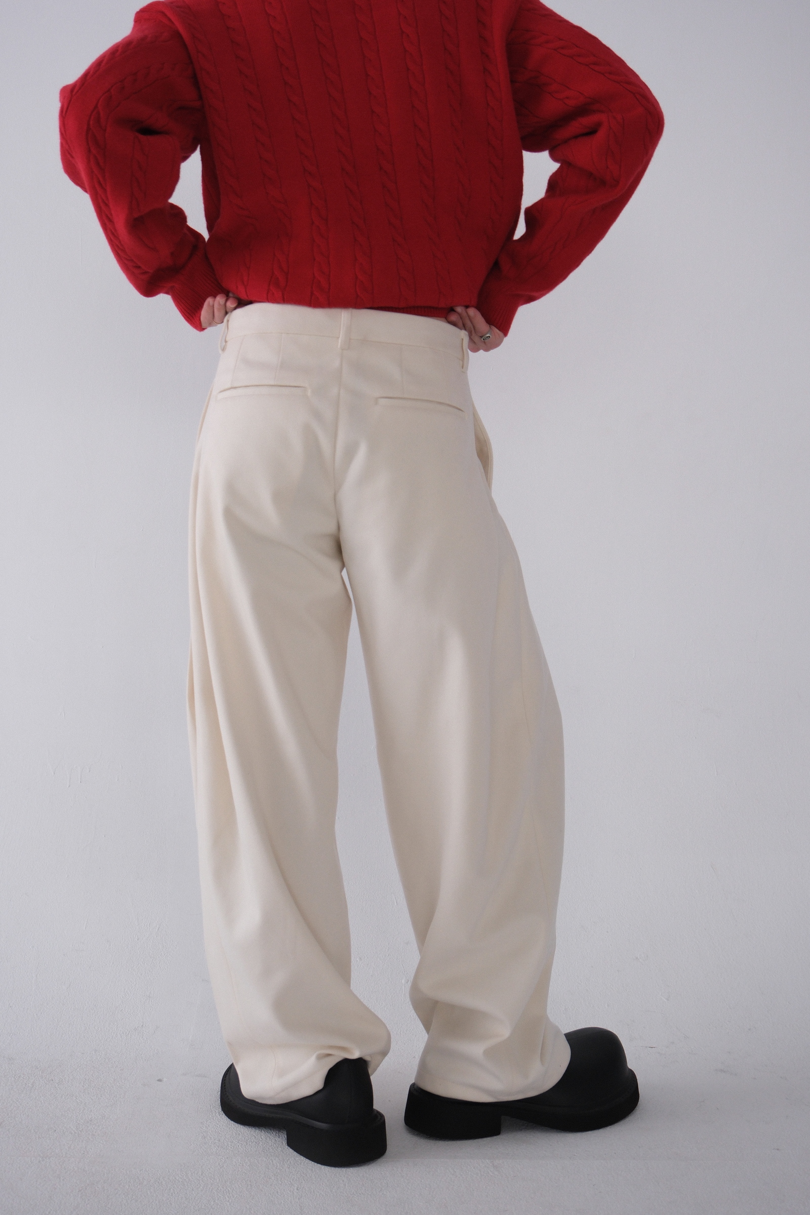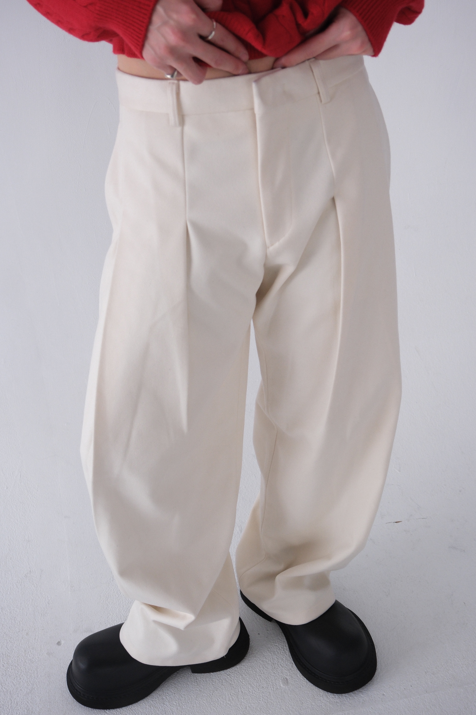 雖然是寬褲,不過穿上去腿縫還是會有,整體很修長