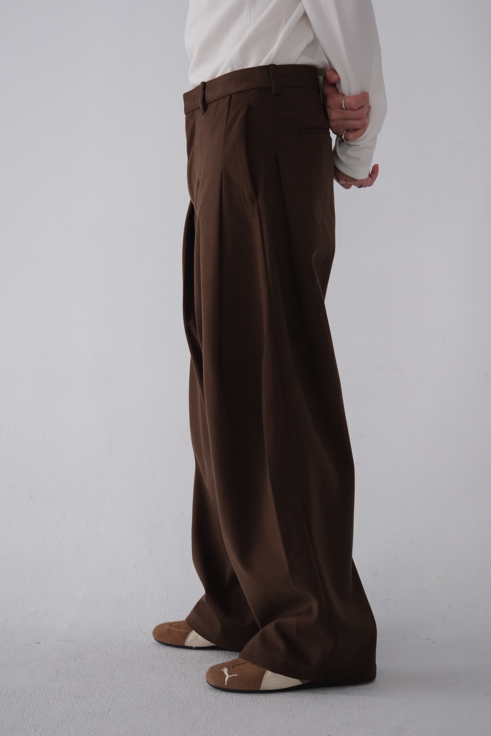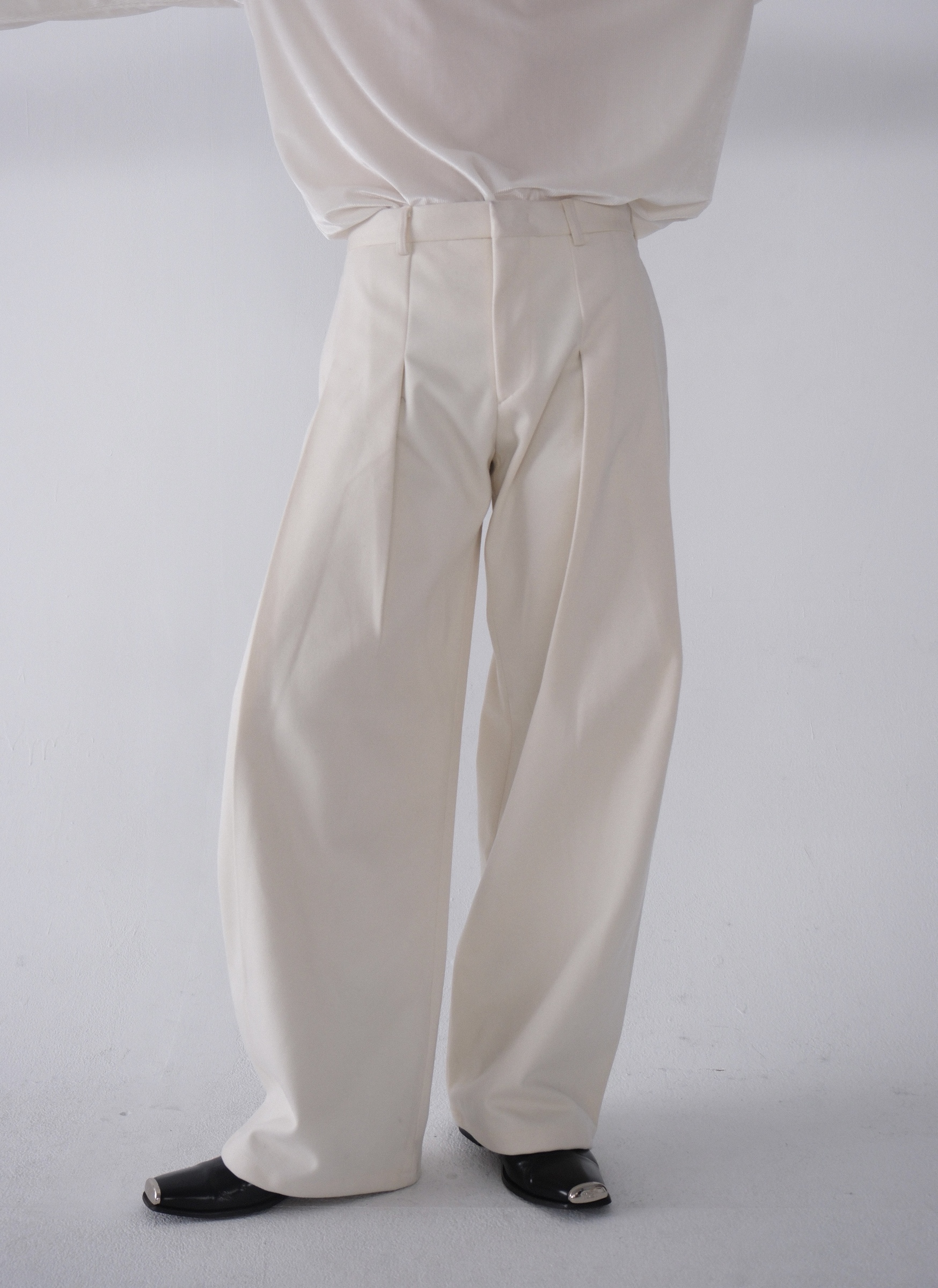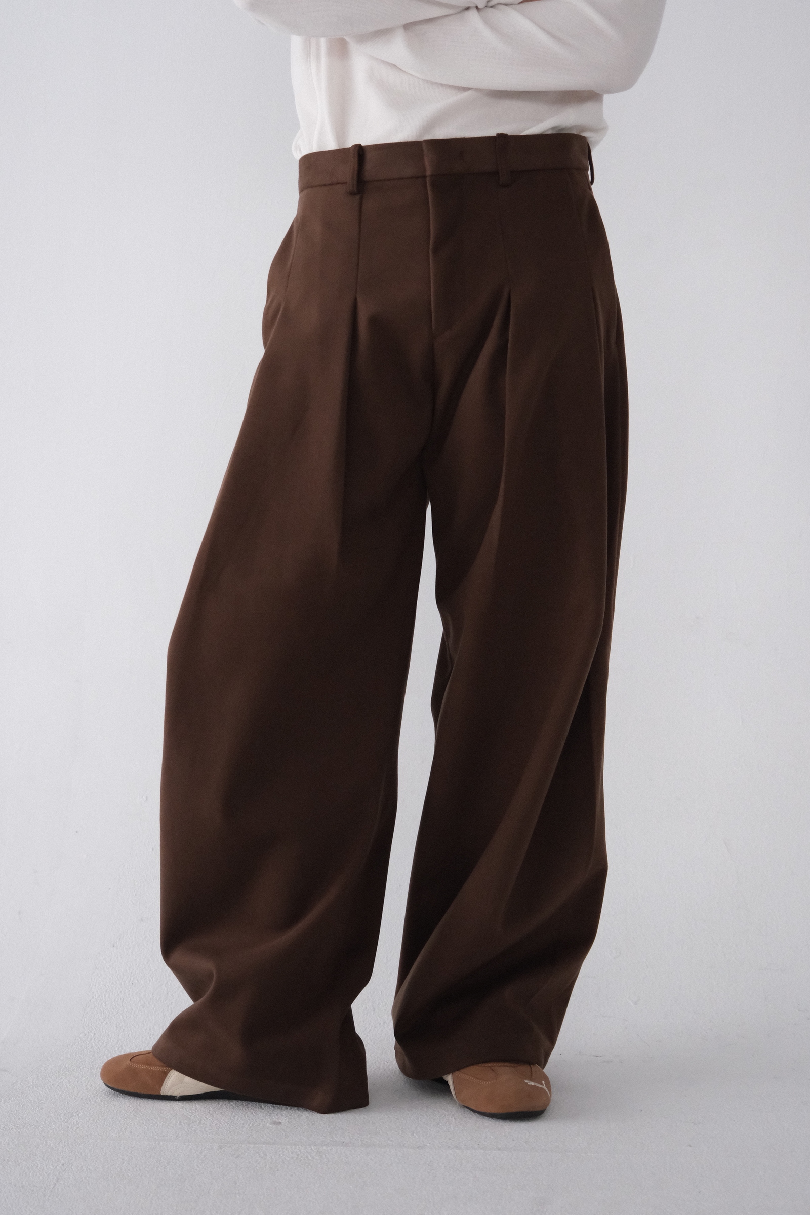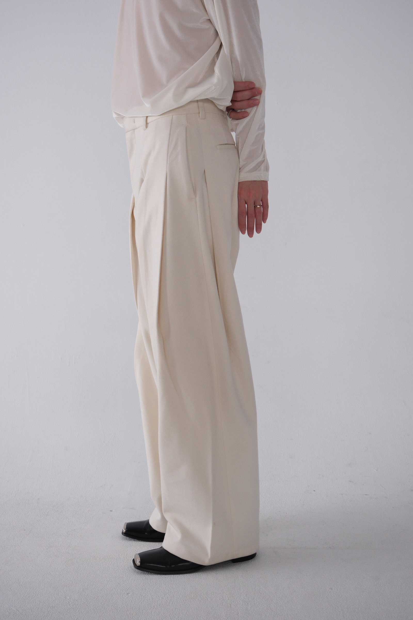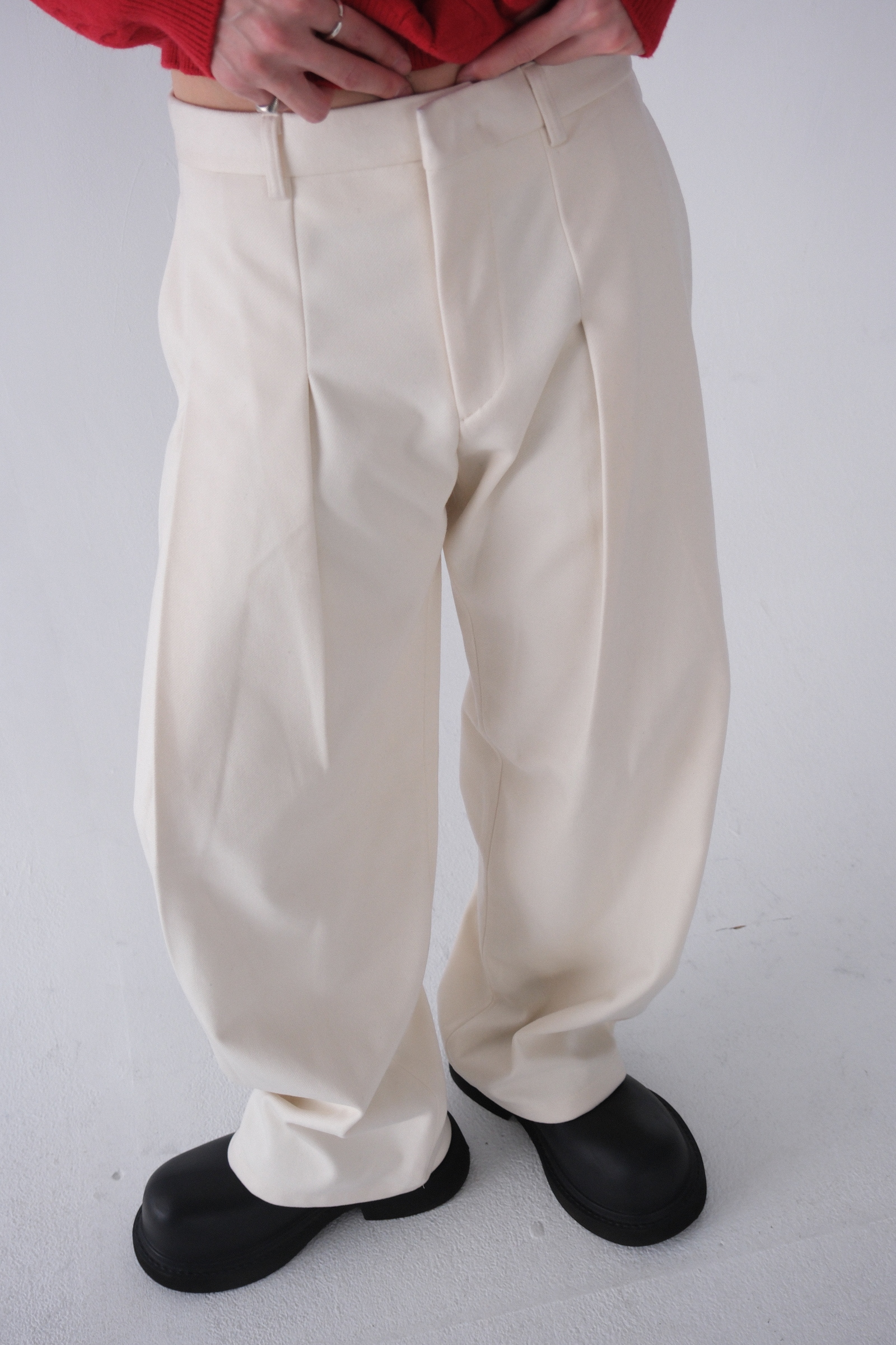 雖然是寬褲,不過穿上去腿縫還是會有,整體很修長